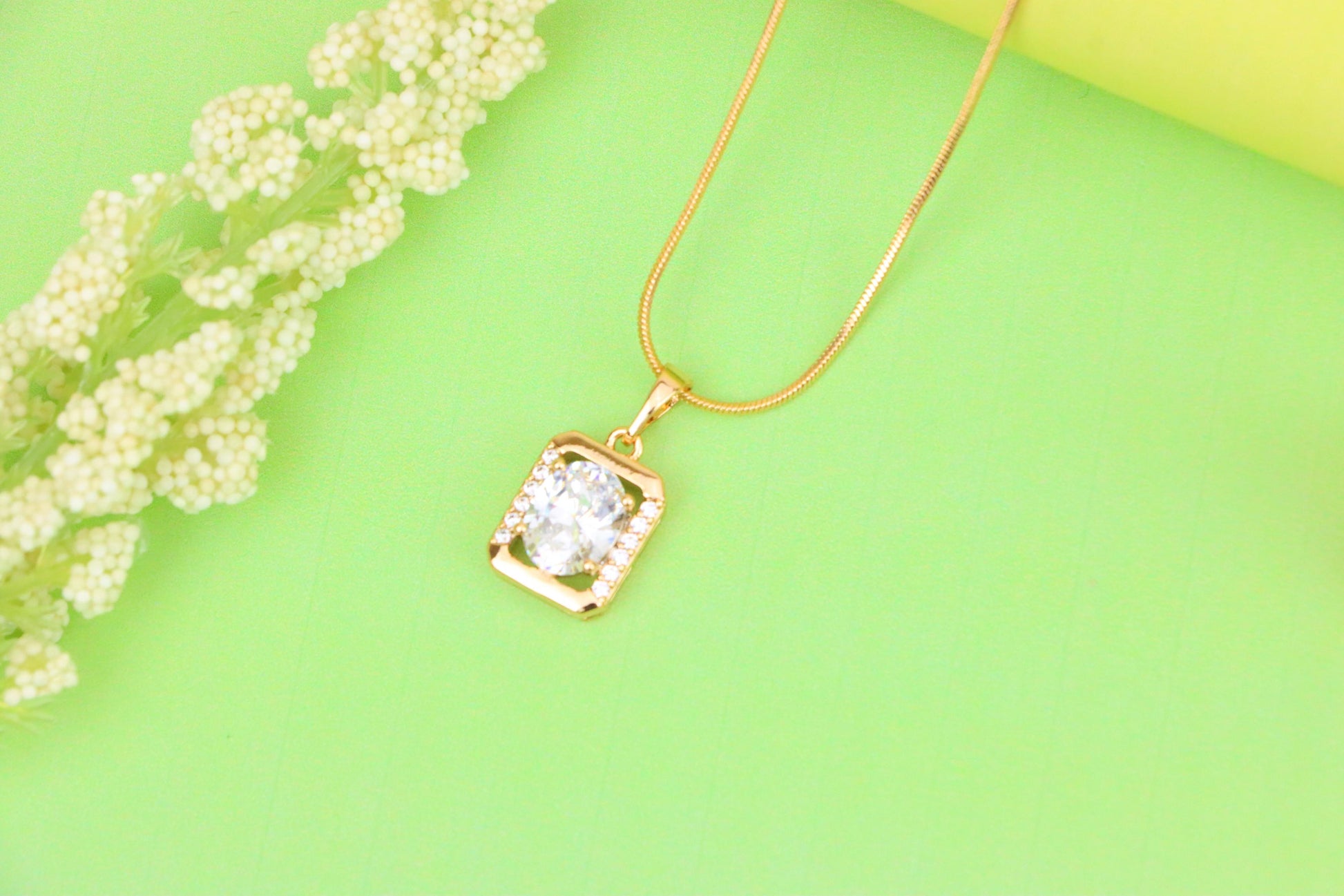 Dainty and dazzling, this rose gold pendant features an oval-cut centerpiece surrounded by shimmering accents — perfect for everyday elegance or special occasions.