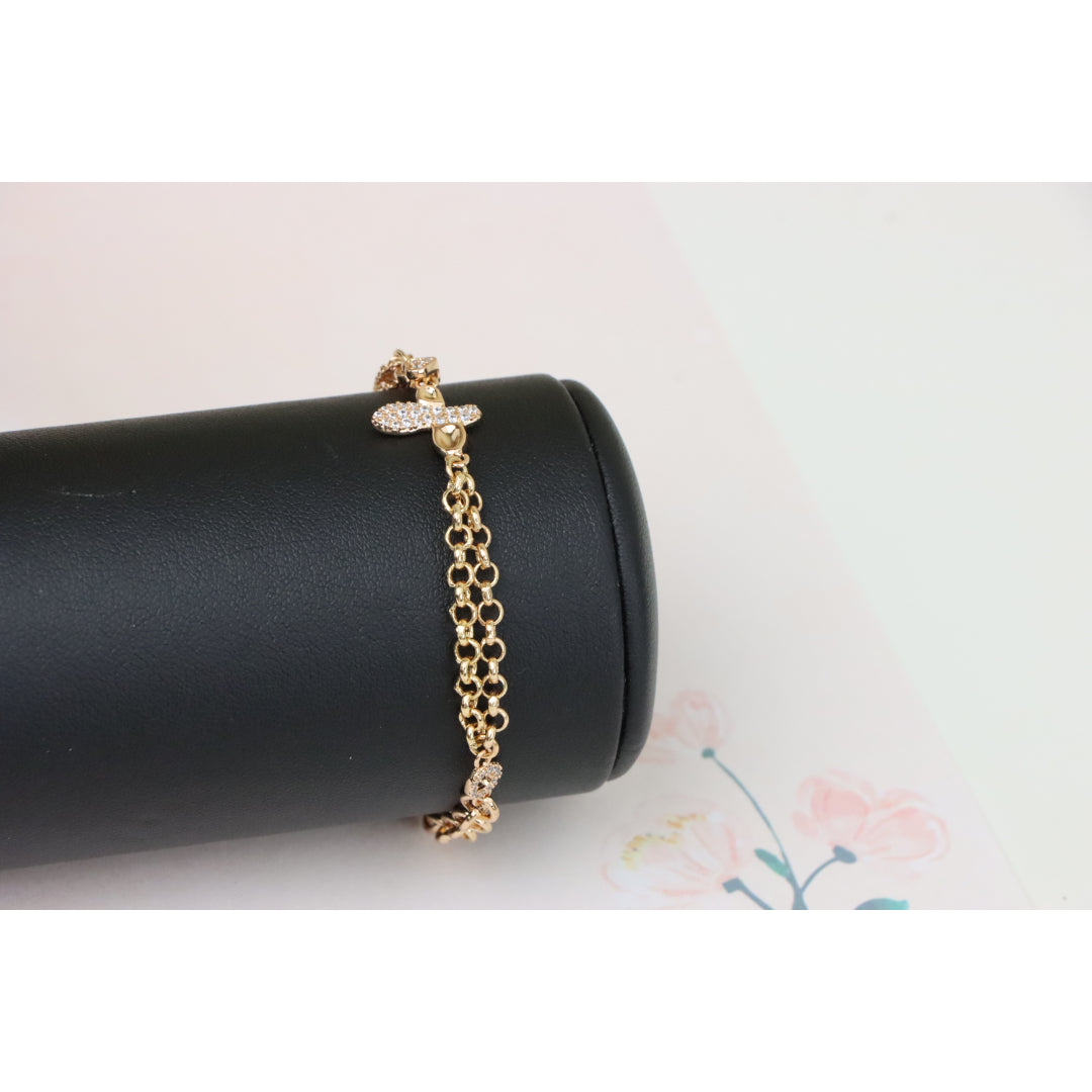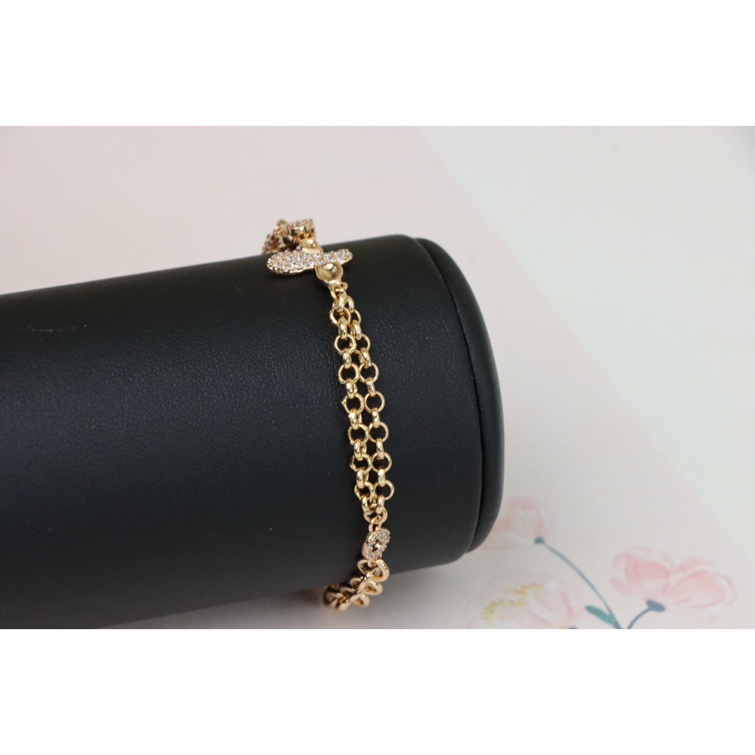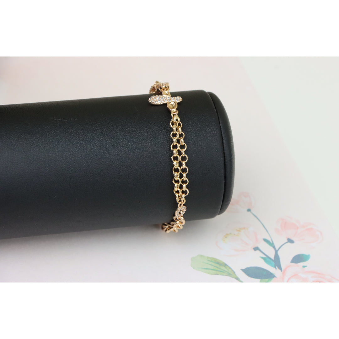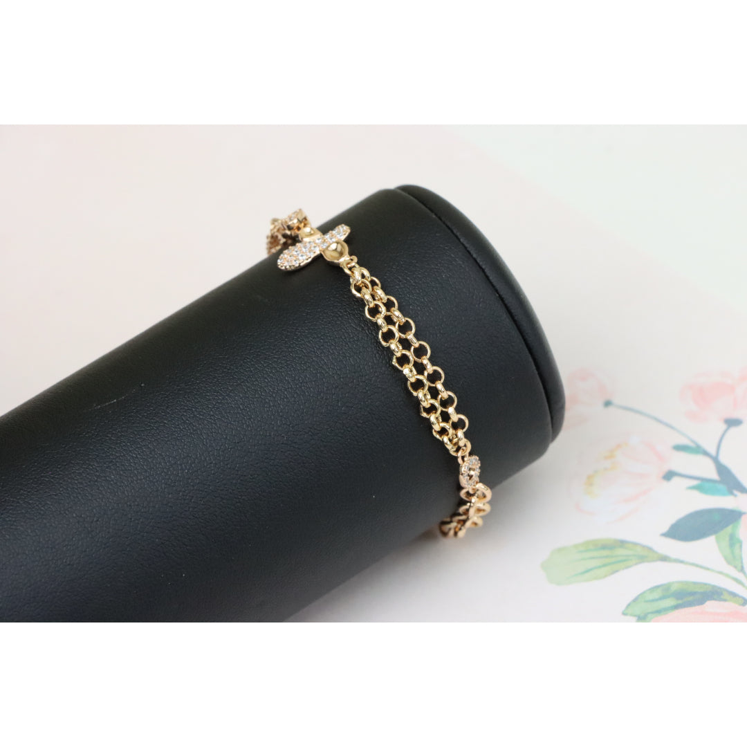 Chic and stylish bracelet featuring a sparkling bee charm and unique double chain structure, crafted for fashion-forward elegance.