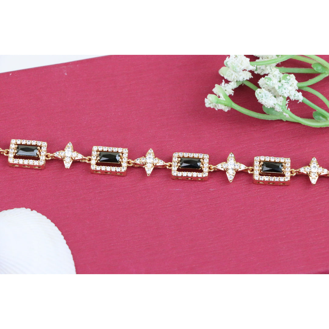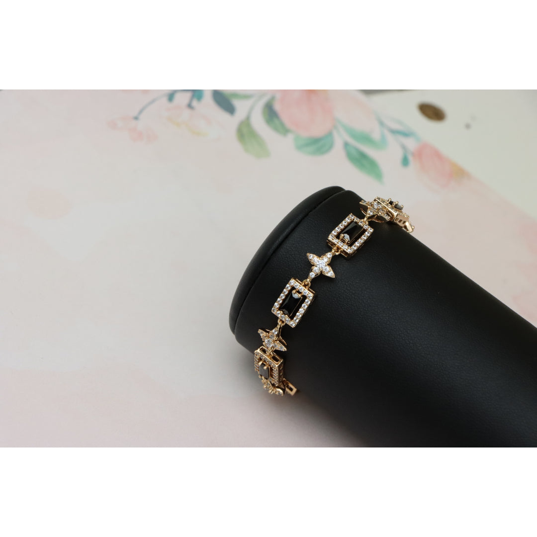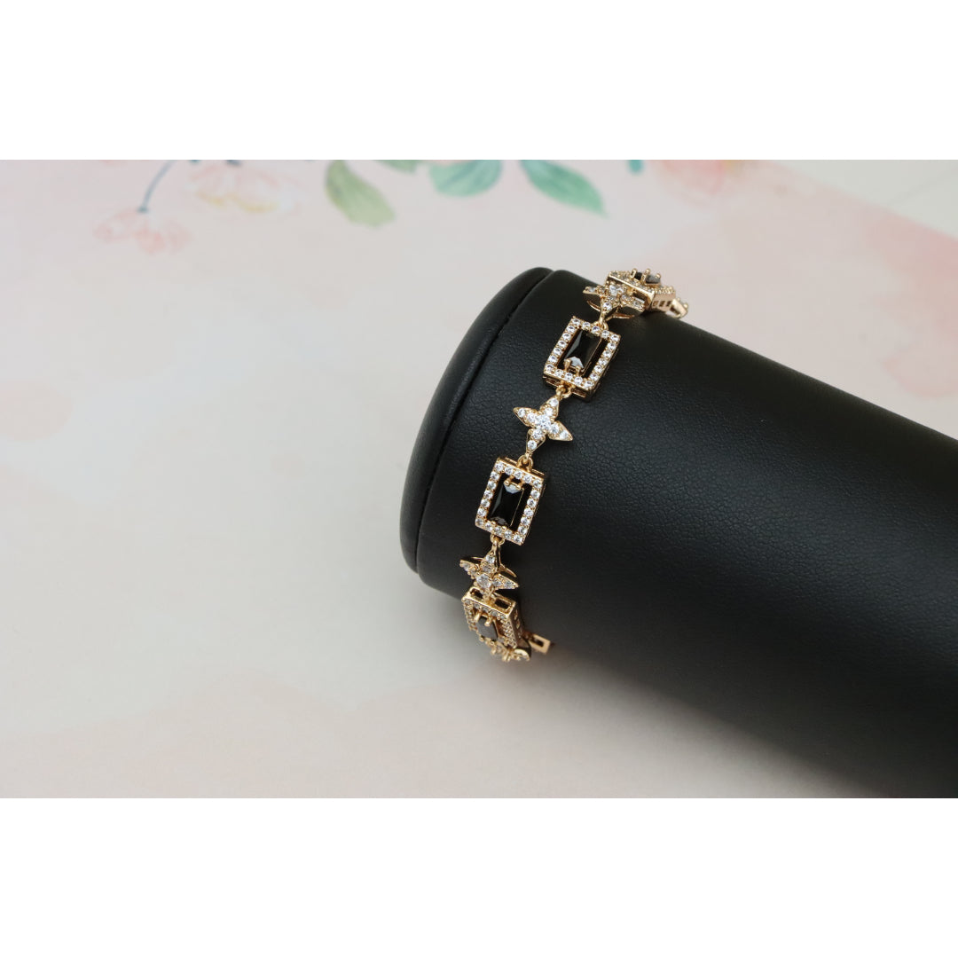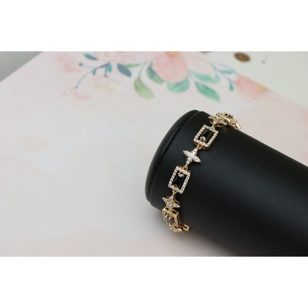 Elegant Rose Gold Plated Bracelet with Black Stones and Star Accents, XPBL0694