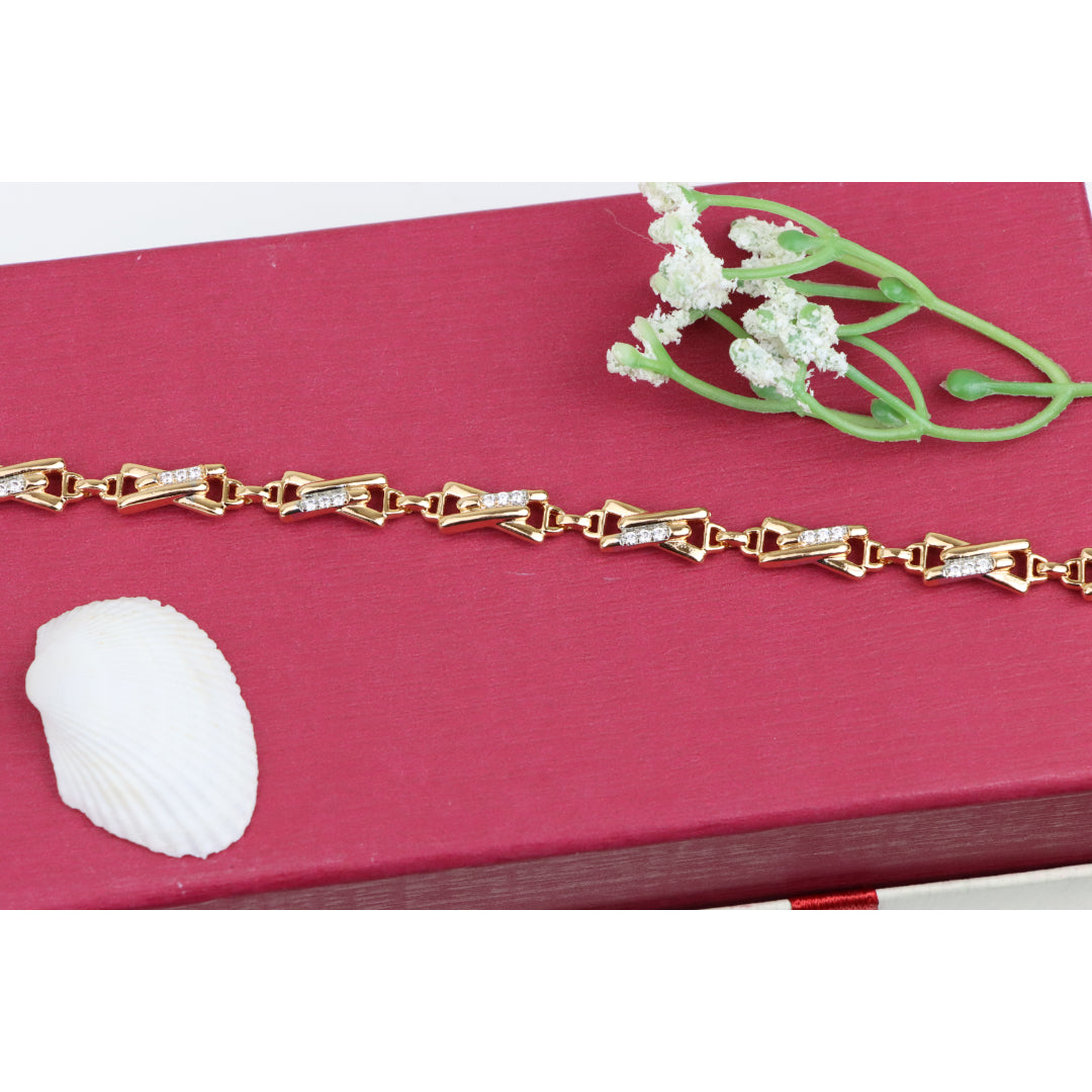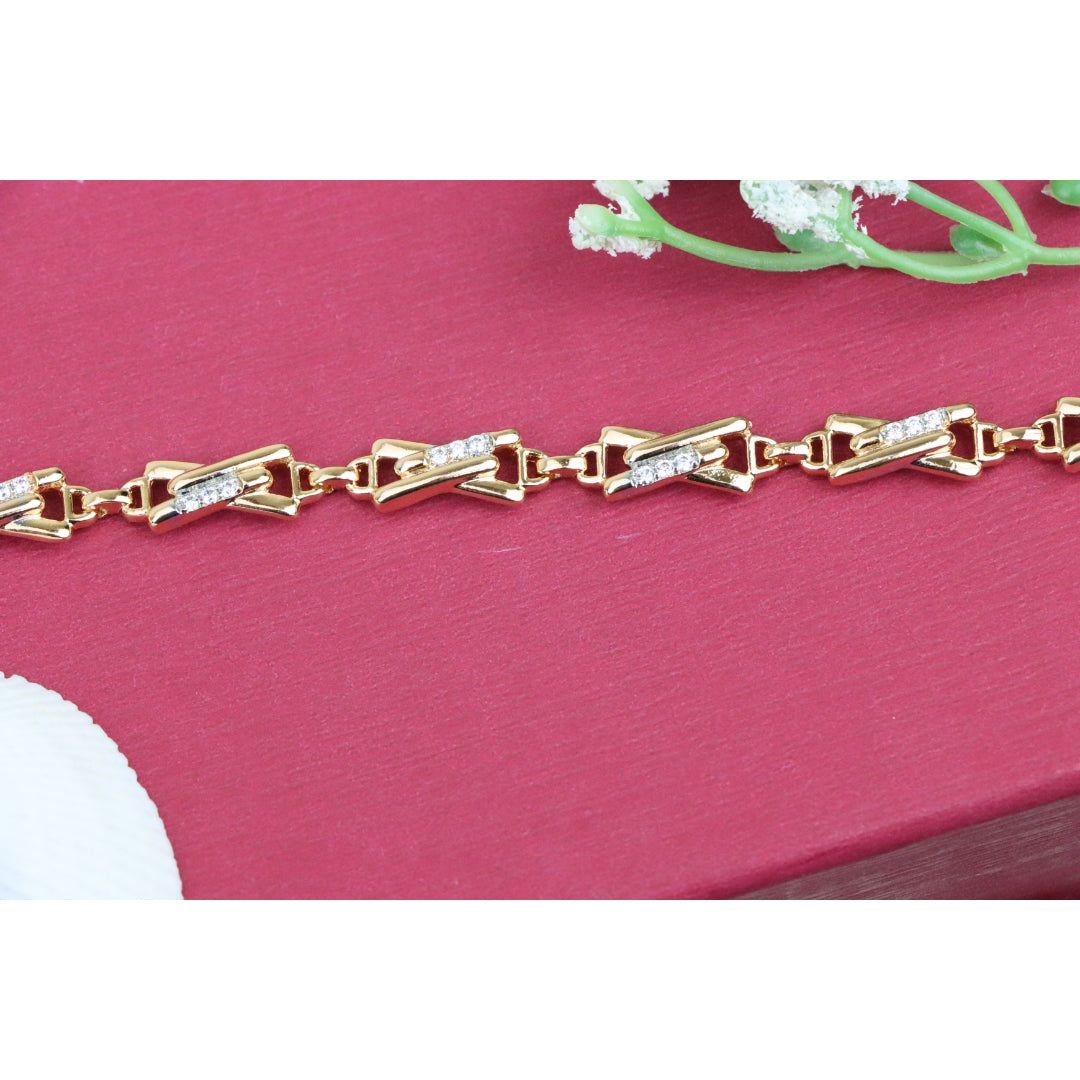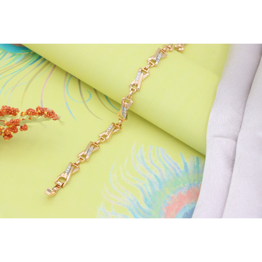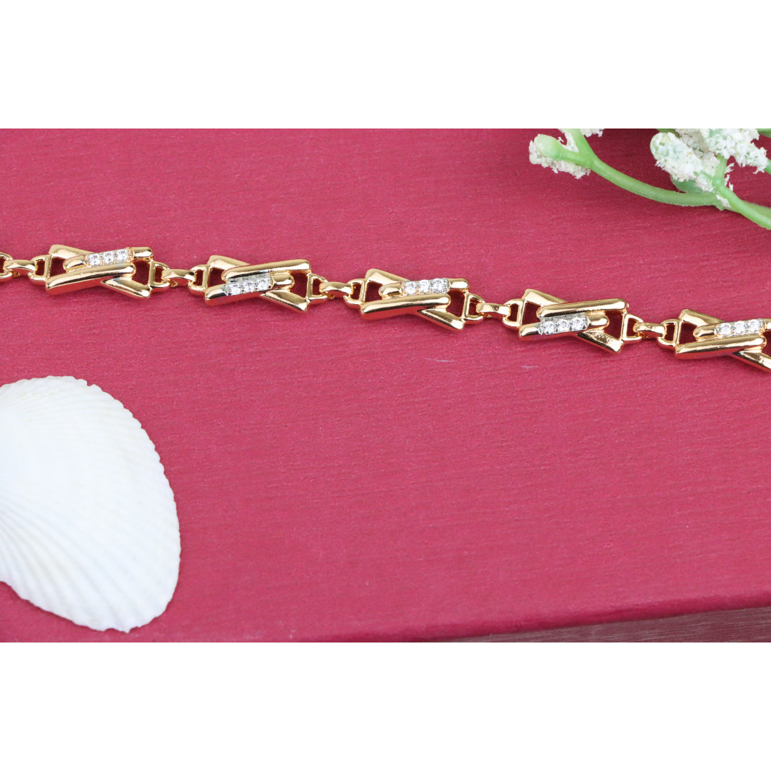 Elevate your style with this beautiful Rose Gold Bracelet crafted with high-quality brass and plated with luxurious gold. The intricate design adorned with sparkling crystals adds a refined charm, making it perfect for both casual and formal wear. Size: 17cm + 2cm extender (approximately 6.7 + 0.8 inches).