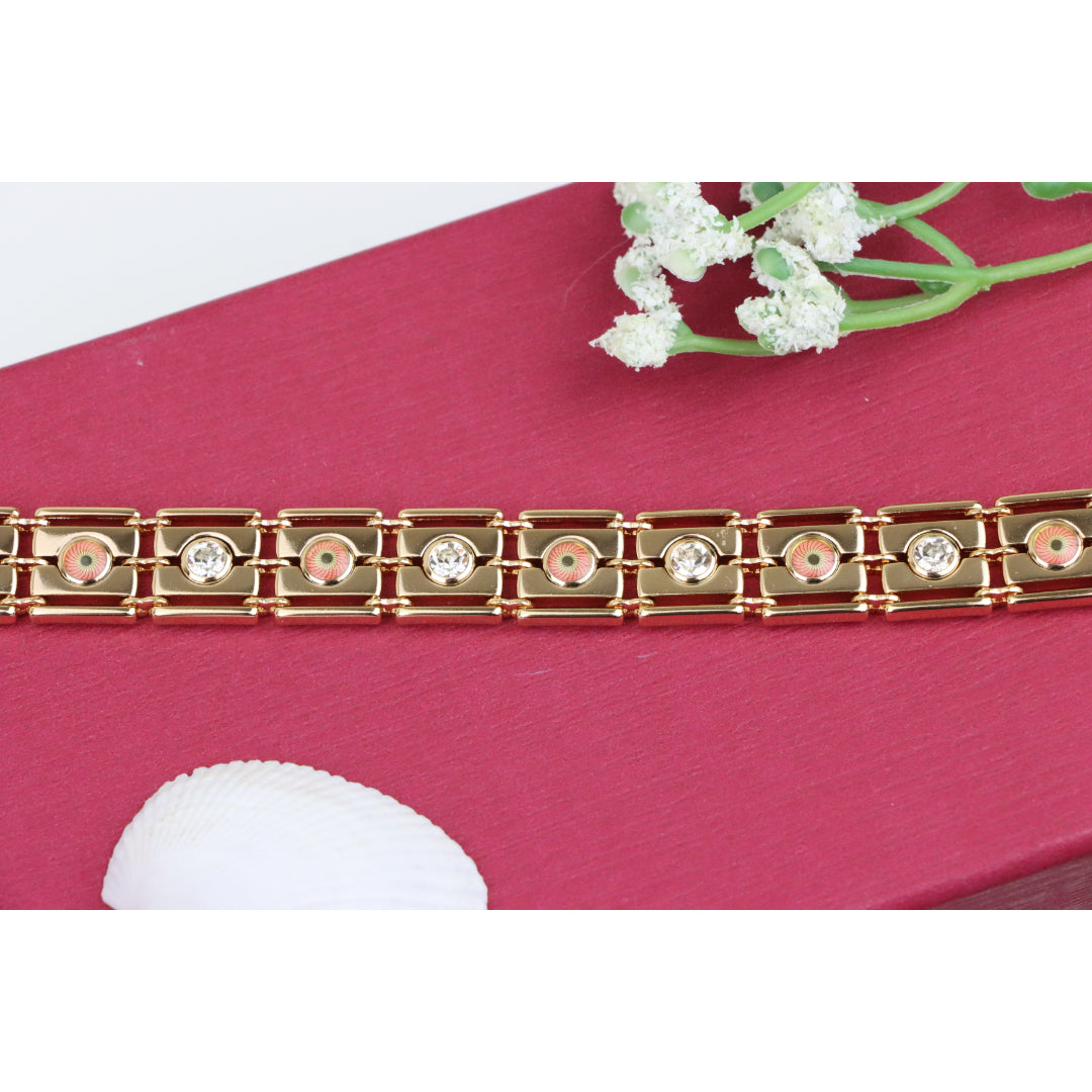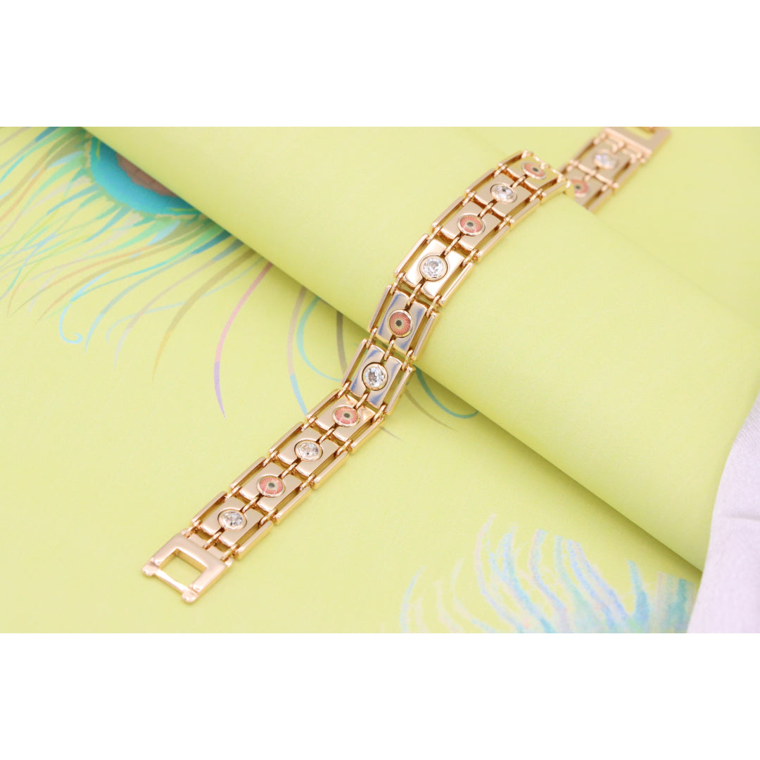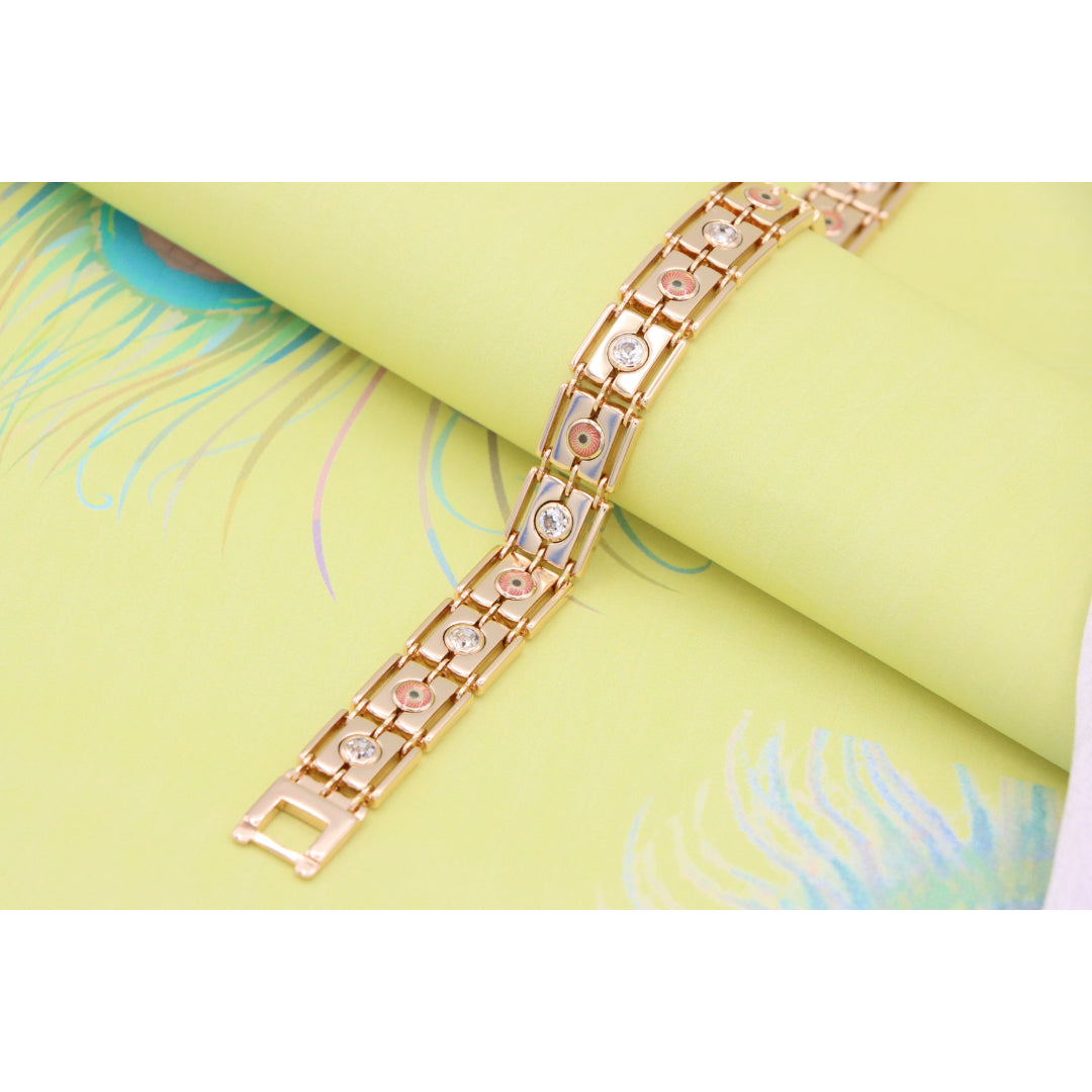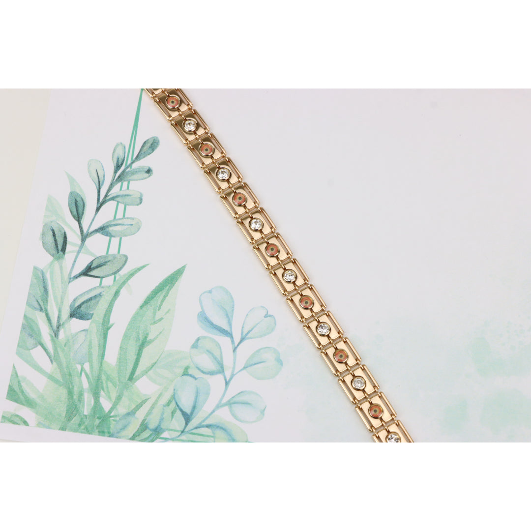 Crafted with premium gold-plated brass, this stunning rose gold bracelet adds timeless elegance to your jewelry collection. Featuring beautiful detailing with sparkling accents, it's perfect for any occasion.
