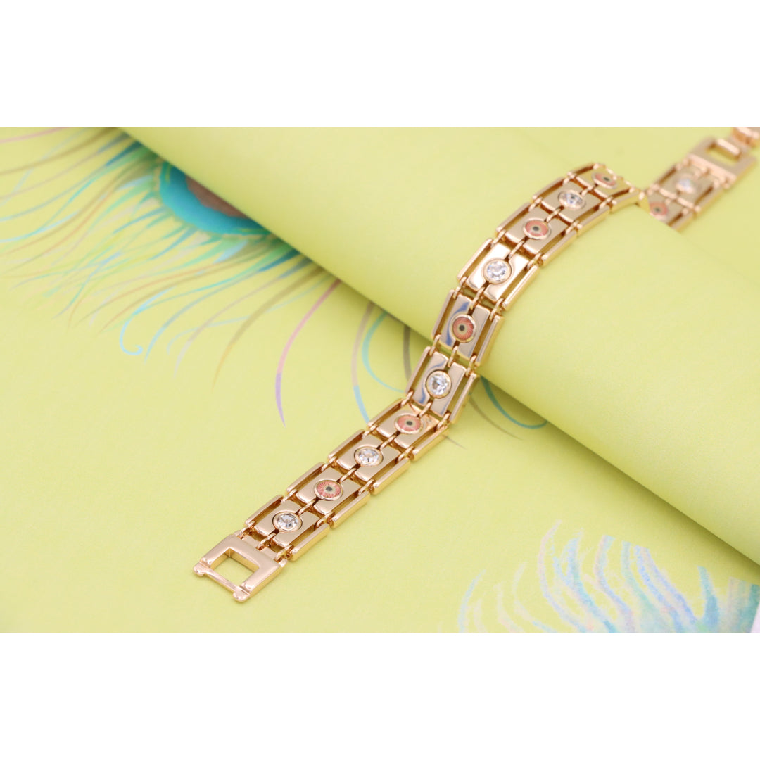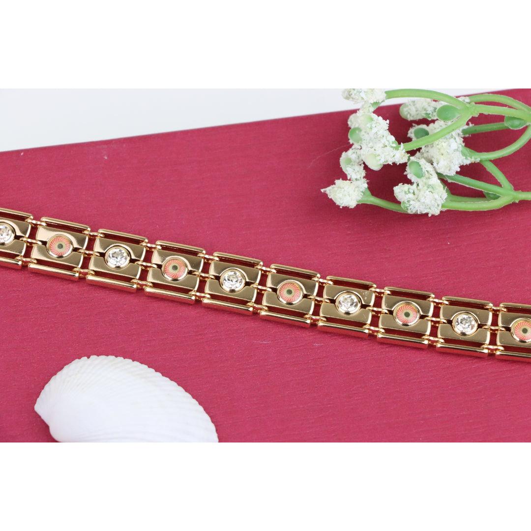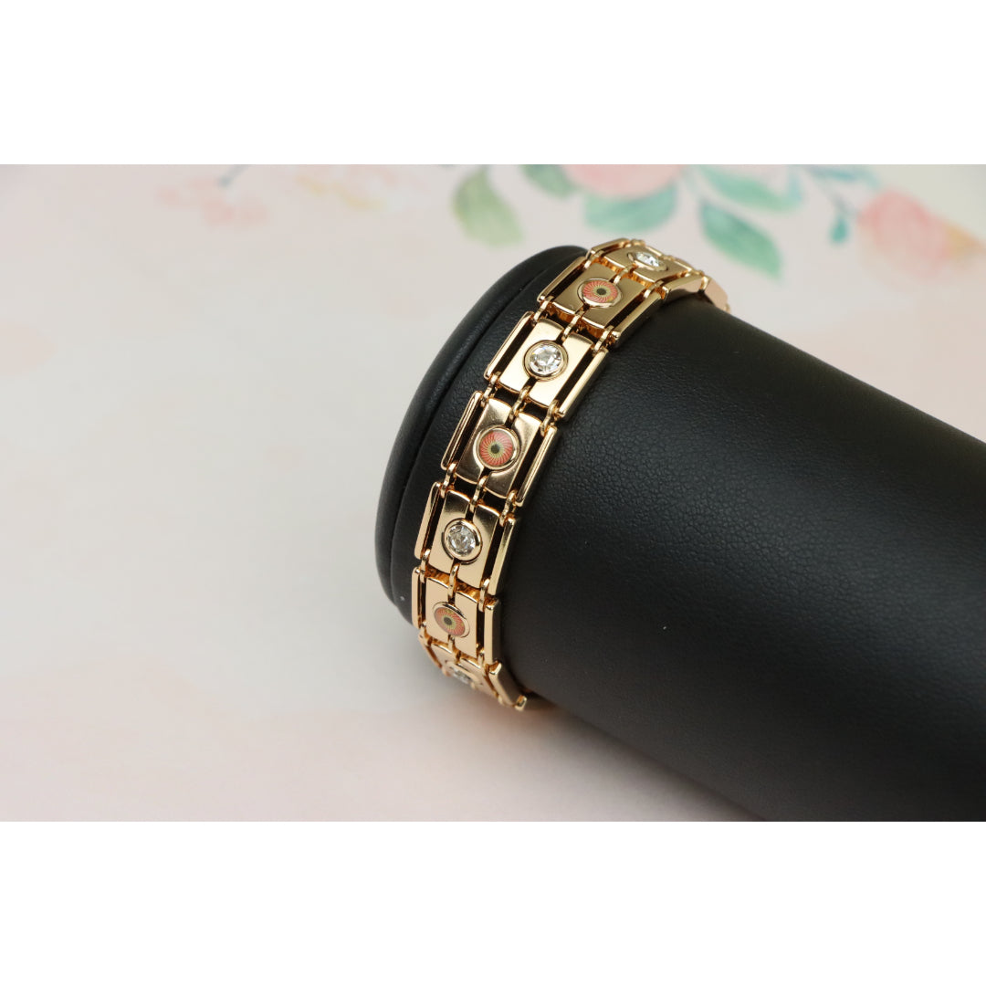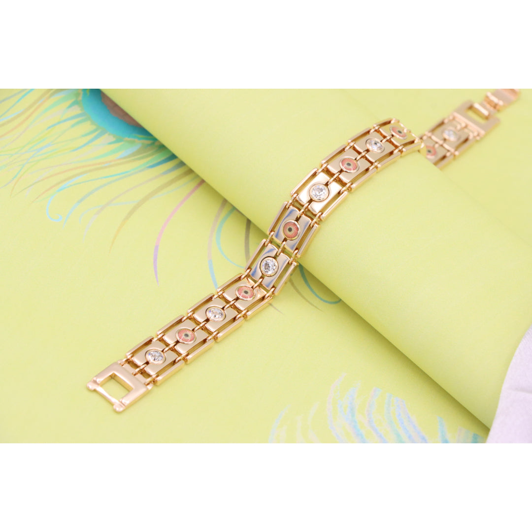 Crafted with premium gold-plated brass, this stunning rose gold bracelet adds timeless elegance to your jewelry collection. Featuring beautiful detailing with sparkling accents, it's perfect for any occasion.