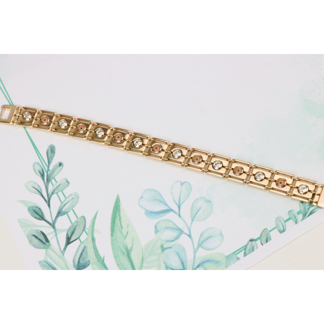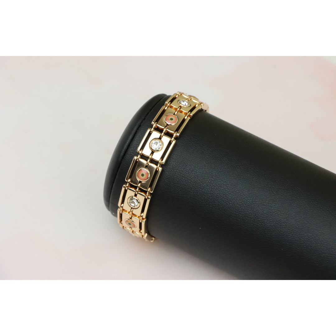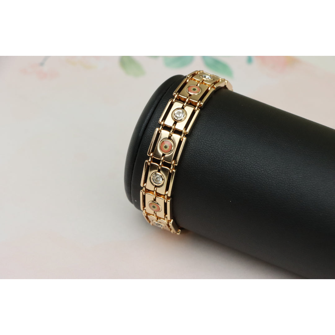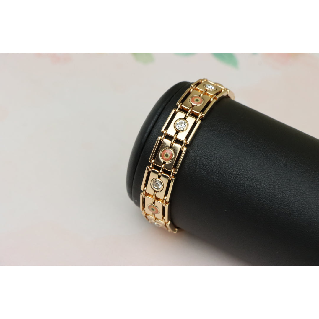 Crafted with premium gold-plated brass, this stunning rose gold bracelet adds timeless elegance to your jewelry collection. Featuring beautiful detailing with sparkling accents, it's perfect for any occasion.