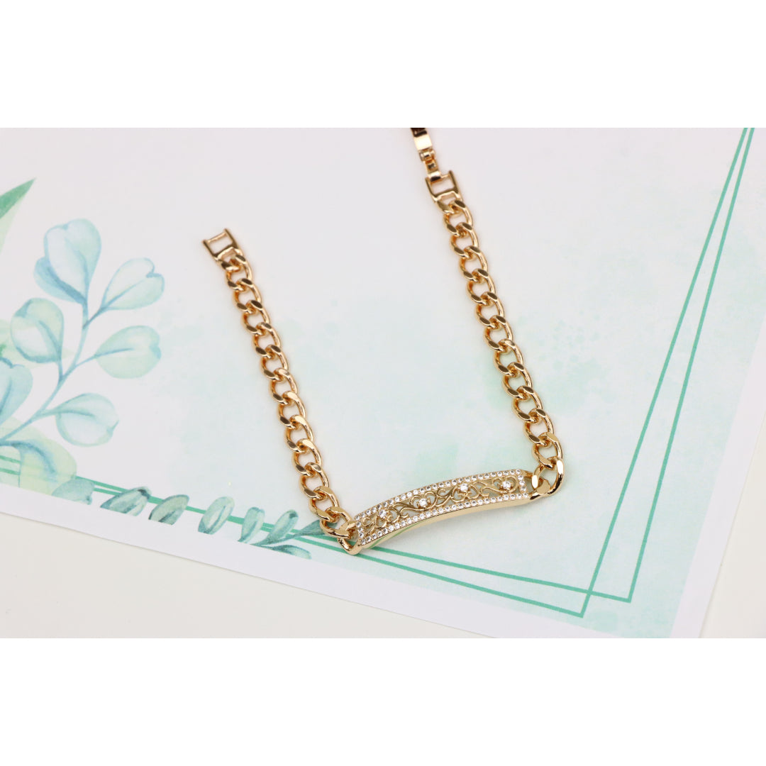 Elegant Rose Gold Plated Filigree Chain Bracelet with Crystal Accent, XPBL0645