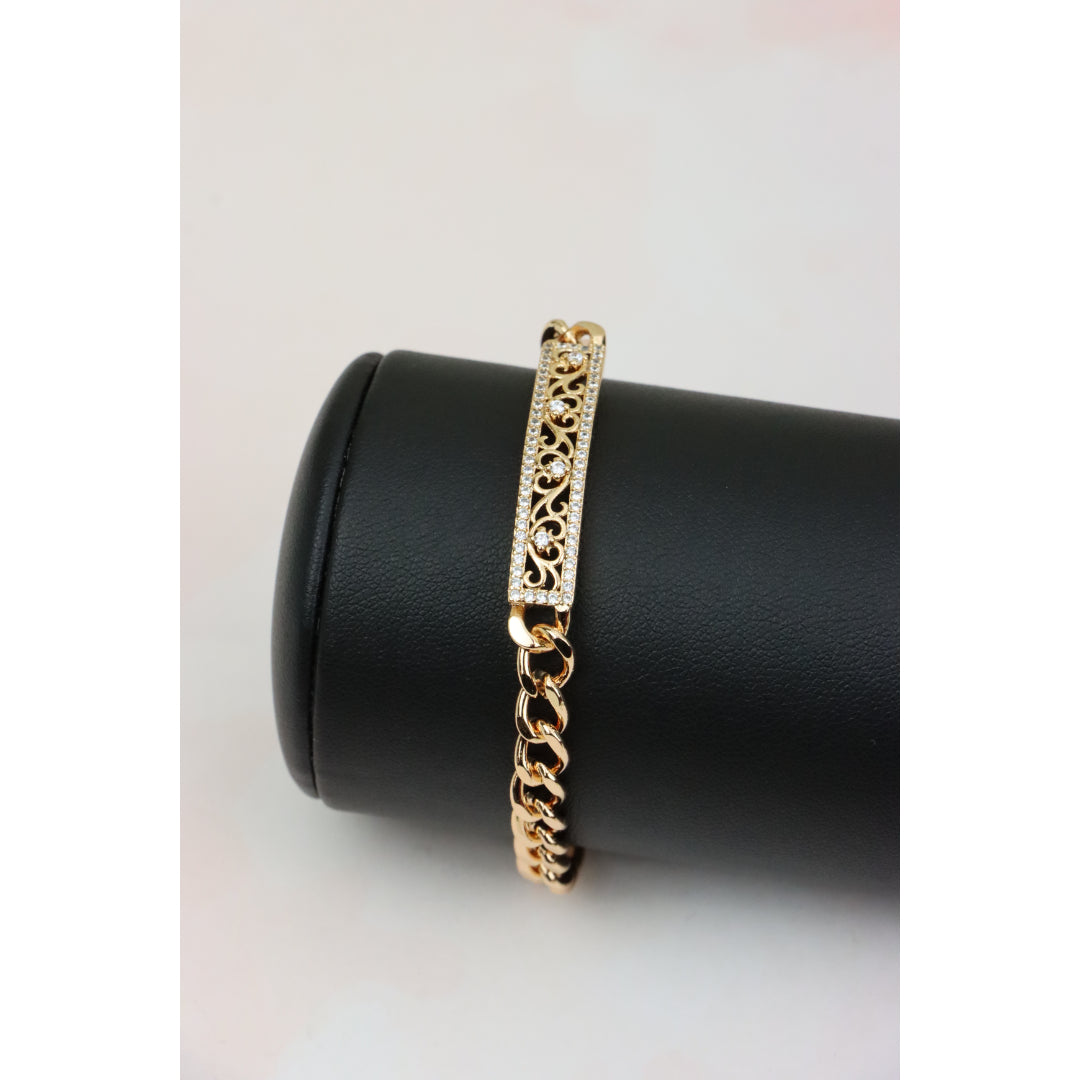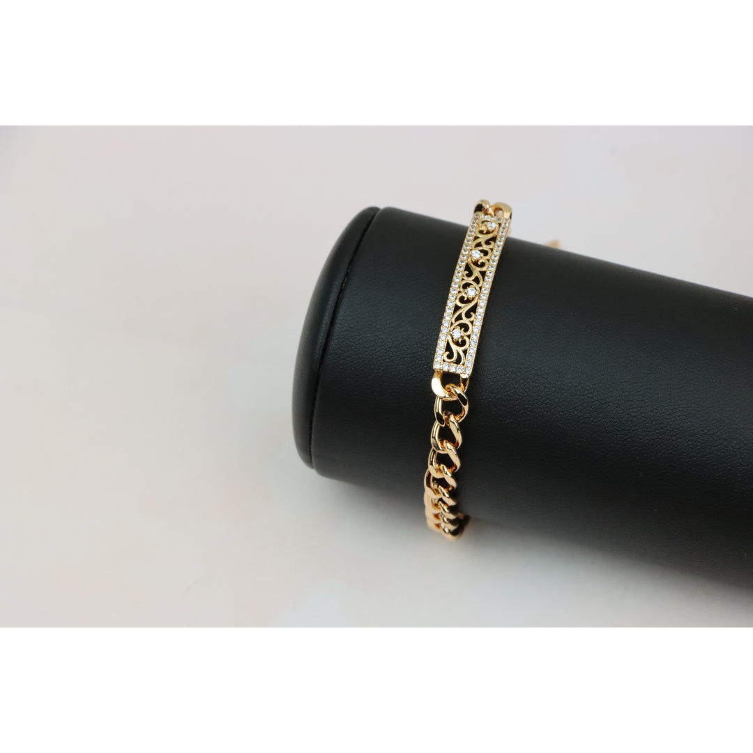 Elegant Rose Gold Plated Filigree Chain Bracelet with Crystal Accent, XPBL0645 (2065-4)
