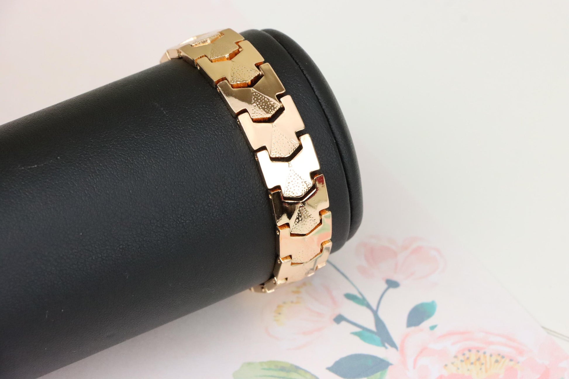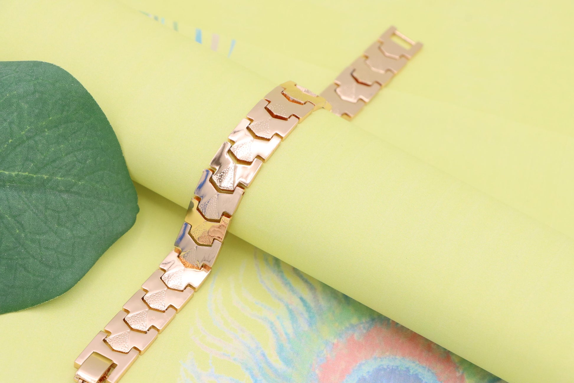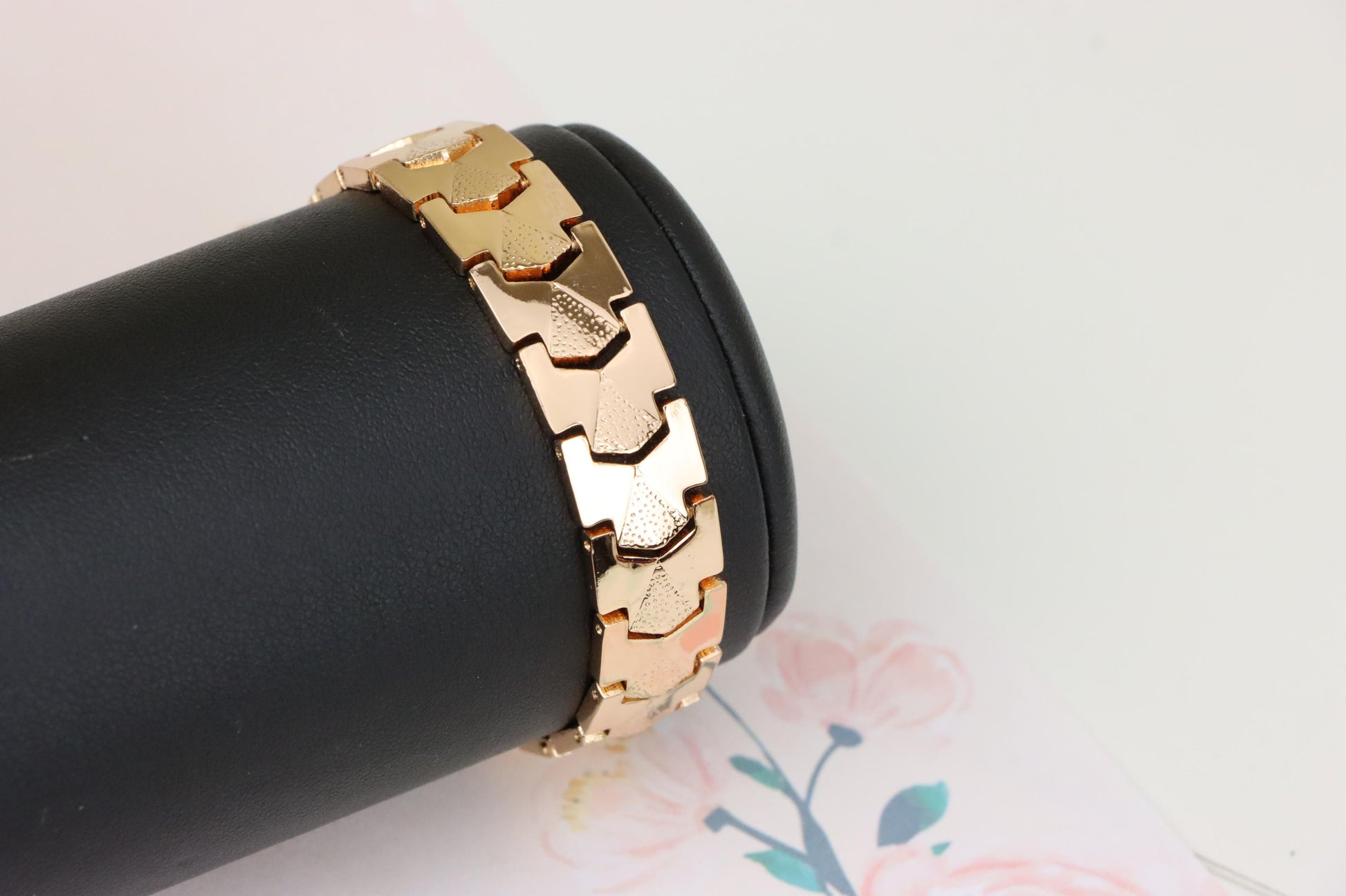 Elegant Rose Gold Plated Link Bracelet with Bold Textured Design, XPBL1125