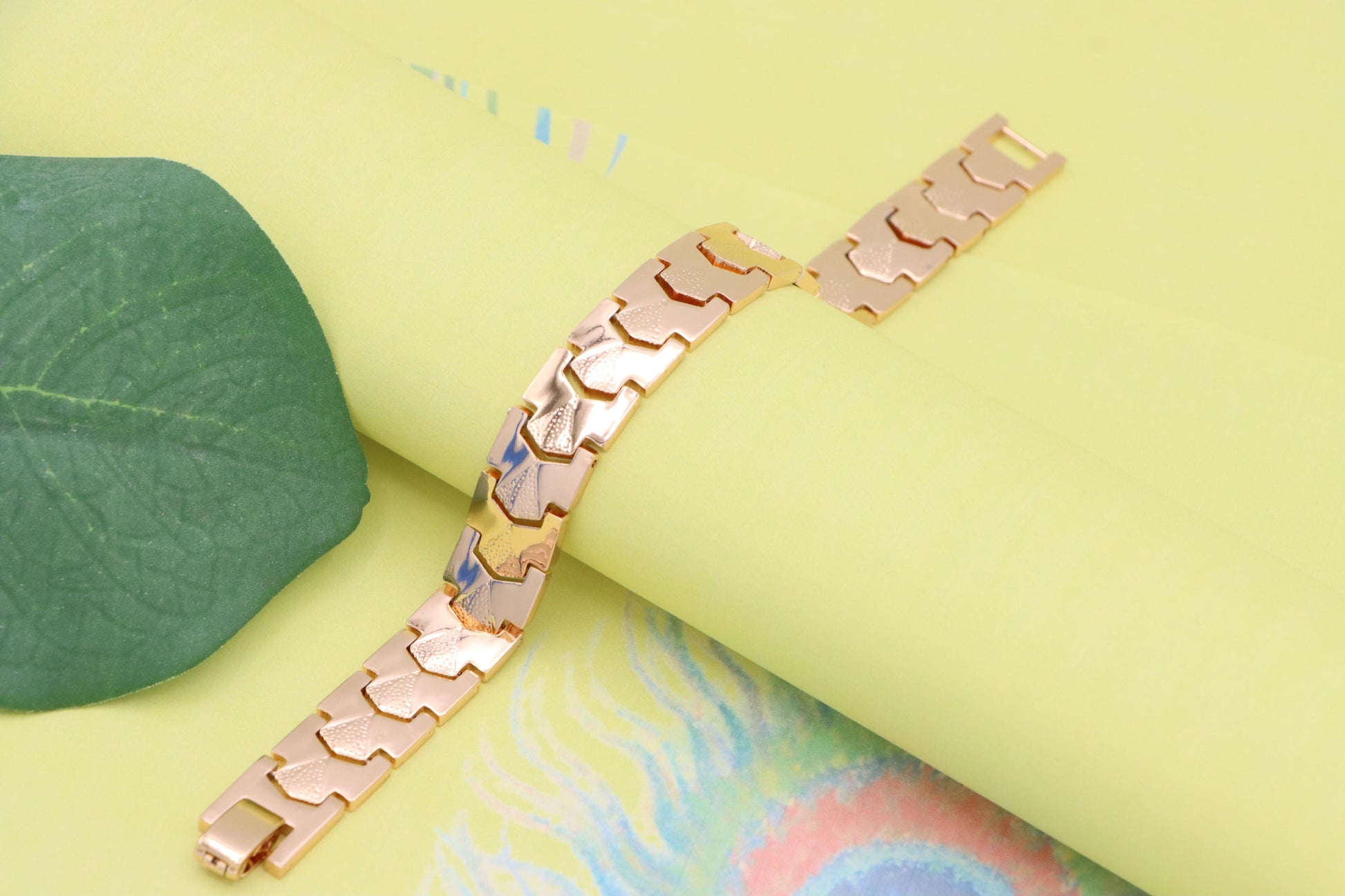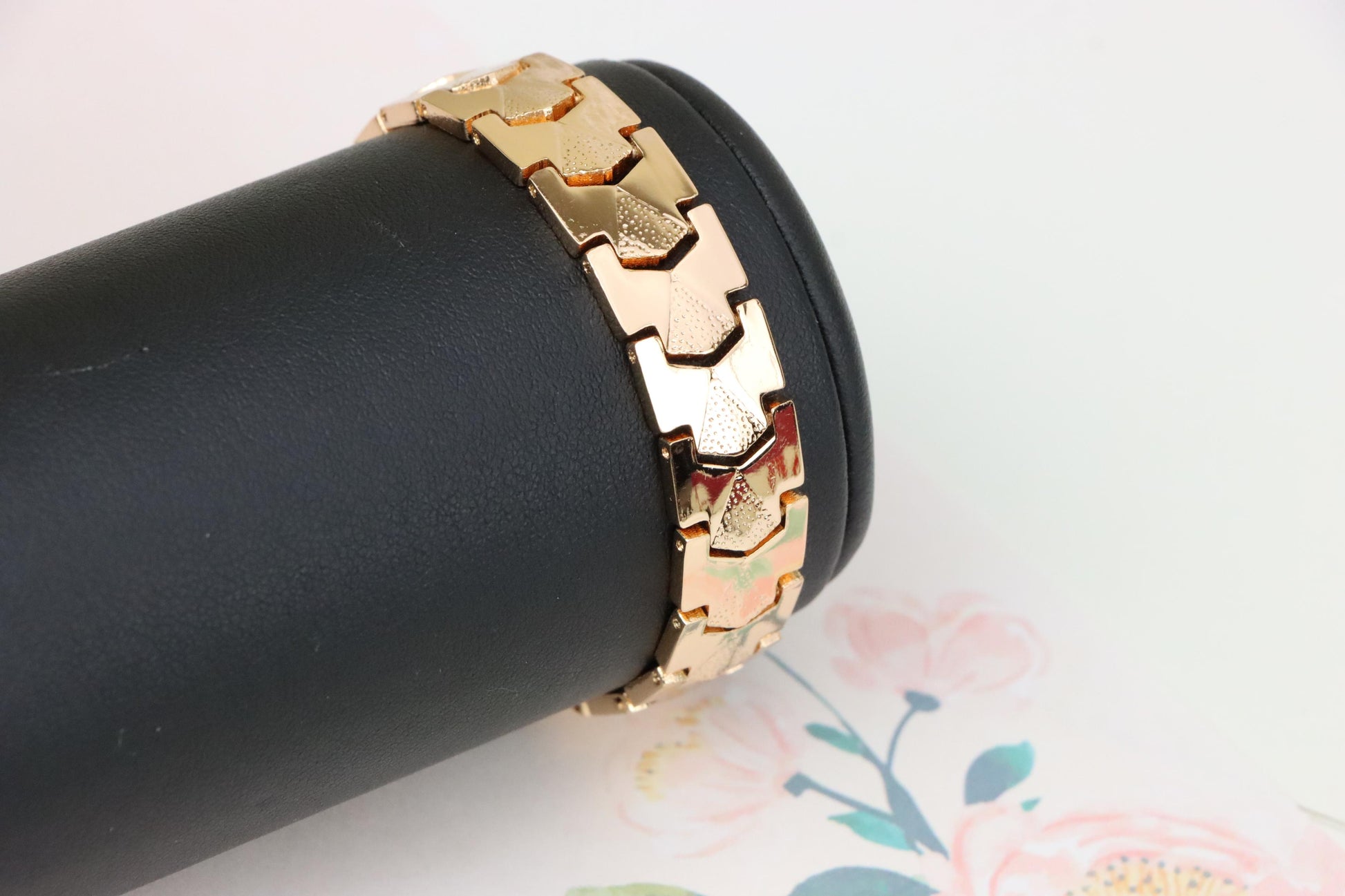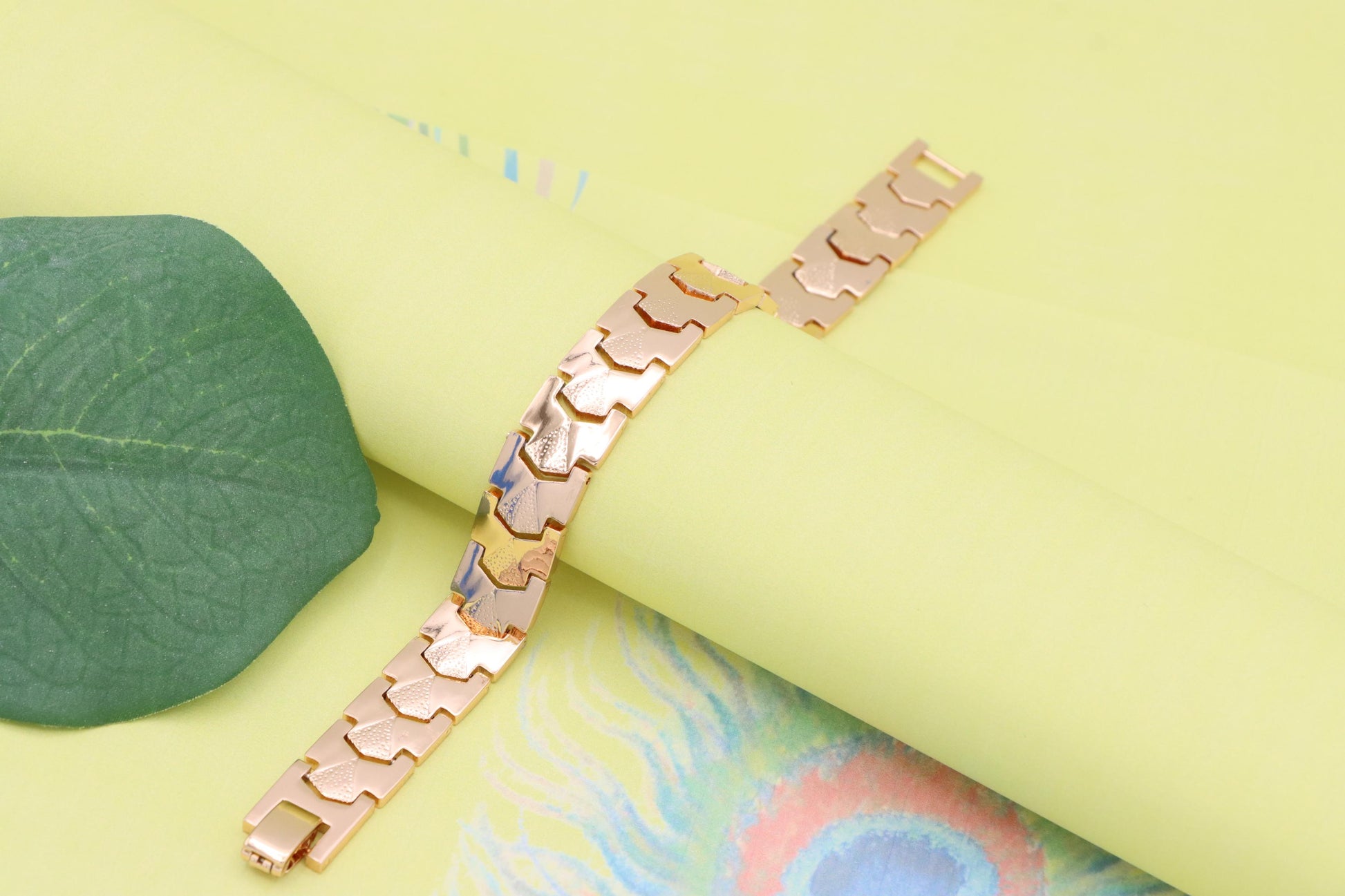 Elegant Rose Gold Plated Link Bracelet with Bold Textured Design, XPBL1125