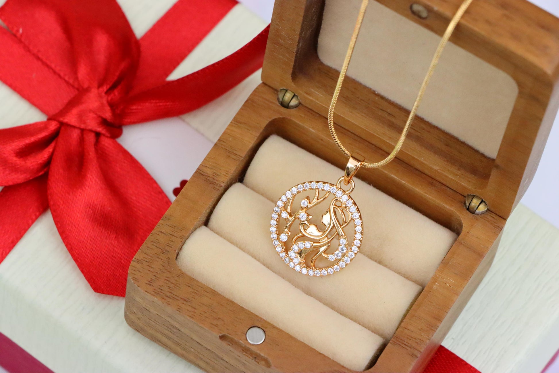 Elegant Rose Gold Round Pendant with Floral and Woman Silhouette, XPPT1516