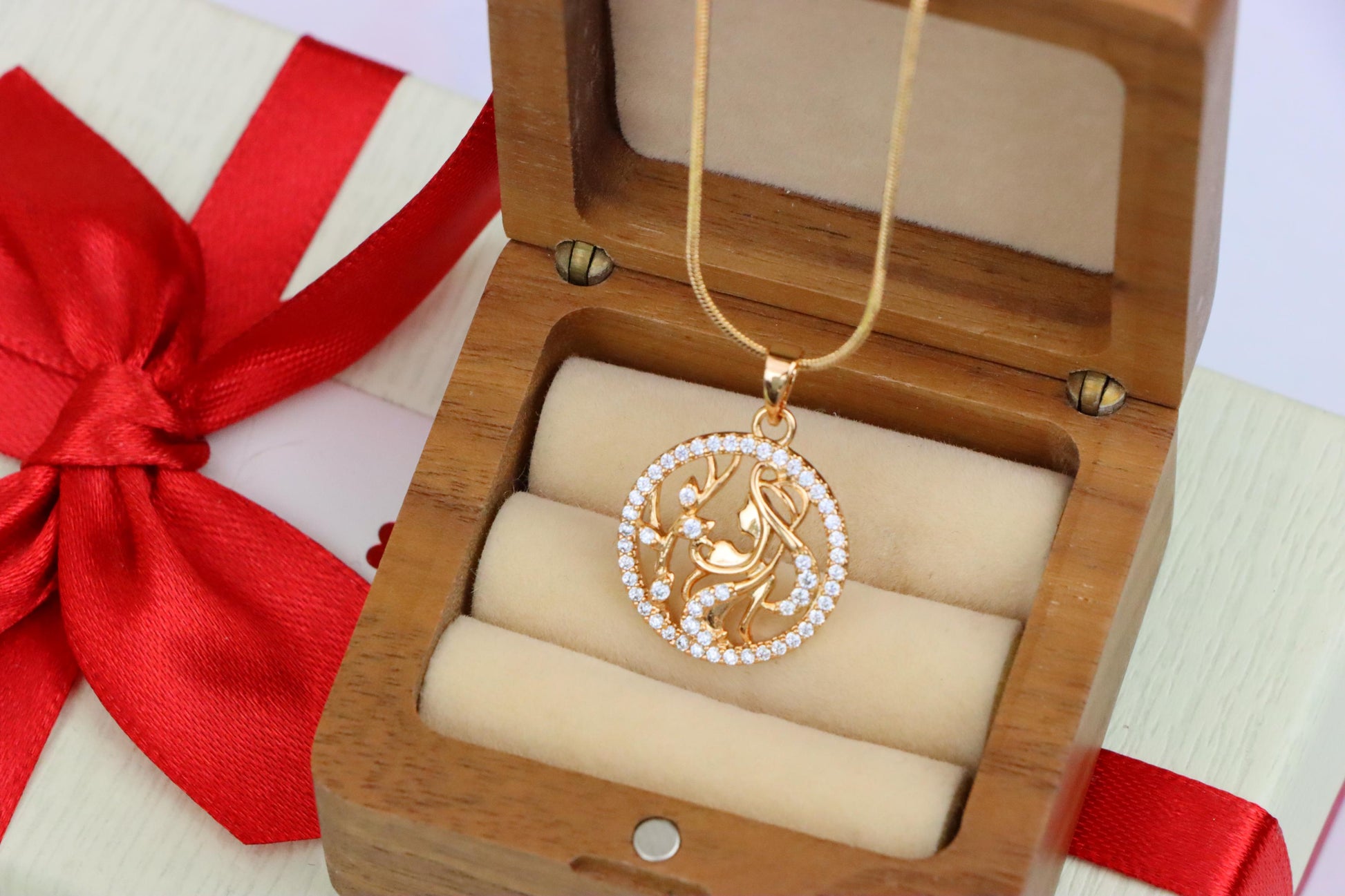 This graceful pendant features a woman in floral surroundings, radiating elegance and charm with sparkling detail.