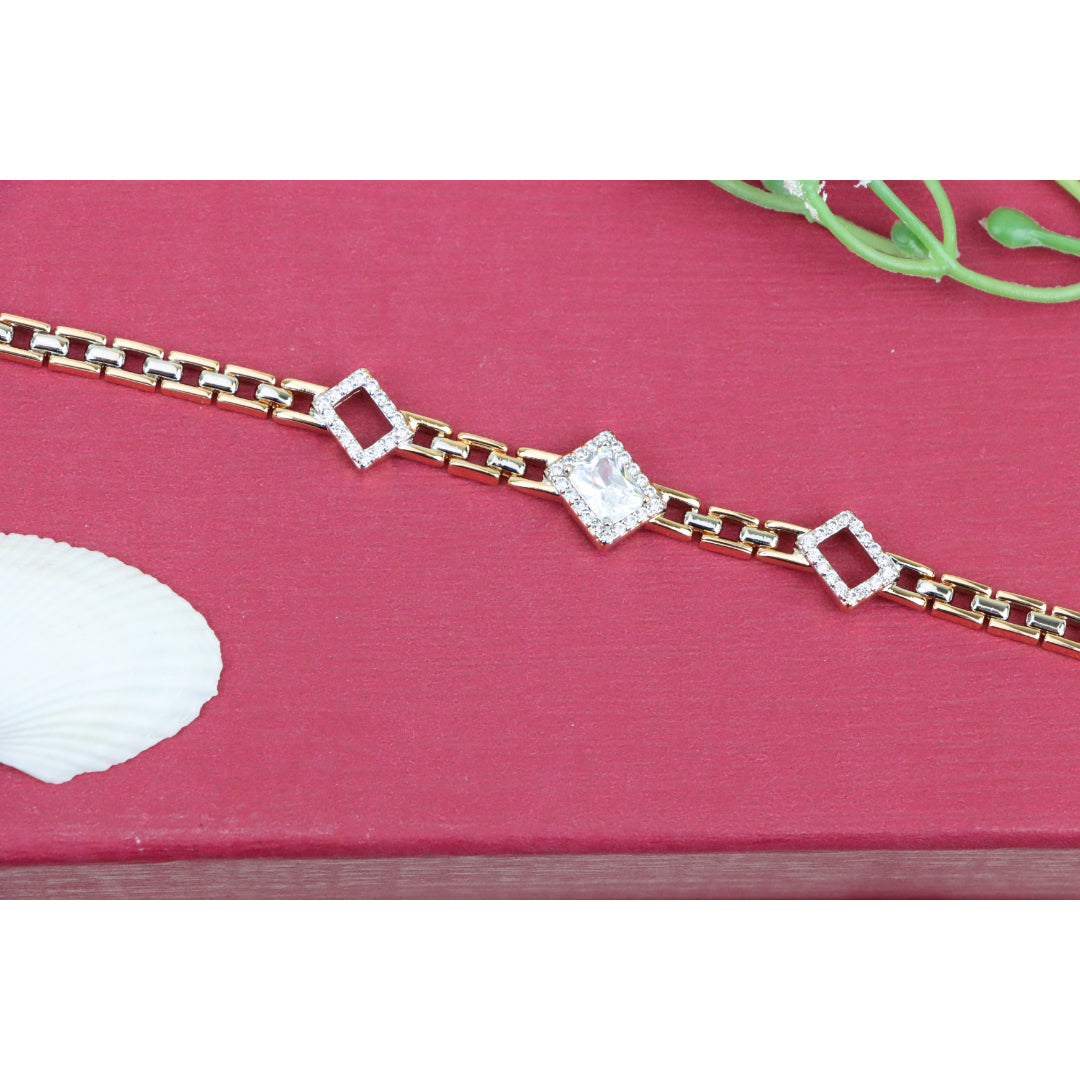 Elegant Rose Gold+Silver Geometric Stone Bracelet, XPBL0846 (2085-6)