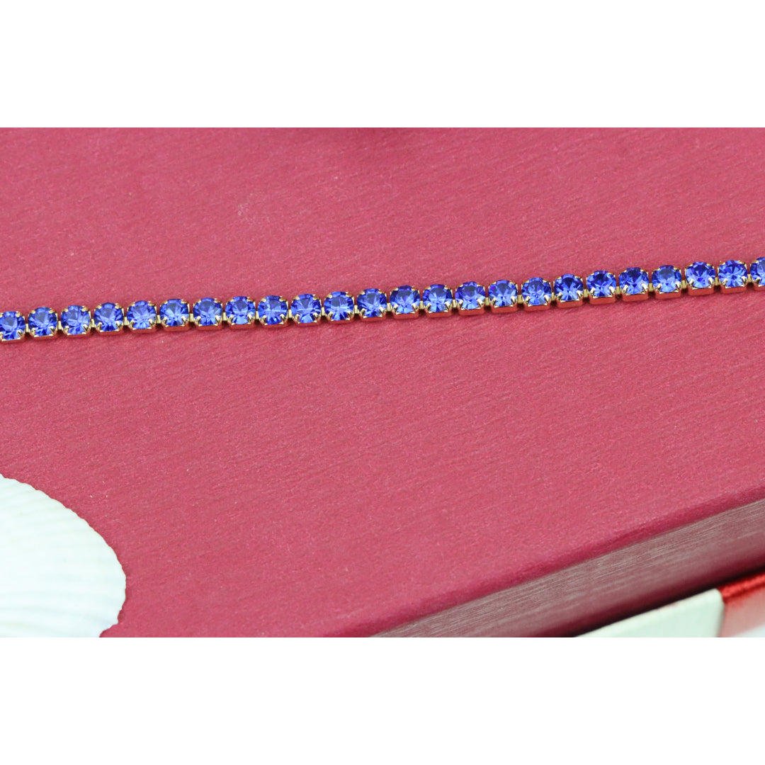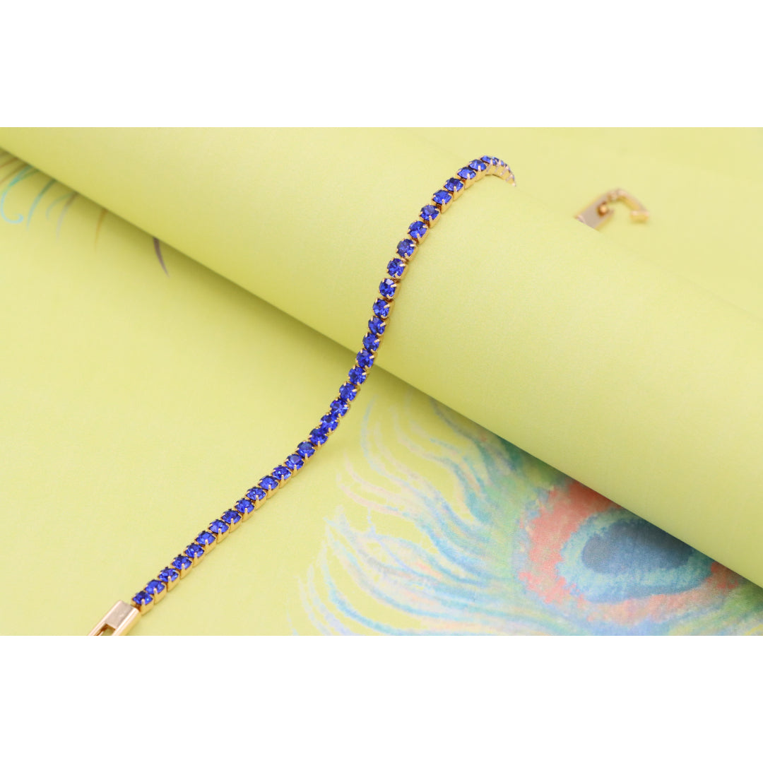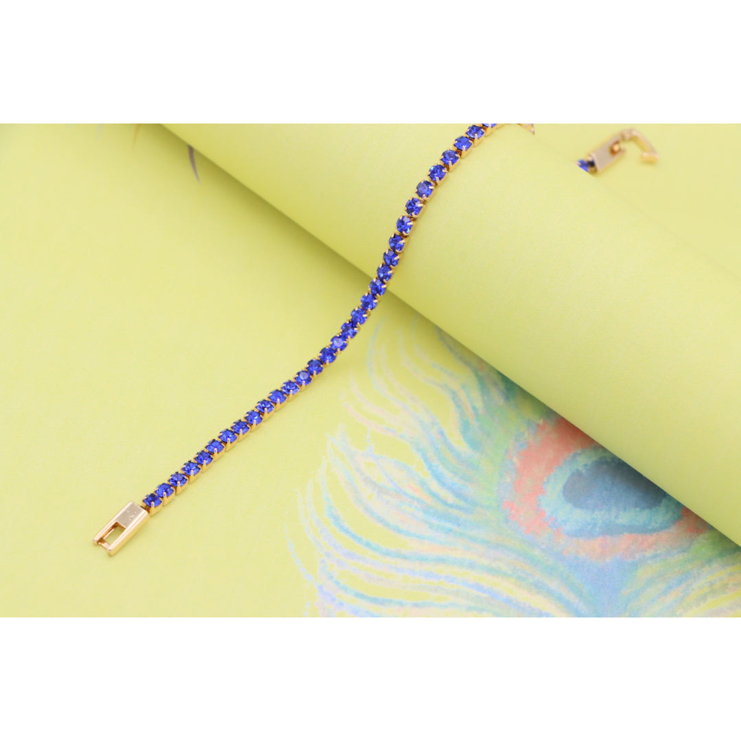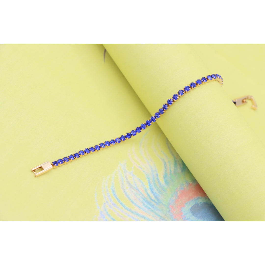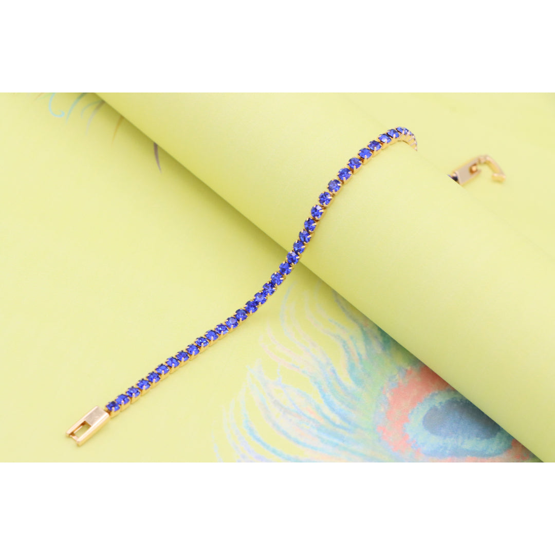Crafted with precision and adorned with vivid blue stones, this rose gold bracelet exudes timeless sophistication. The shimmering gems and refined finish make it ideal for both casual and formal occasions.