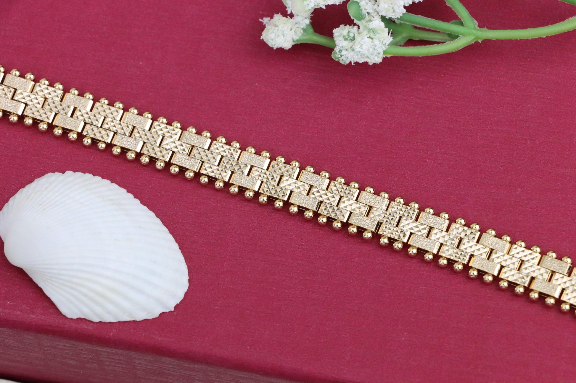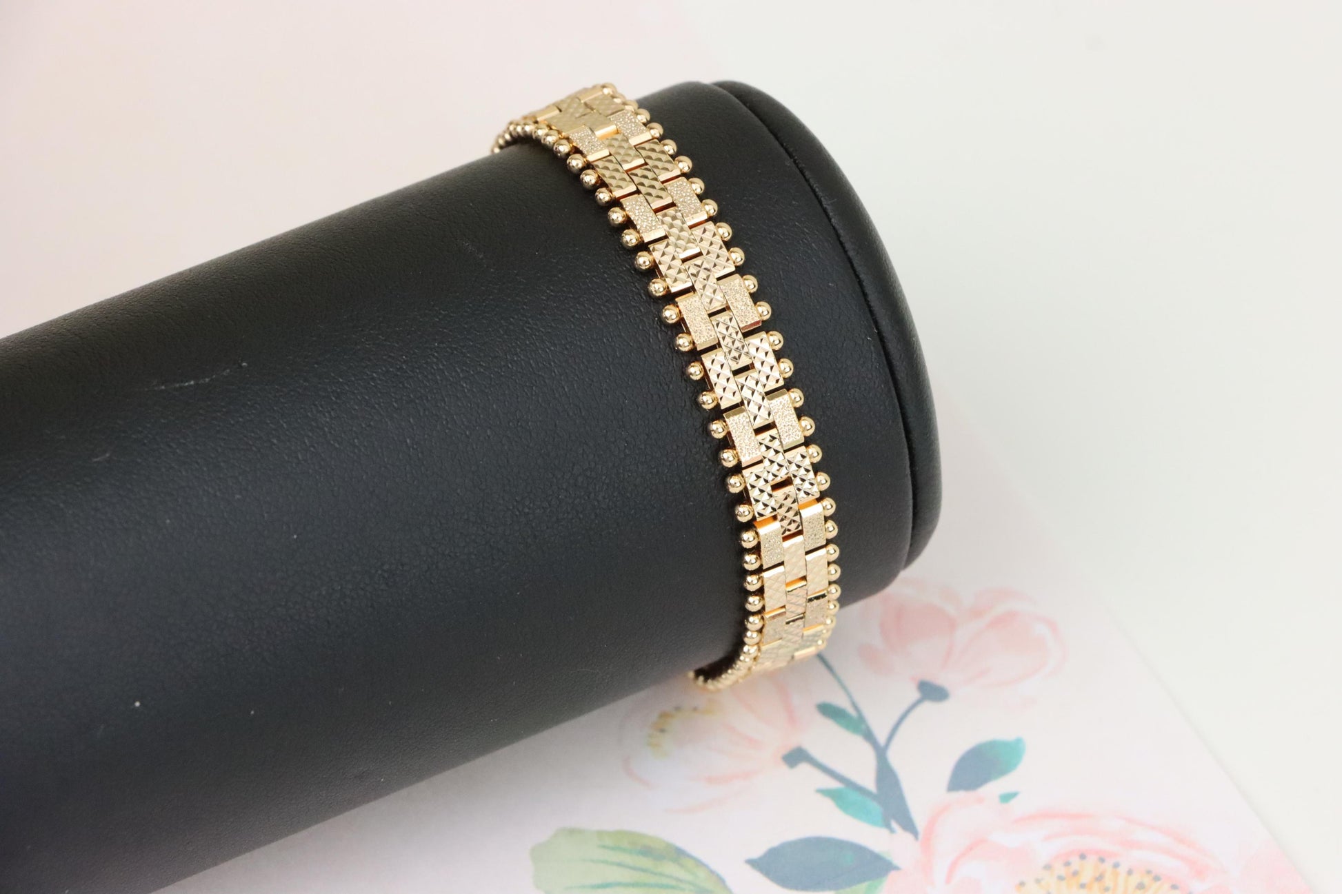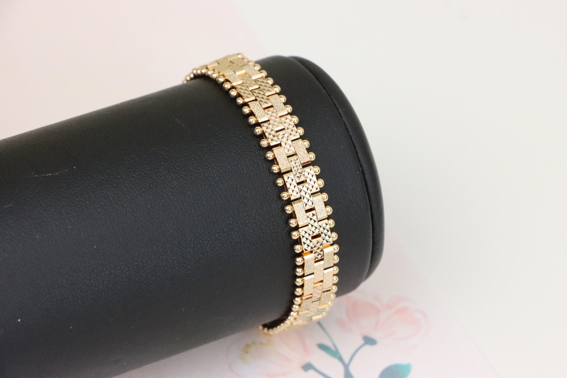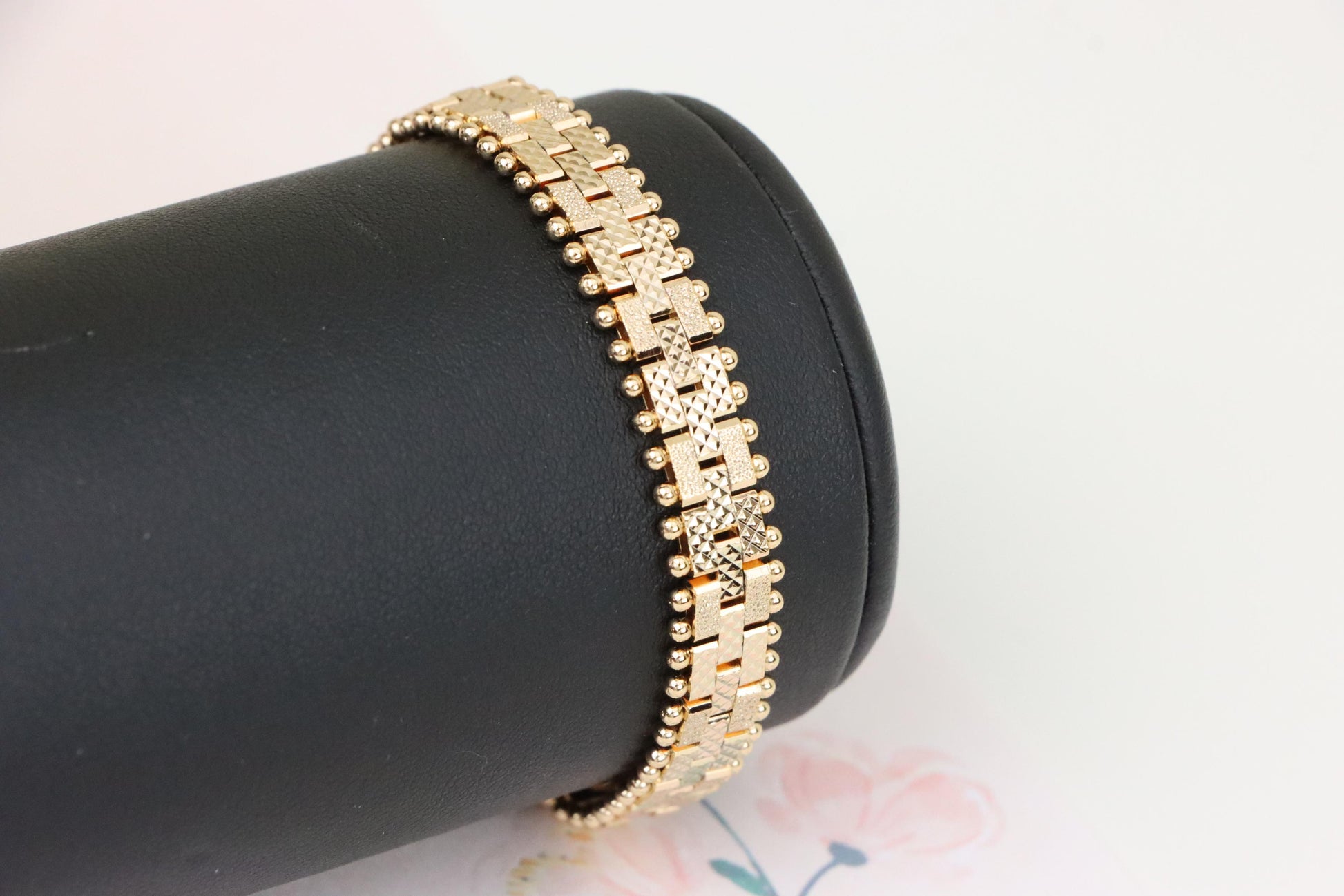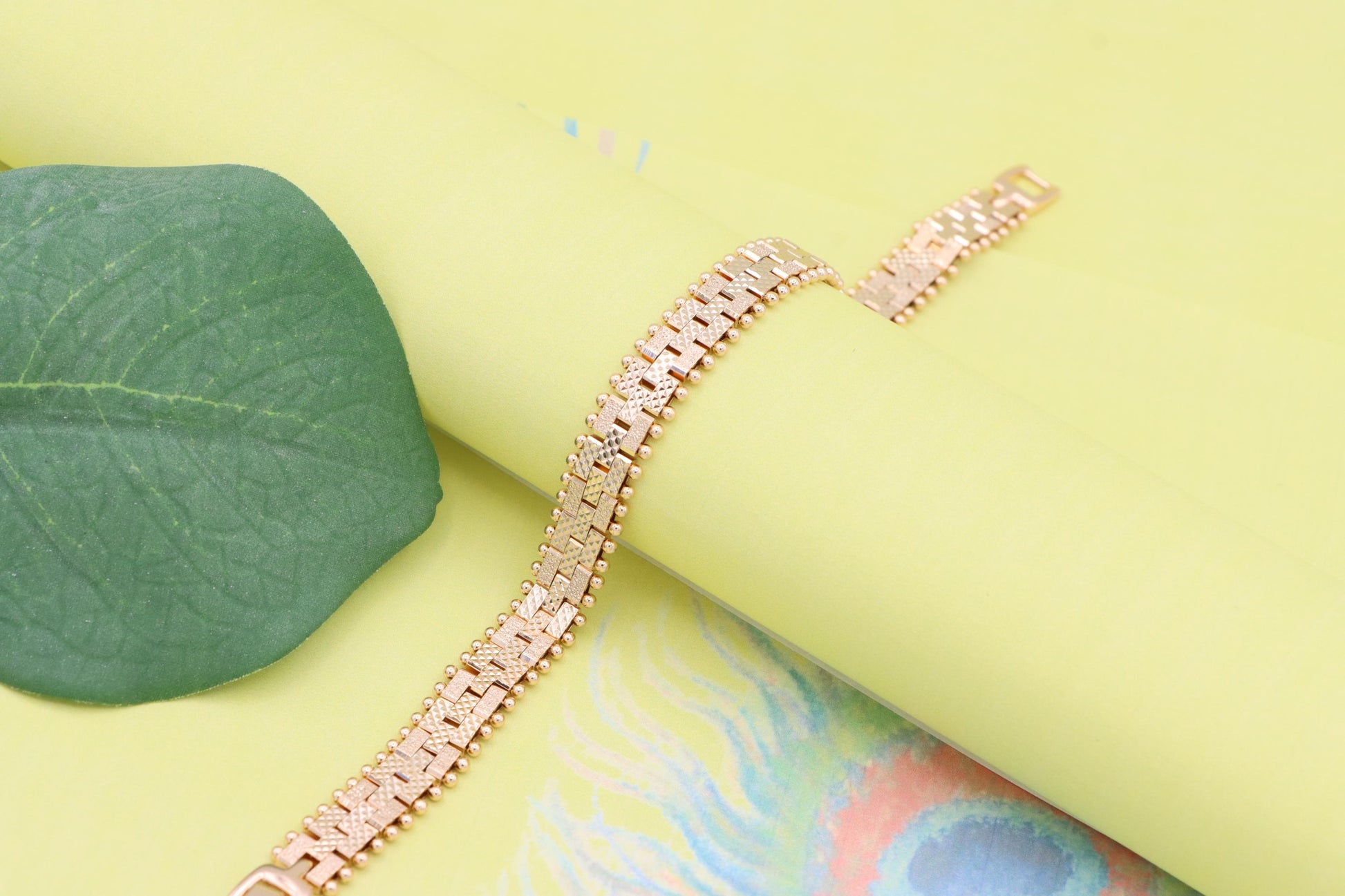 Elegant Rose Gold Wide Bracelet with Beaded Edge, XPBL1119