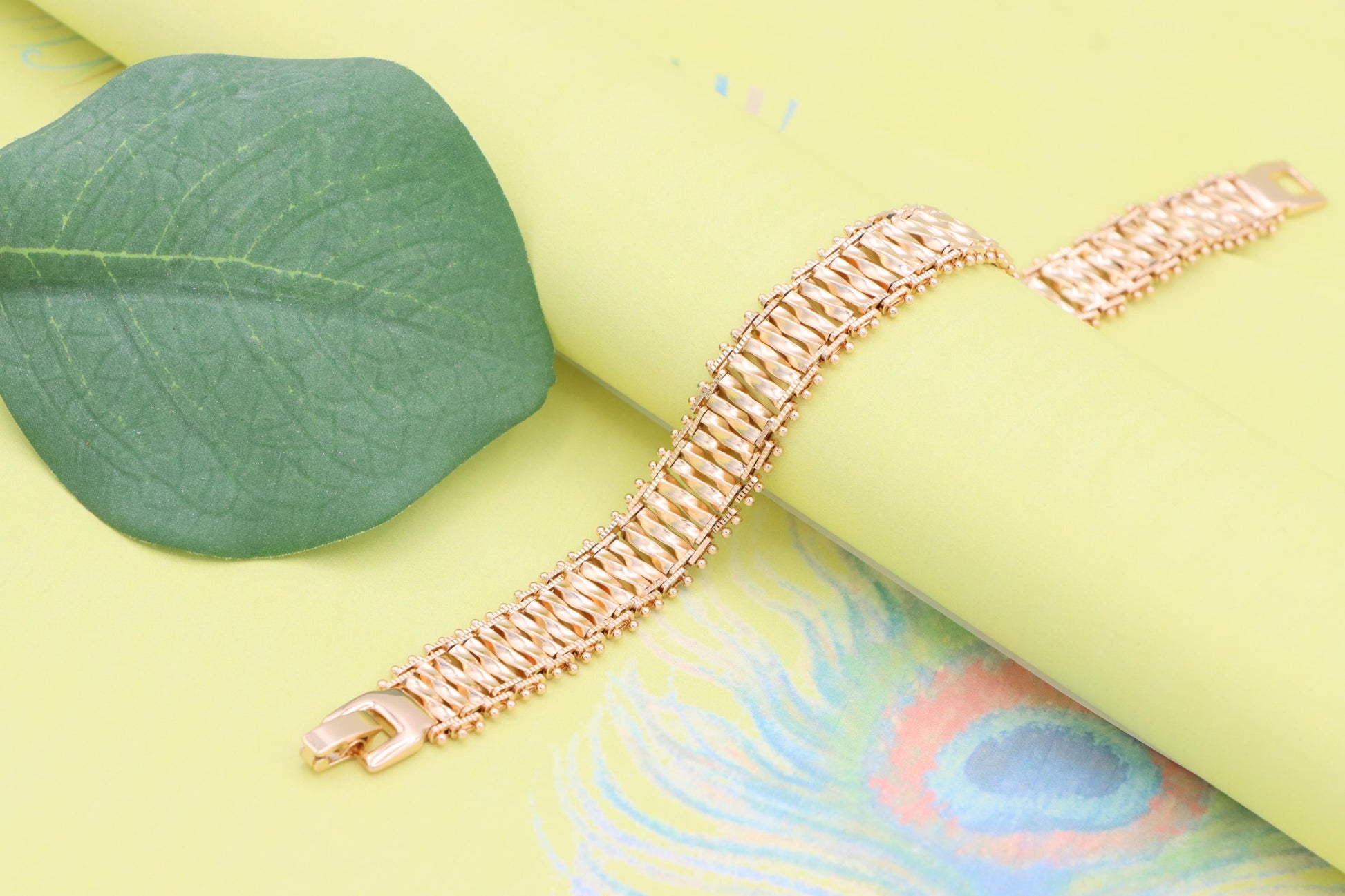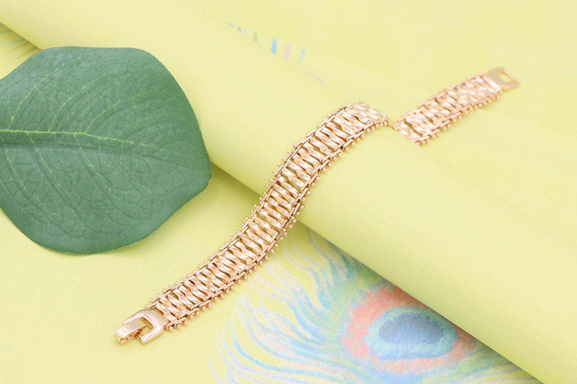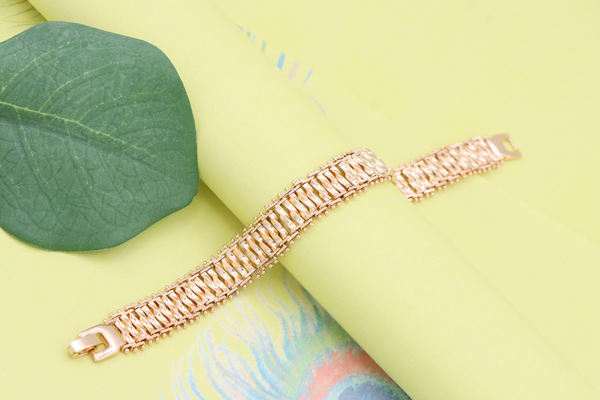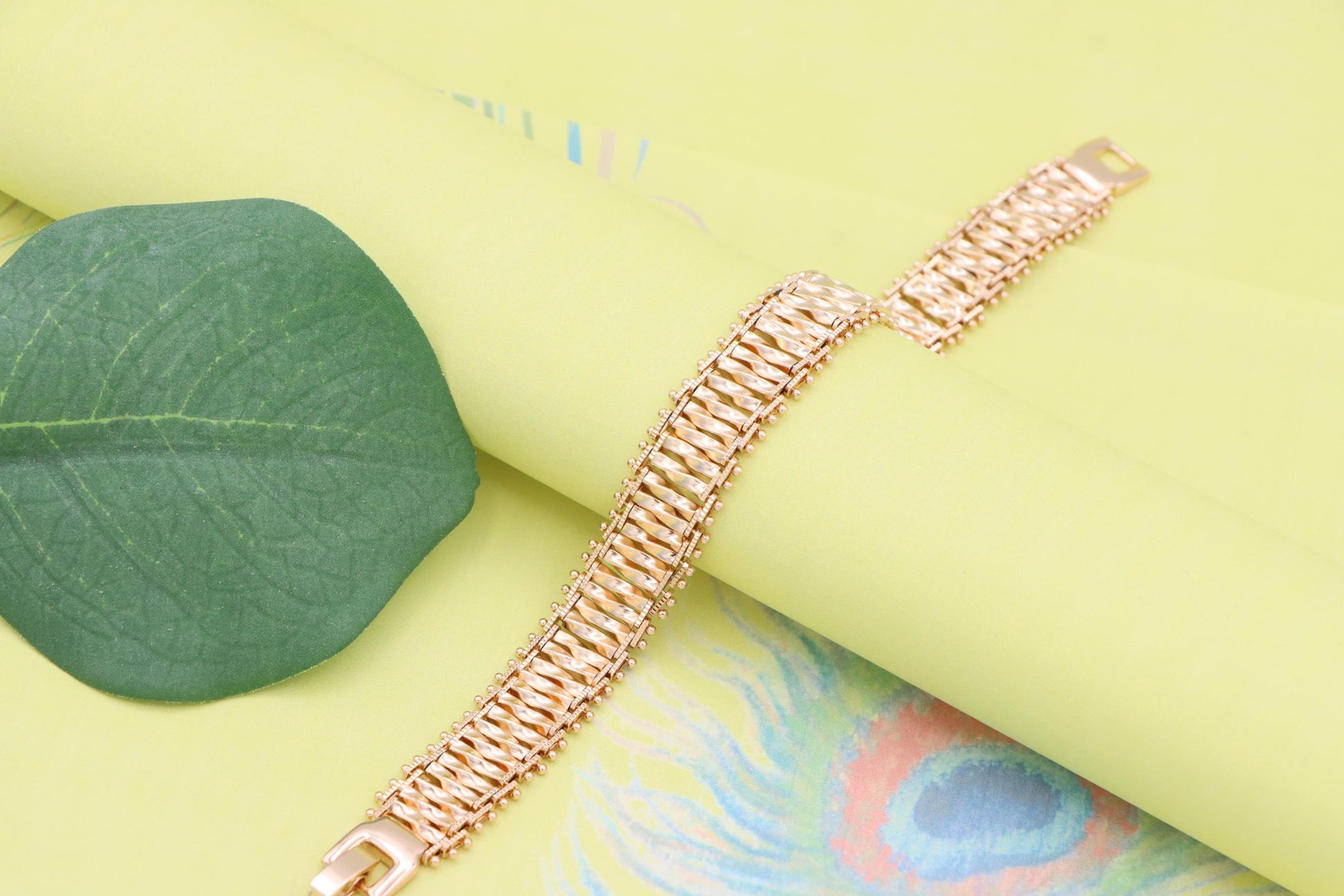 Crafted for timeless elegance, this rose gold bracelet showcases a unique wide-link design with intricate detailing, ideal for elevating everyday style or accentuating special occasion wear.