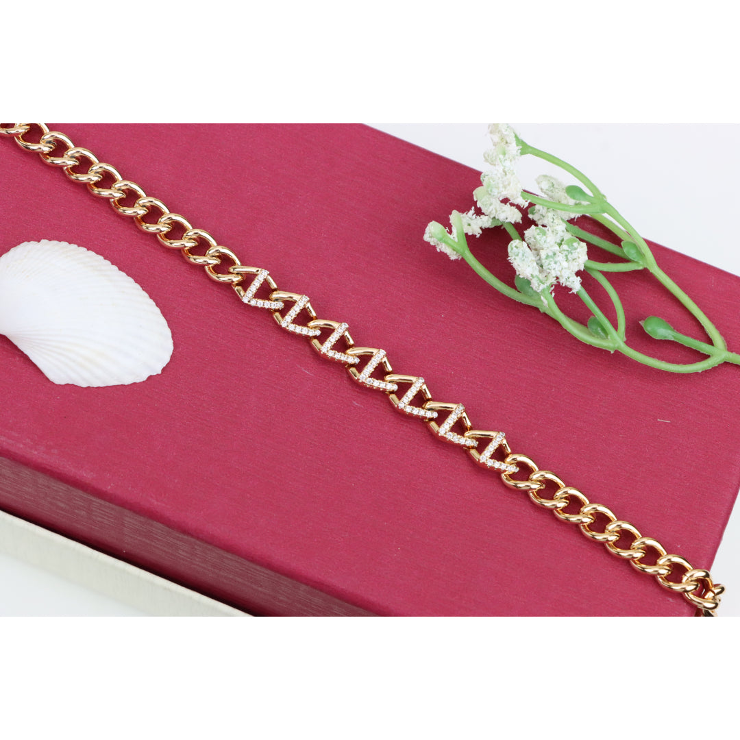 Elegant Rose Gold Zigzag Chain Bracelet with Dazzling CZ Stones, XPBL0944
