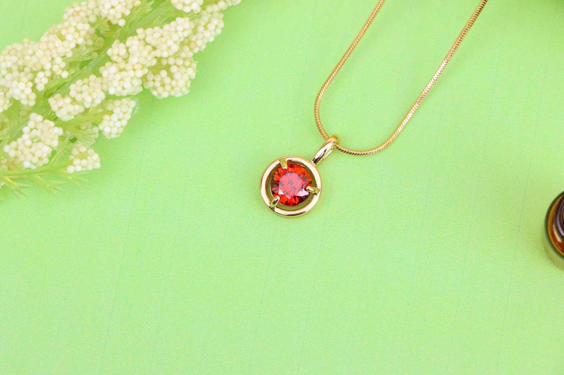 Elegant Round Red Crystal Pendant in Gold Plated Brass, XPPT1702