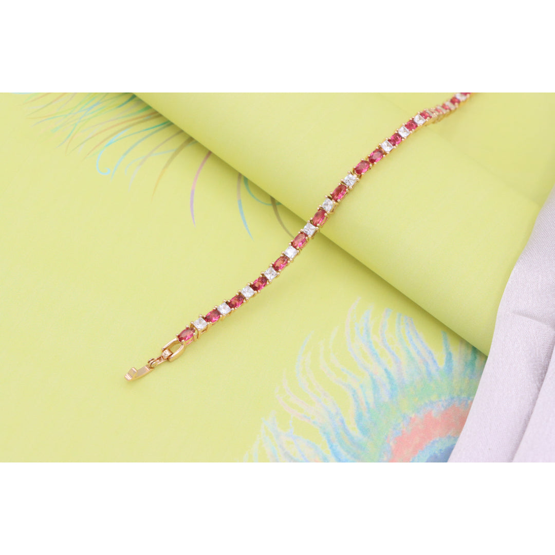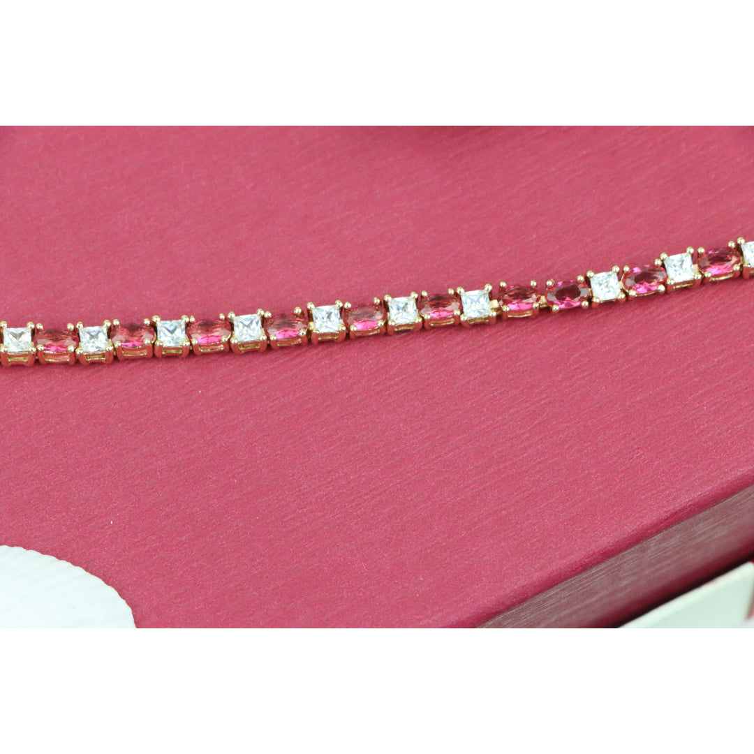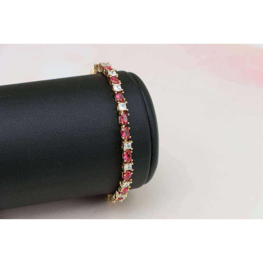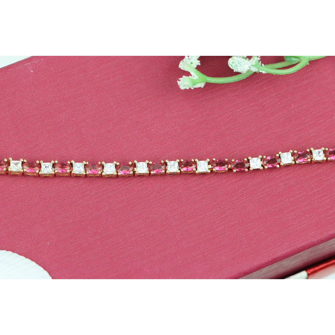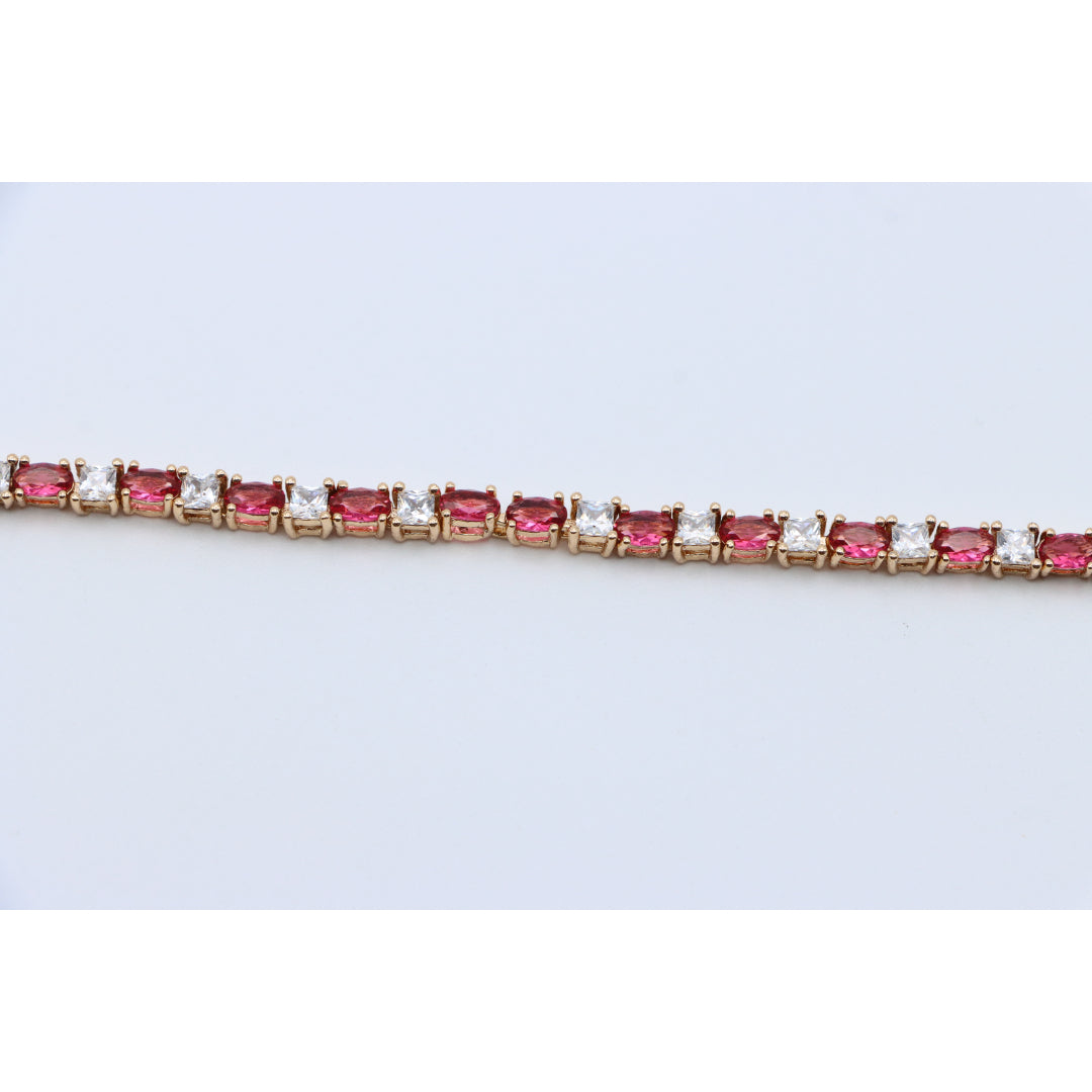 Elegant Ruby & Crystal Link Rose Gold Bracelet, XPBL0776