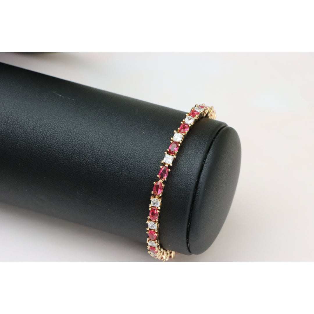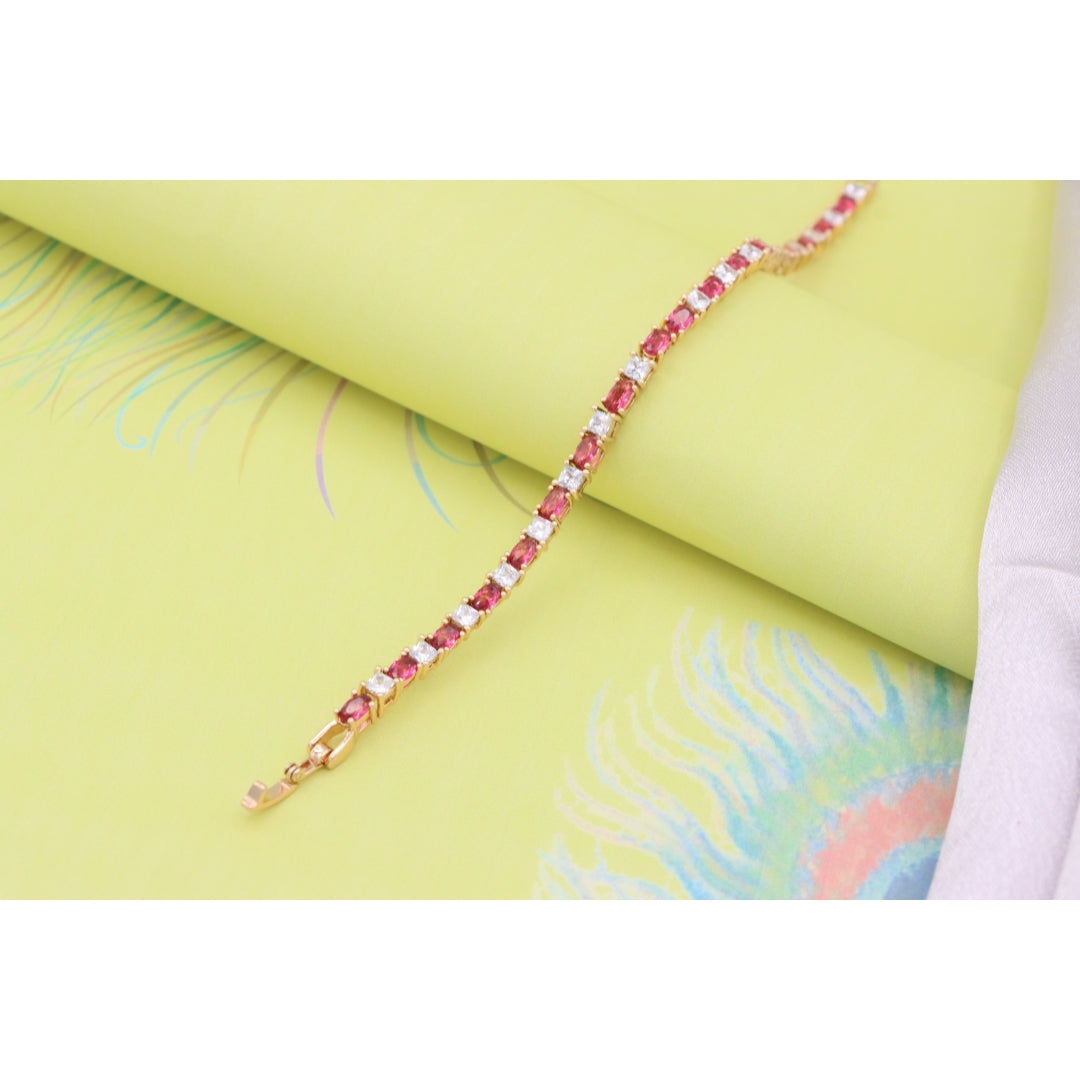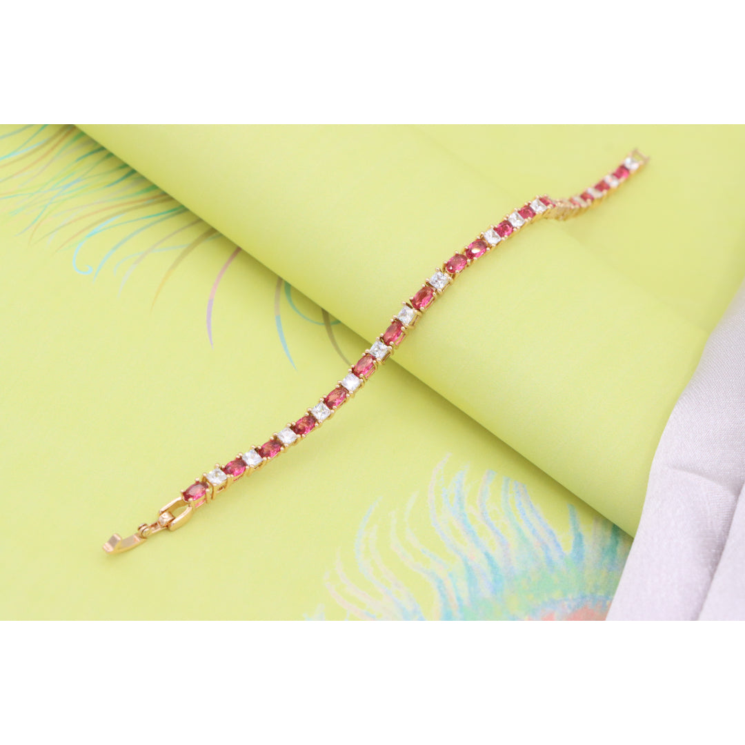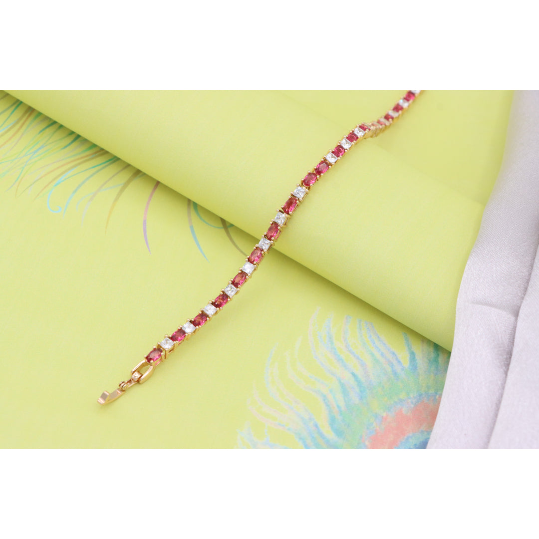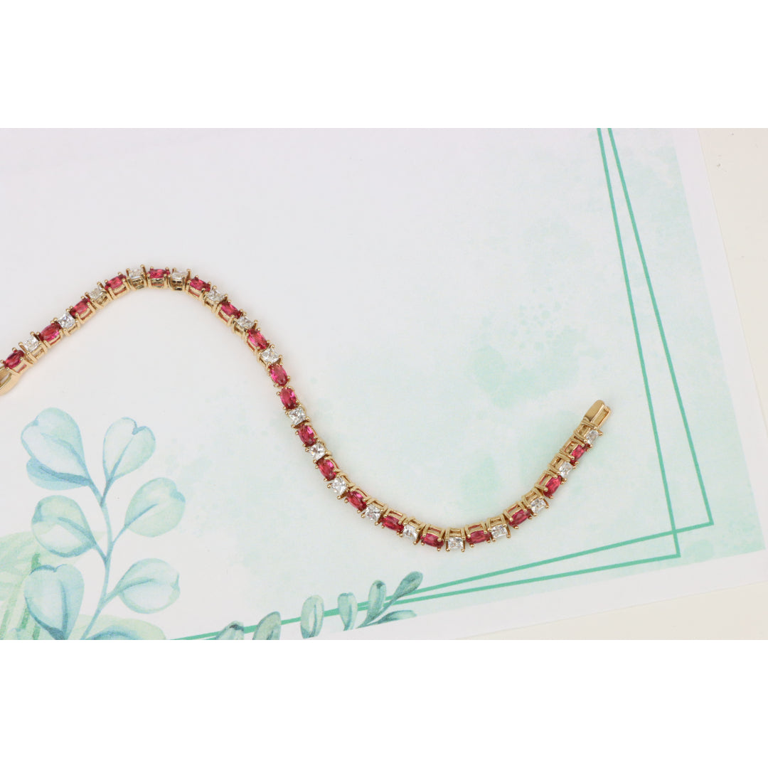 Elegant Ruby & Crystal Link Rose Gold Bracelet, XPBL0776
