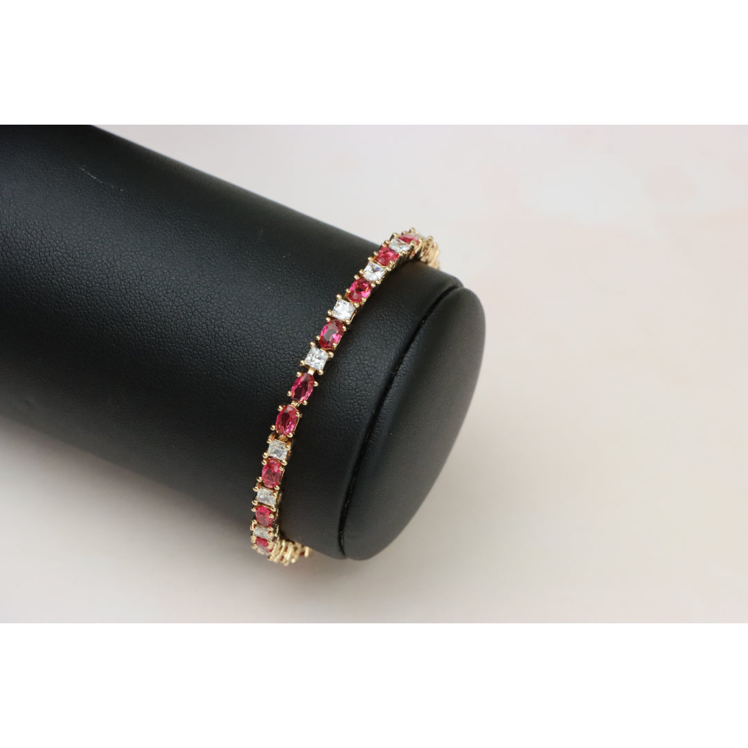 Dazzling bracelet alternating vivid ruby-toned ovals and white crystals in a timeless, feminine design.