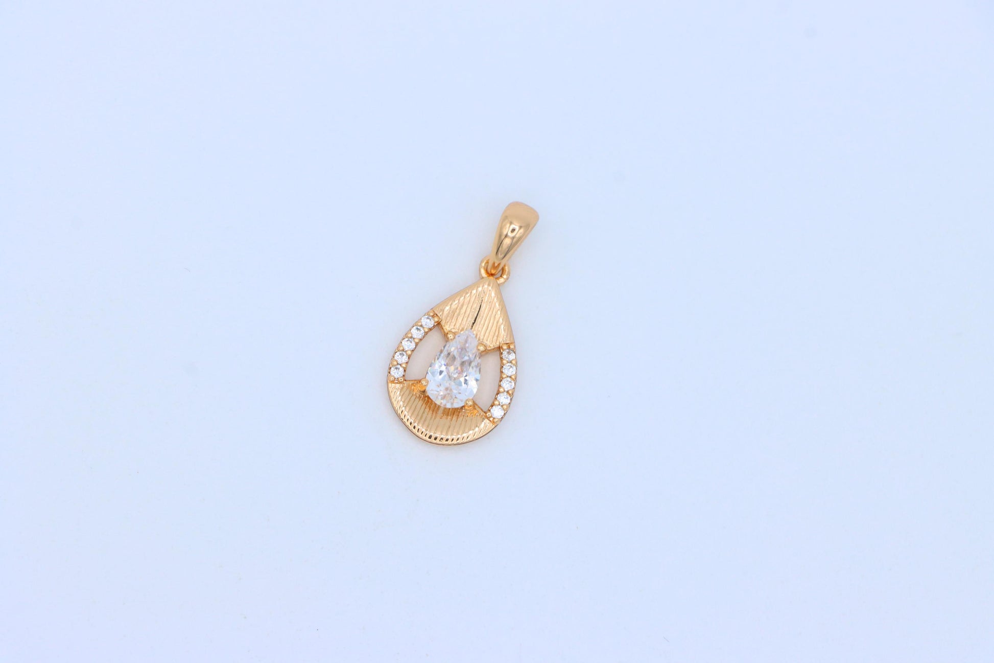 Elegant Teardrop Pendant with White Gemstone and Gold Finish, XPPT1687 (2164-4)