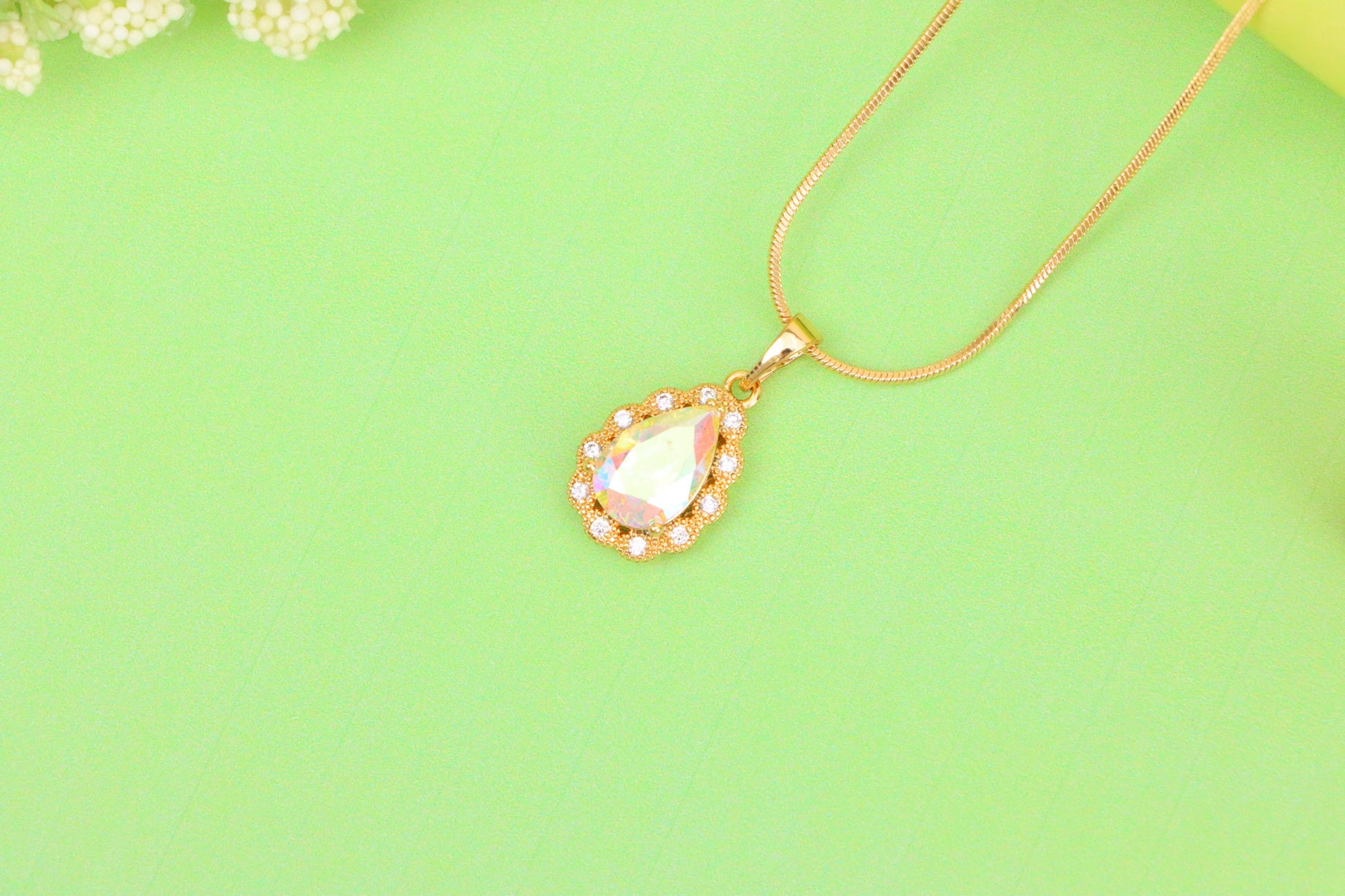 Elegant Teardrop Rose Gold Pendant with Iridescent Stone Accent, XPPT1515 (2140-8)