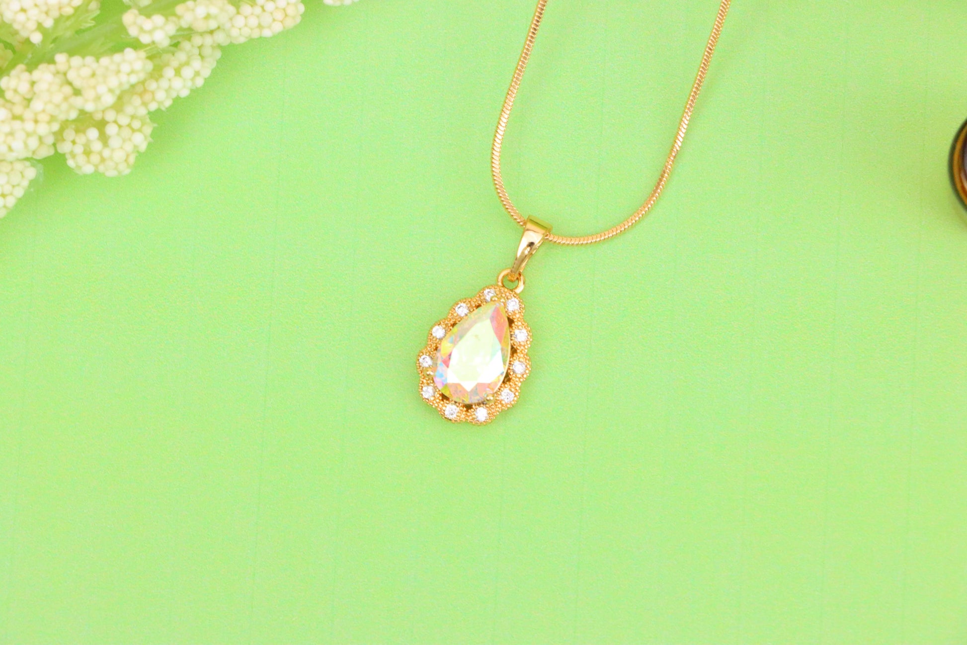 Elegant Teardrop Rose Gold Pendant with Iridescent Stone Accent, XPPT1515