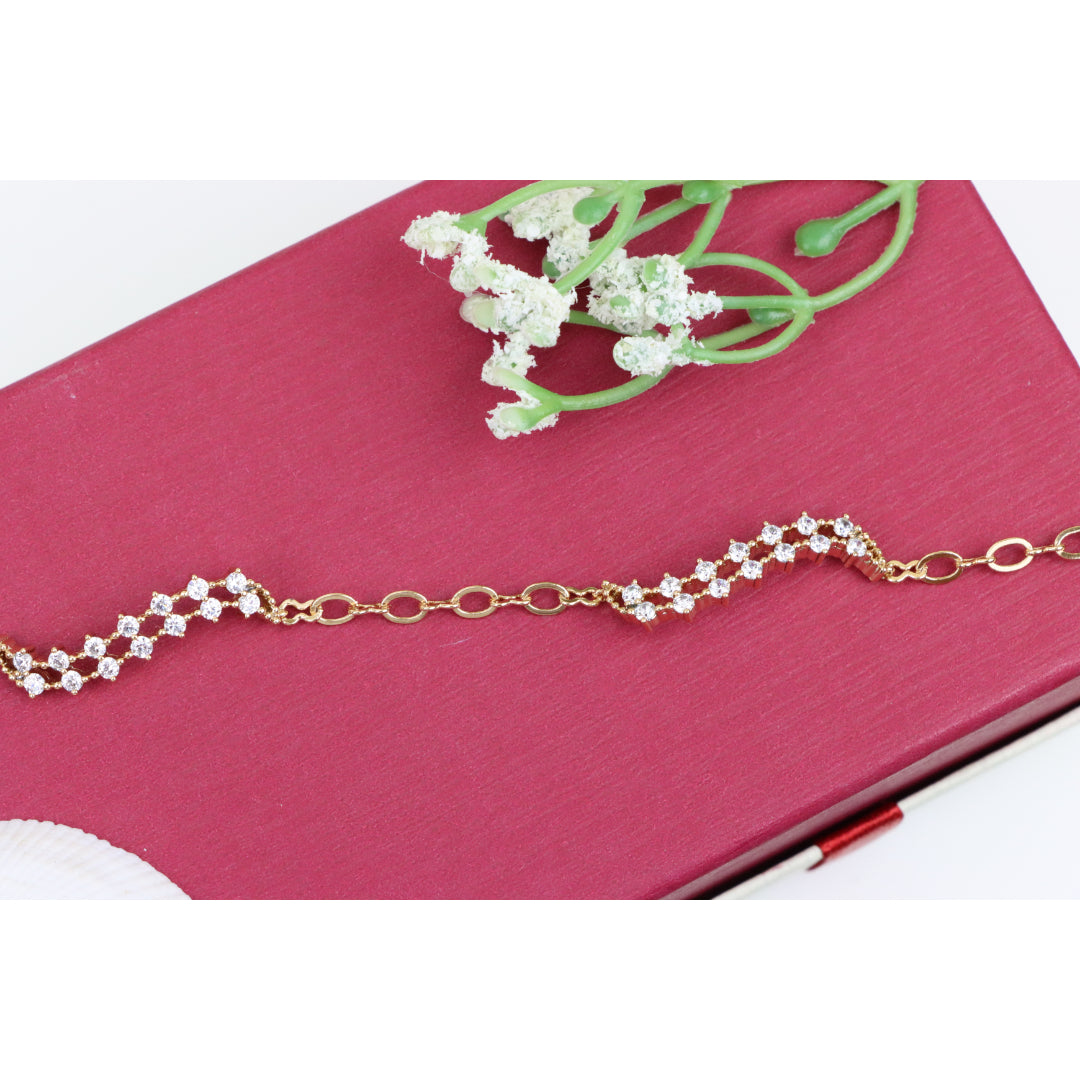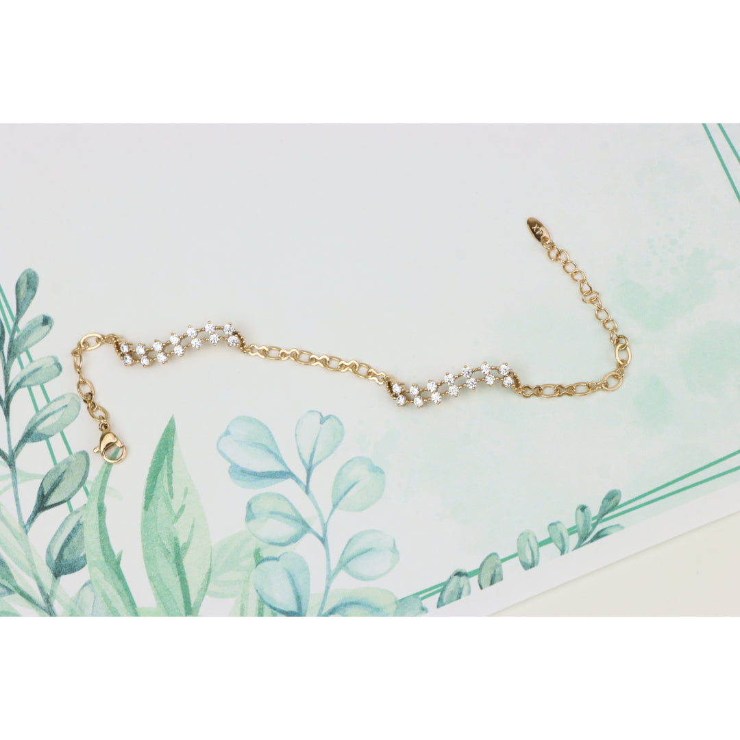 Elegant Wavy Crystal Design Rose Gold Bracelet for Women, XPBL0758