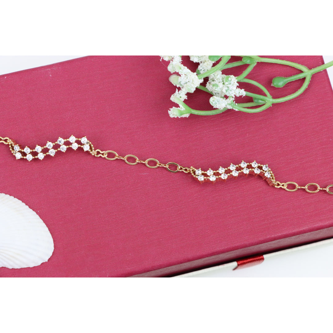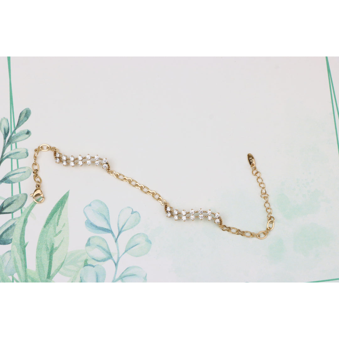 Elegant Wavy Crystal Design Rose Gold Bracelet for Women, XPBL0758 (2076-7)