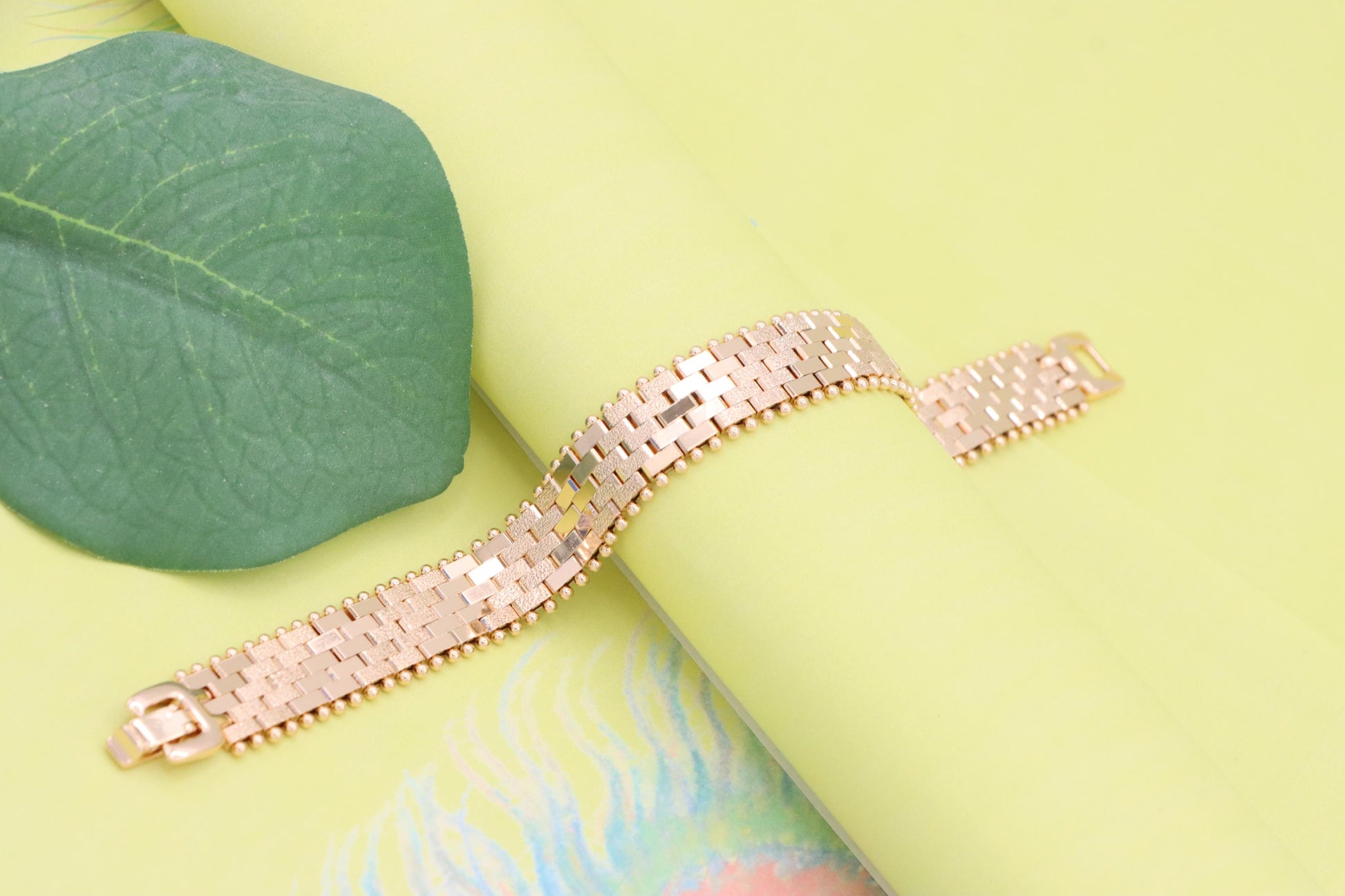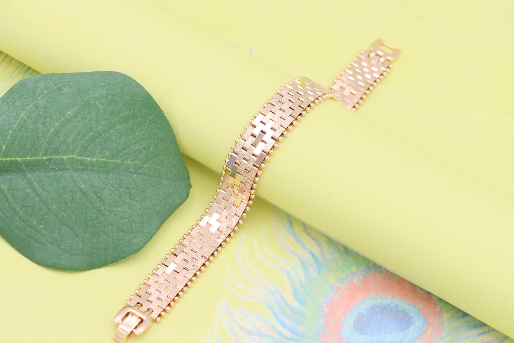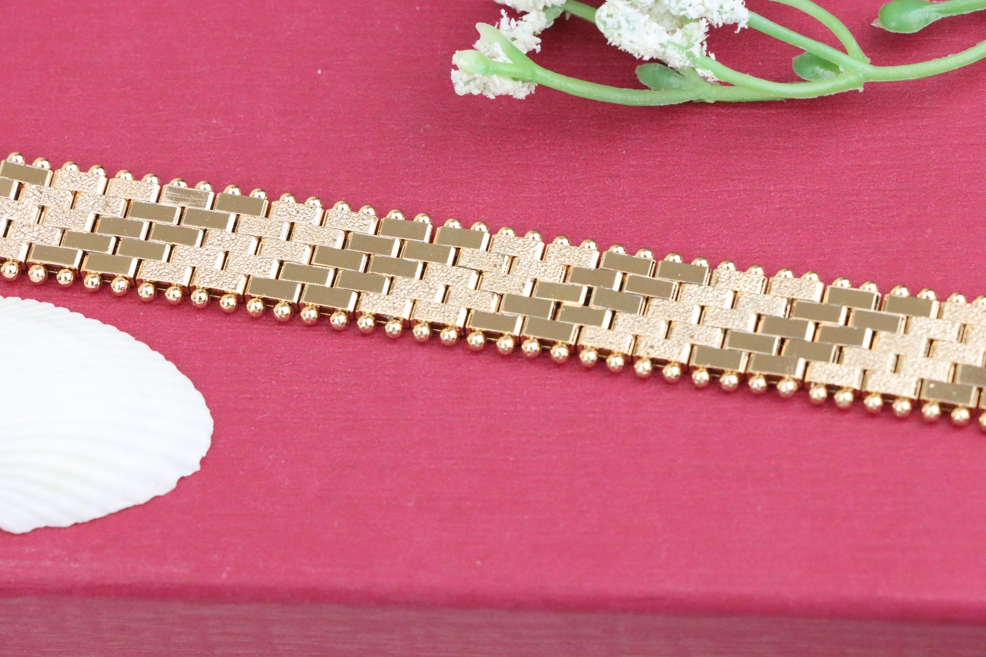 Chic and luxurious bracelet crafted in rose gold finish with a modern wide link pattern and intricate beaded edging for a standout look.
