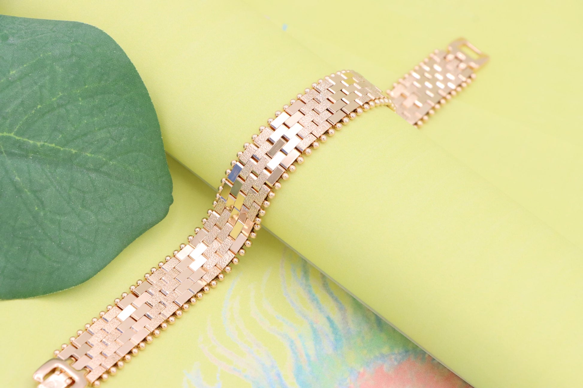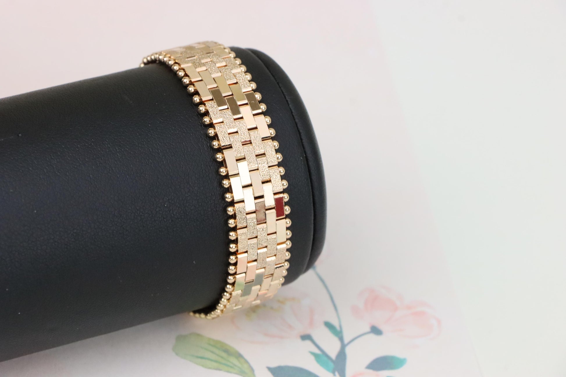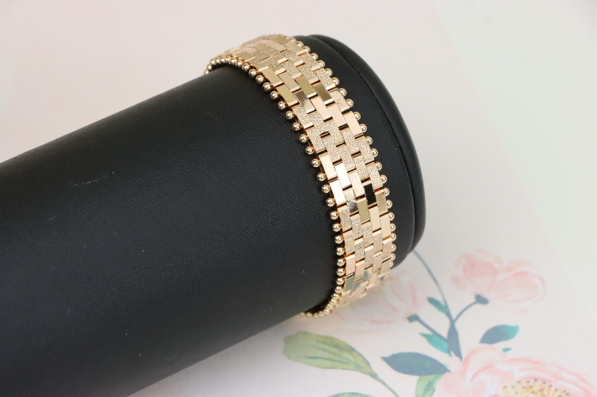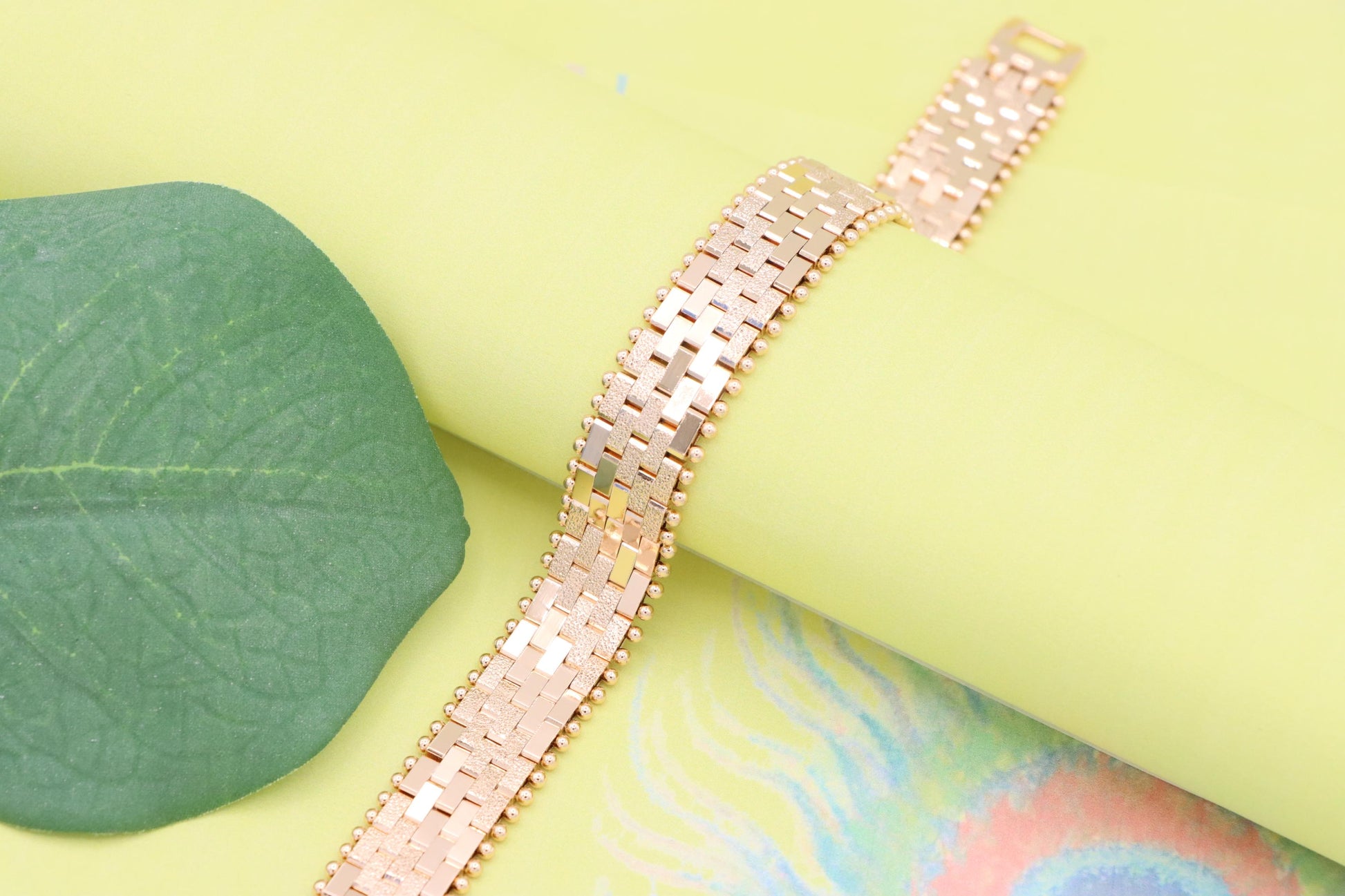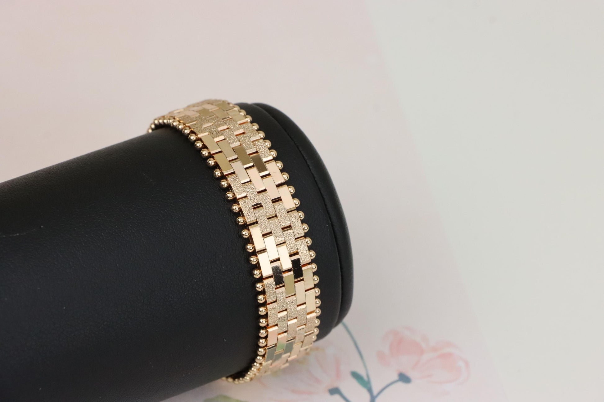 Elegant Wide Link Rose Gold Bracelet with Beaded Edge, XPBL1112
