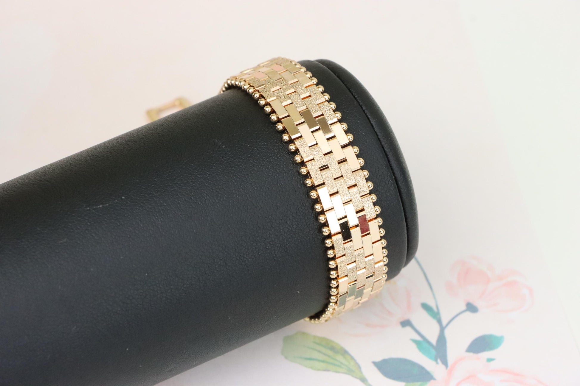 Elegant Wide Link Rose Gold Bracelet with Beaded Edge, XPBL1112 (2112-1)