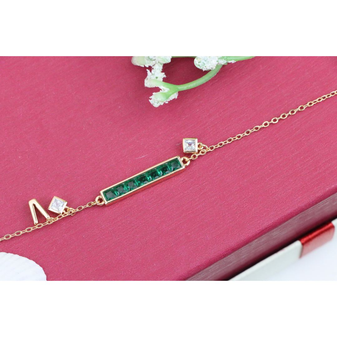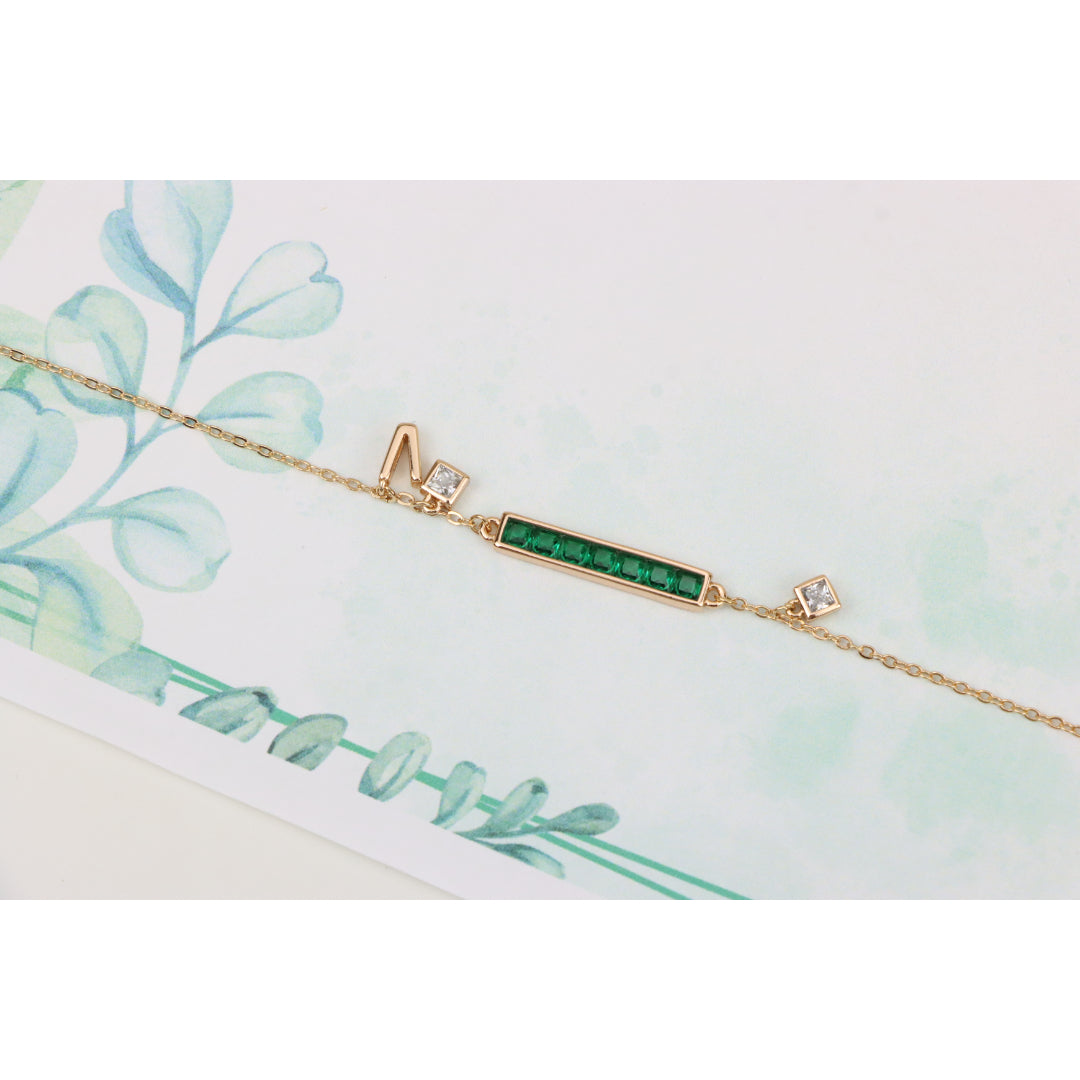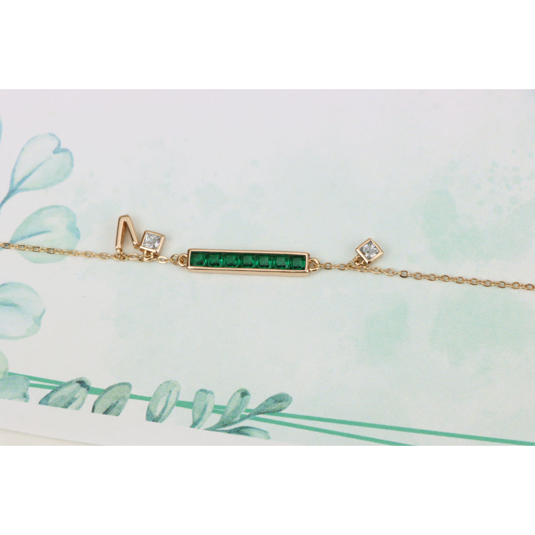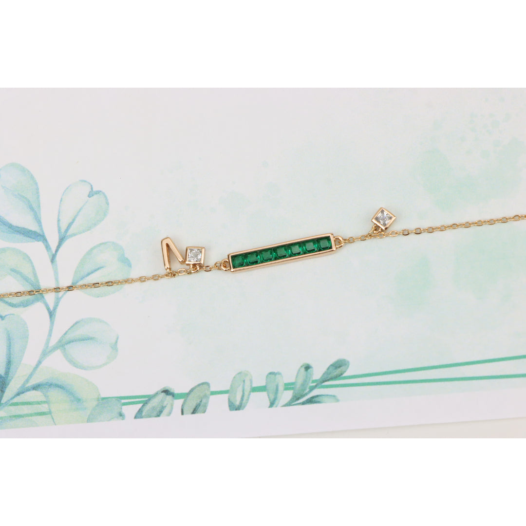 Emerald Green Bar Charm Rose Gold Bracelet with CZ Accents, XPBL0806