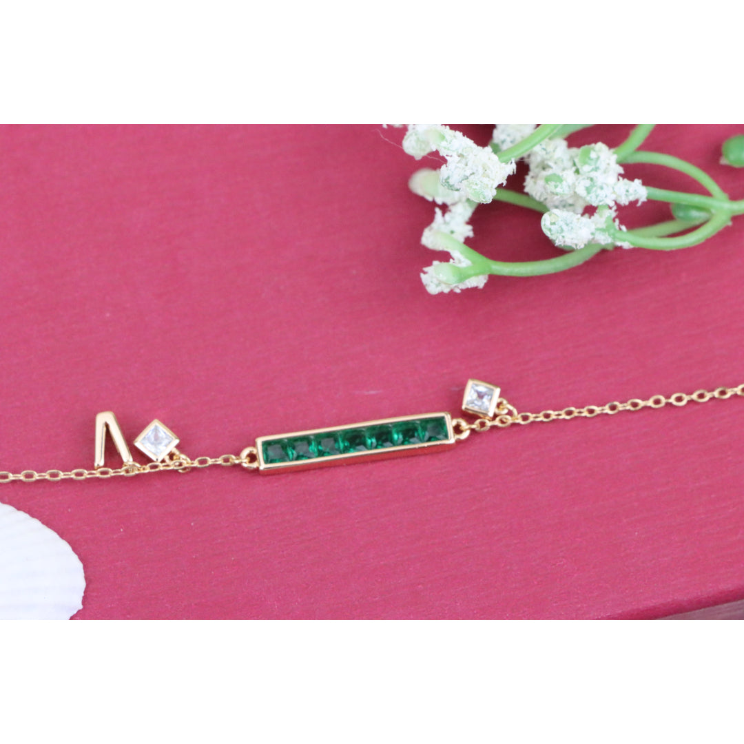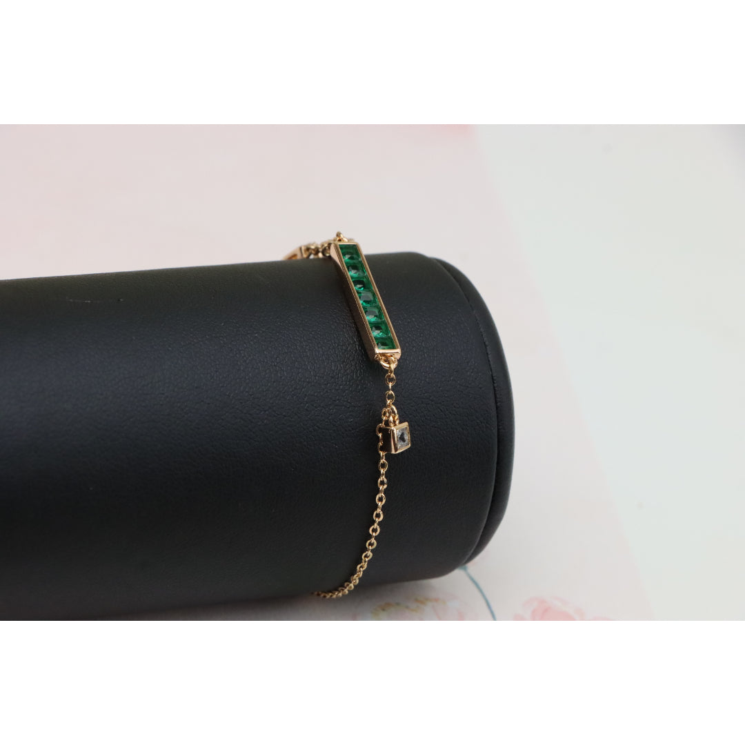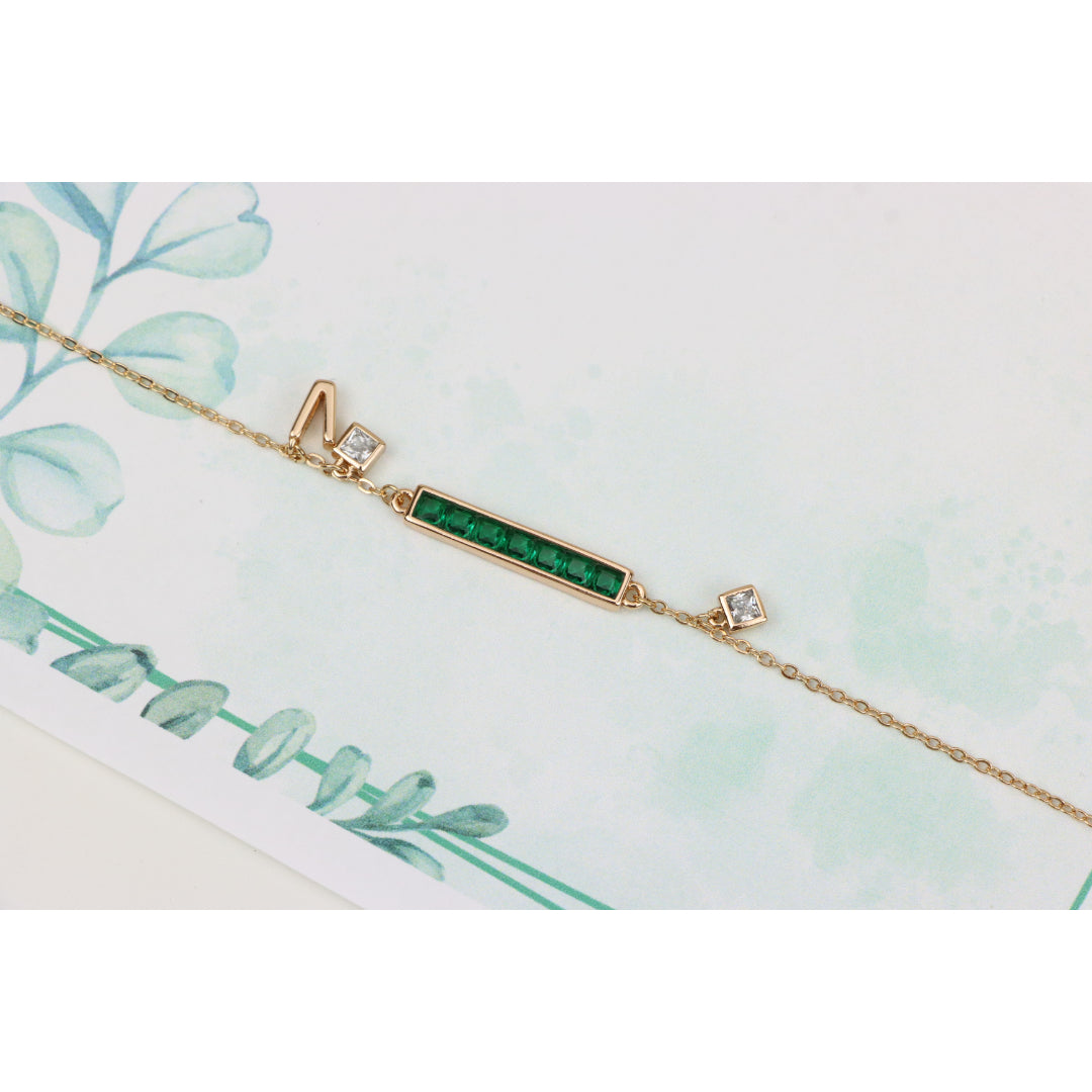 Emerald Green Bar Charm Rose Gold Bracelet with CZ Accents, XPBL0806
