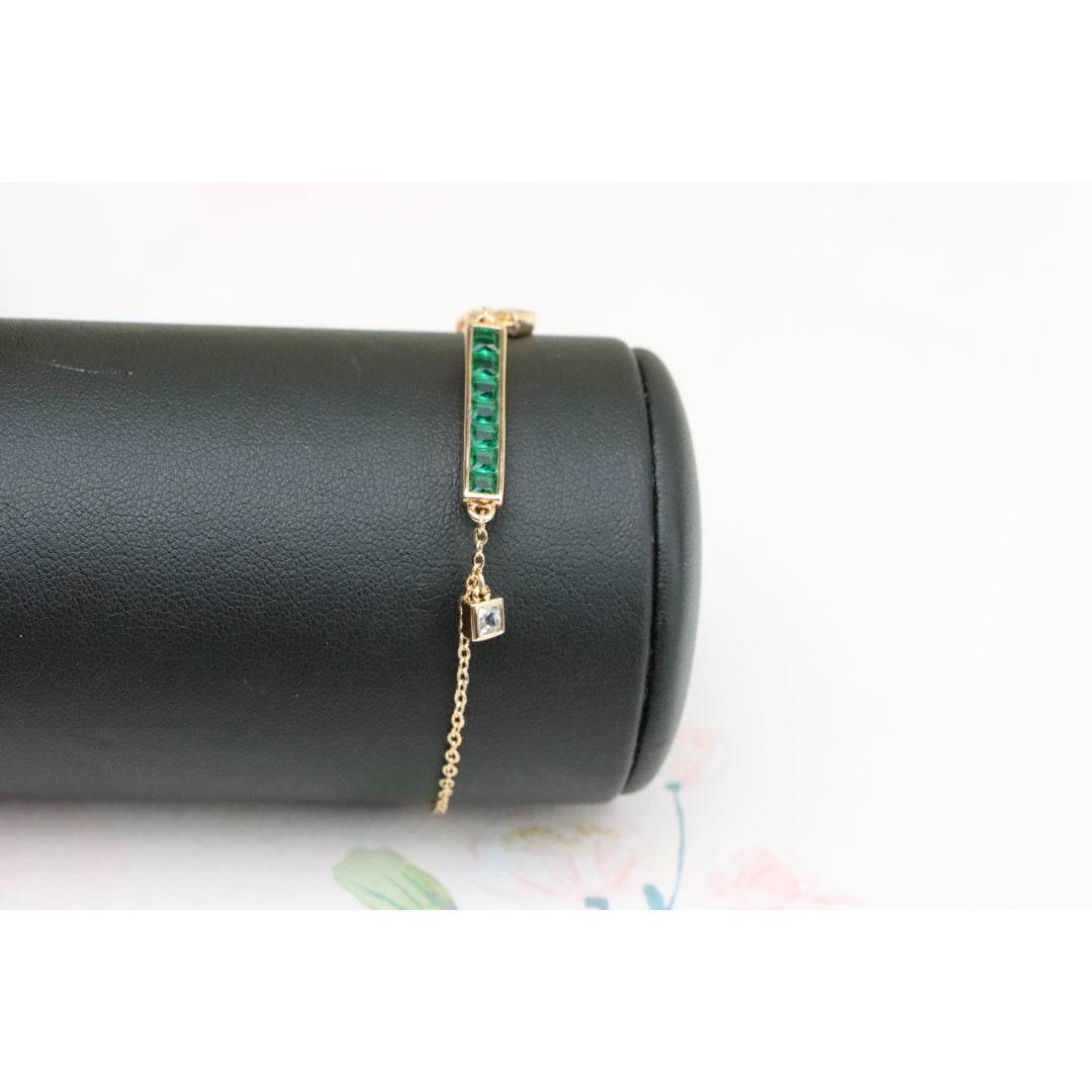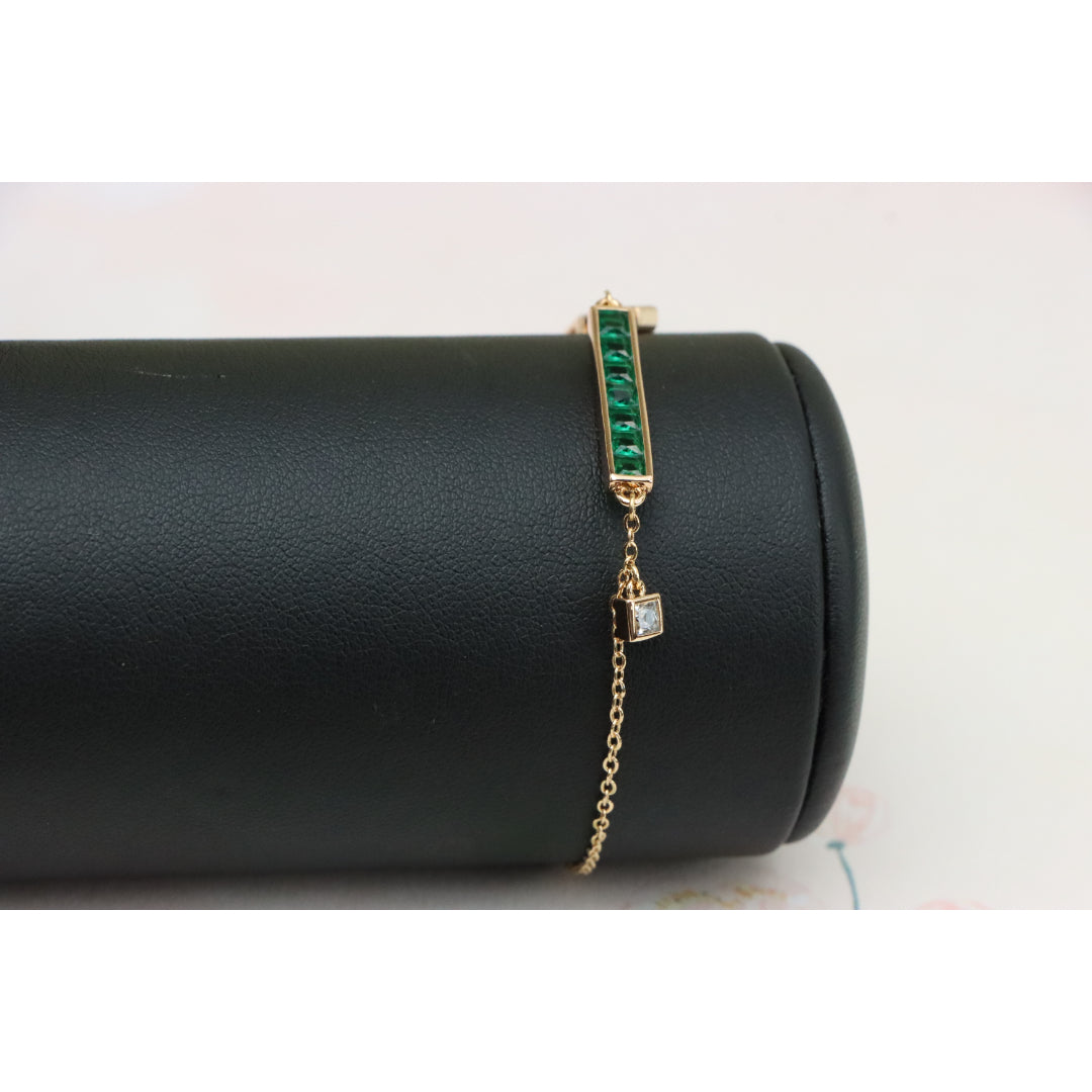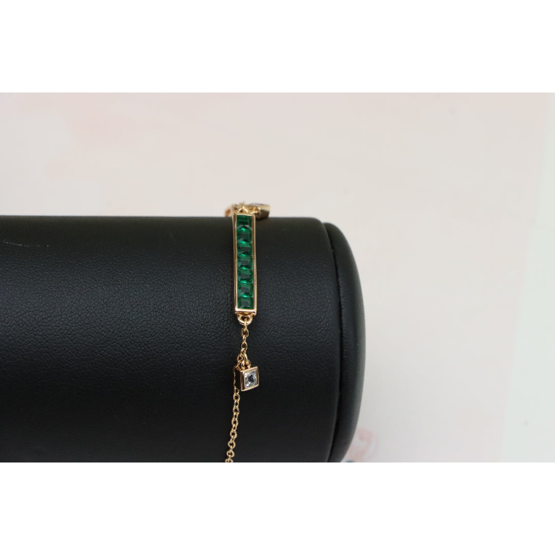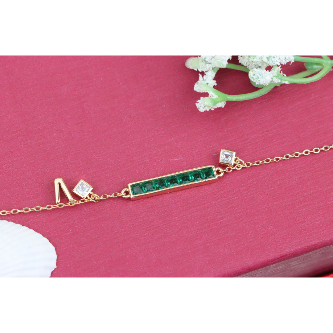 Emerald Green Bar Charm Rose Gold Bracelet with CZ Accents, XPBL0806