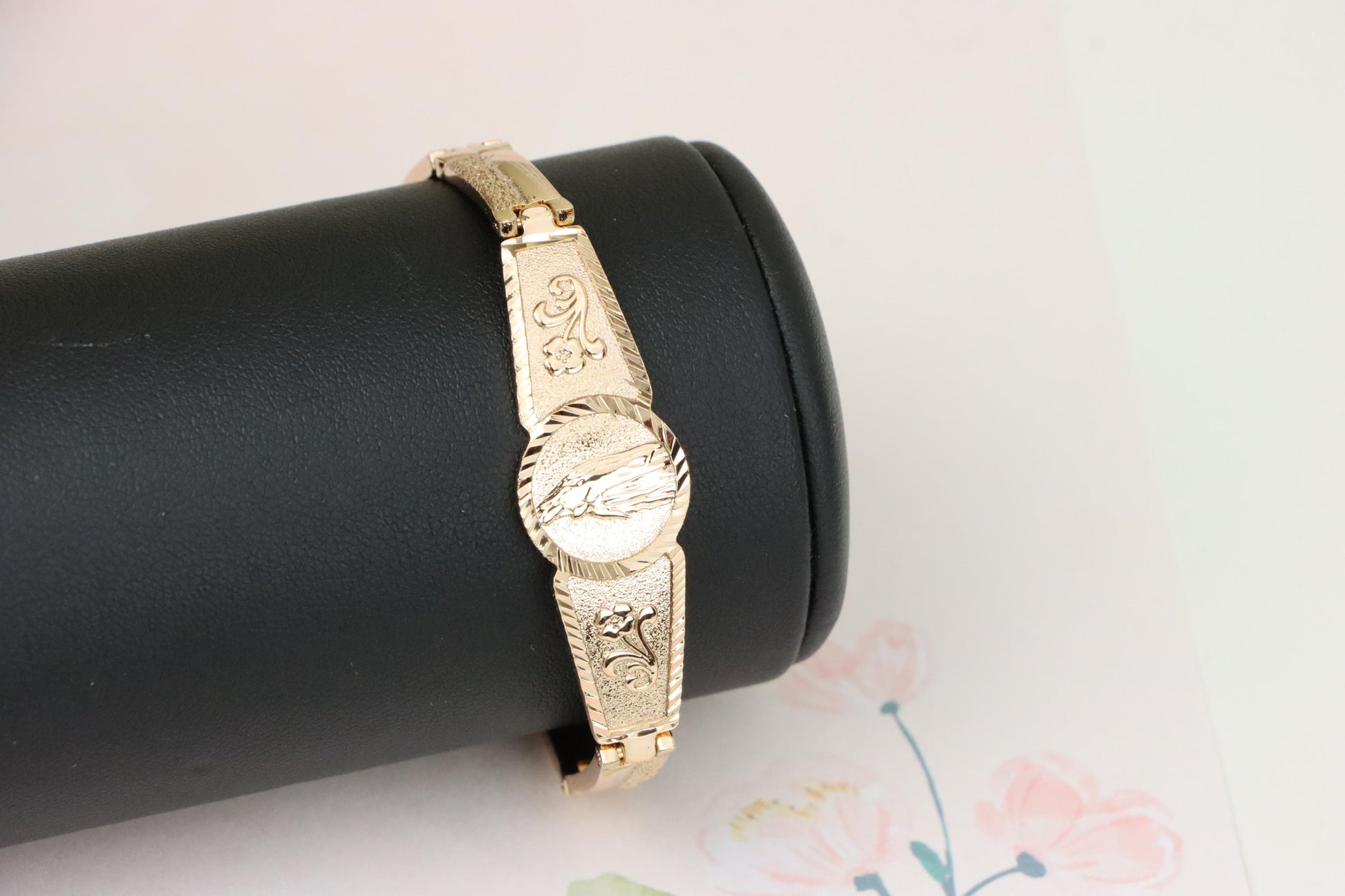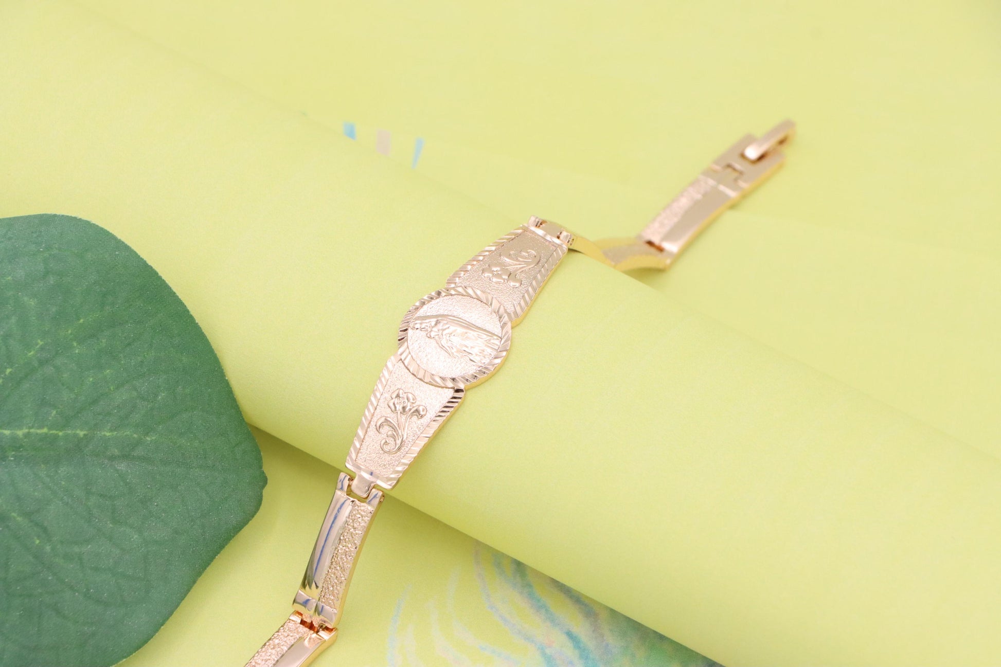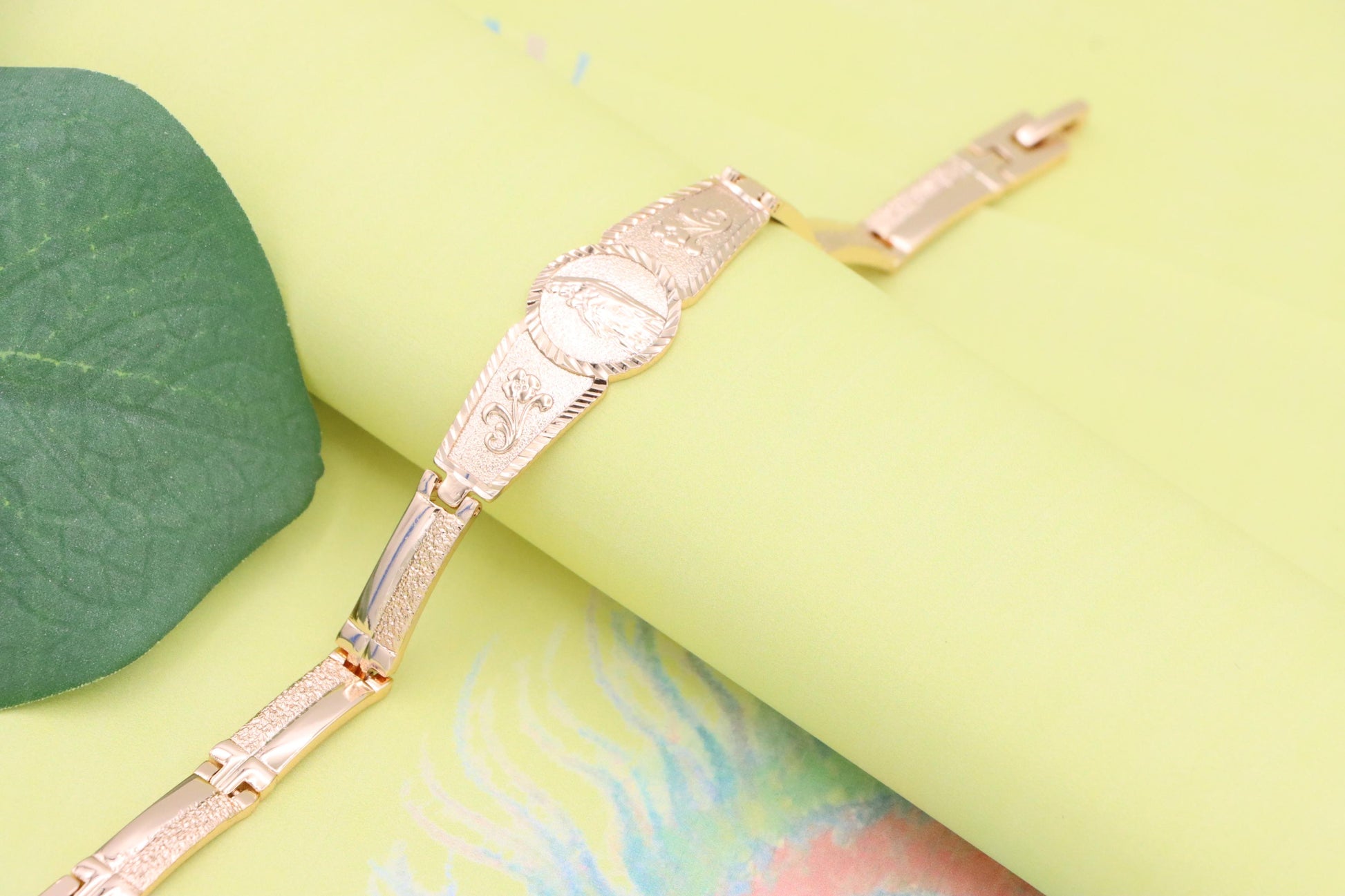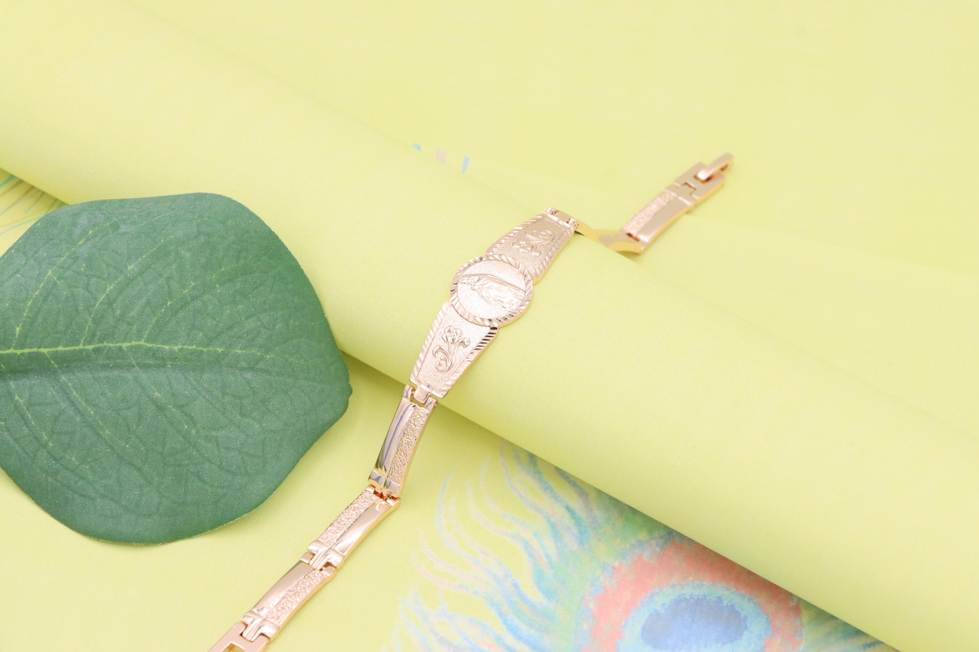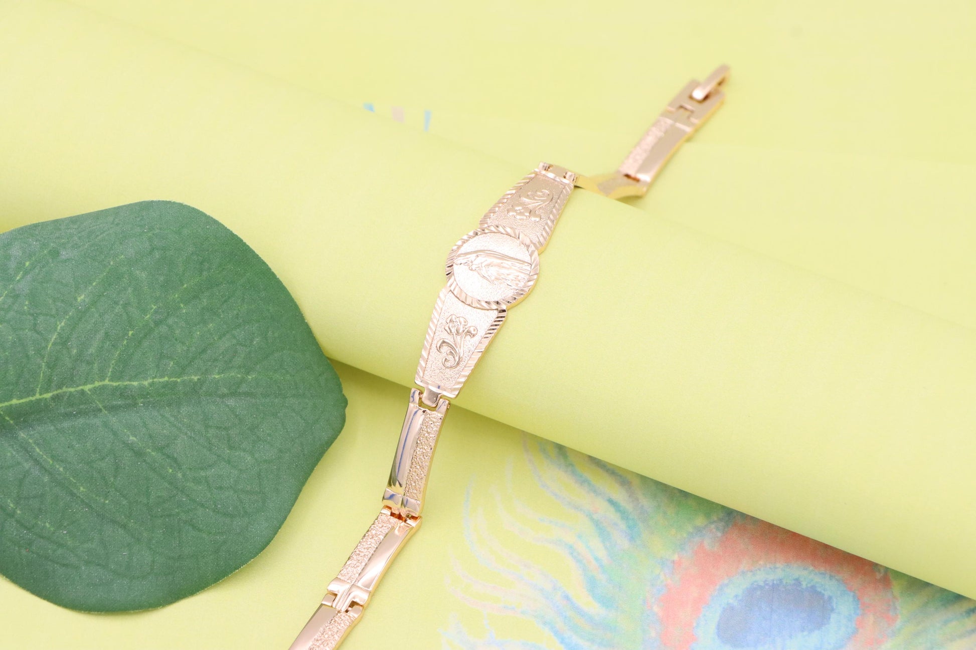 Engraved Rose Gold Bracelet with Floral and Oval Medallion Design, XPBL1114