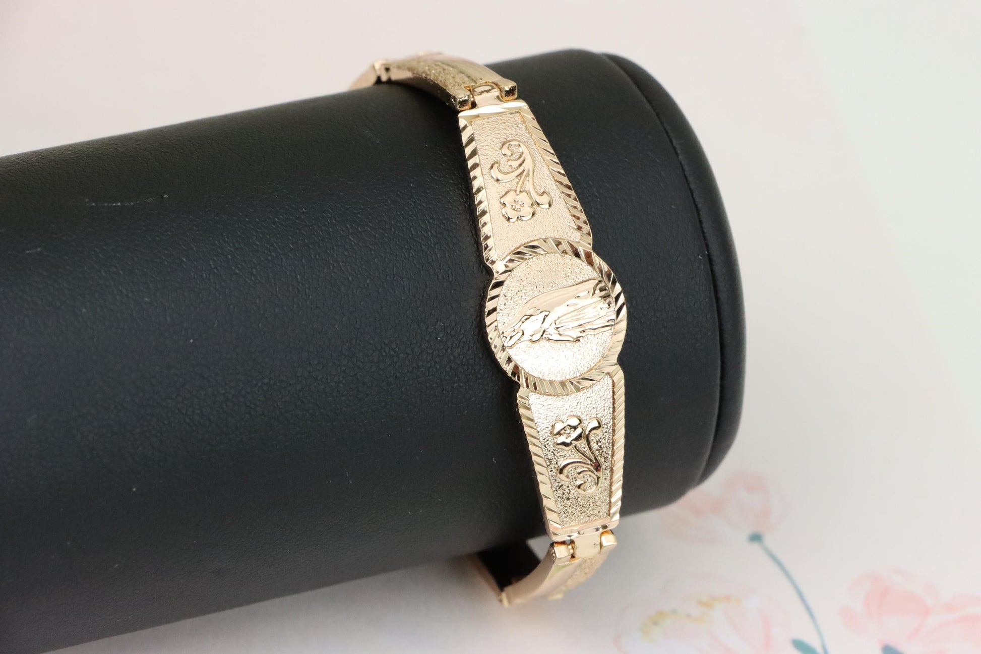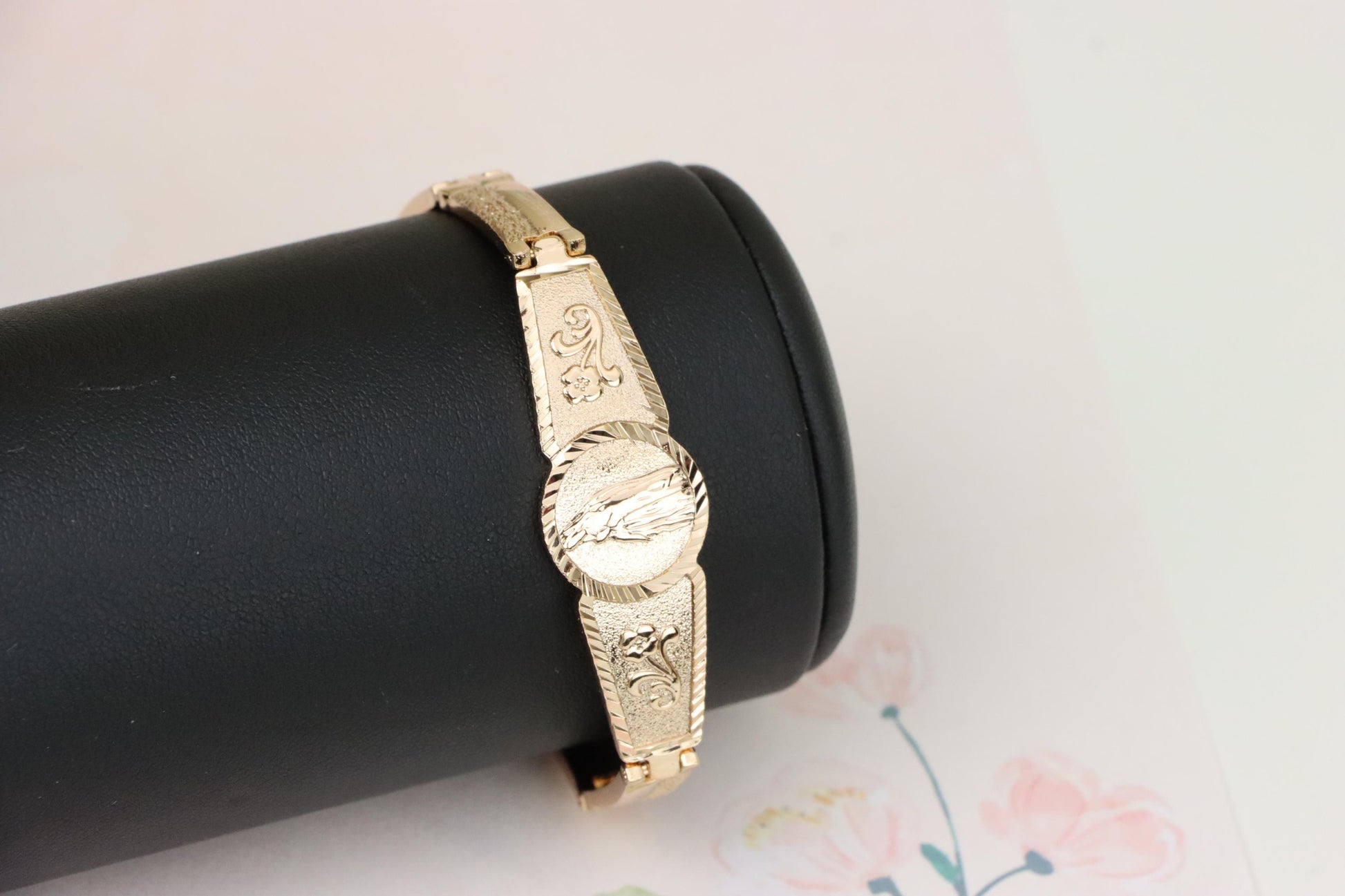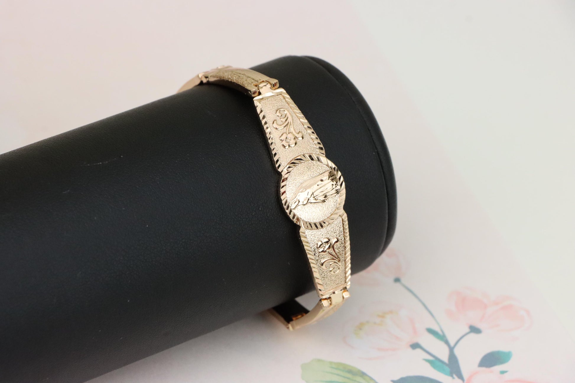 Engraved Rose Gold Bracelet with Floral and Oval Medallion Design, XPBL1114 (2112-3)