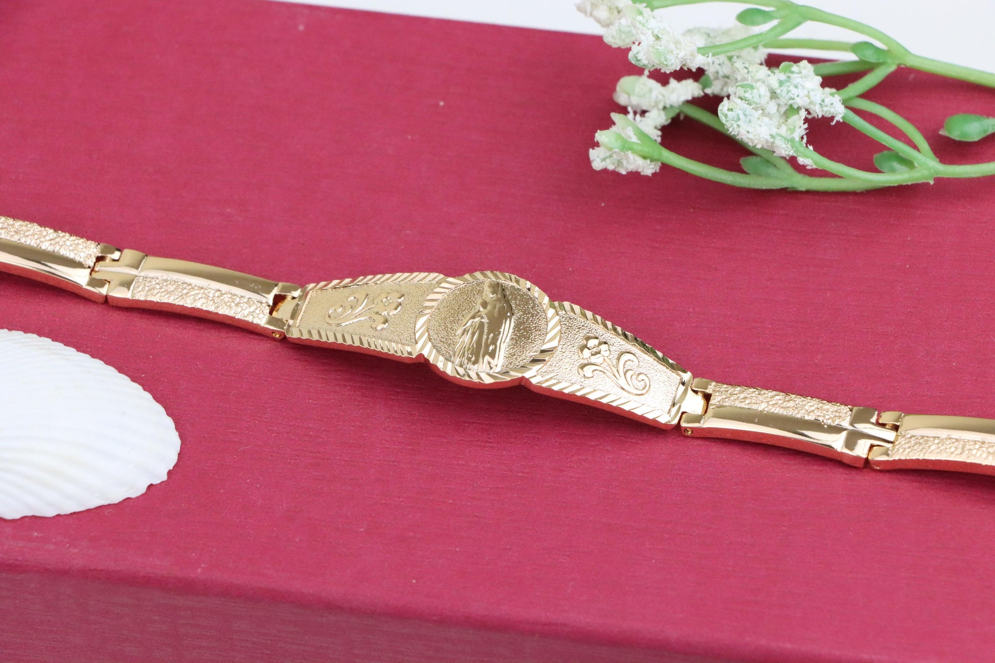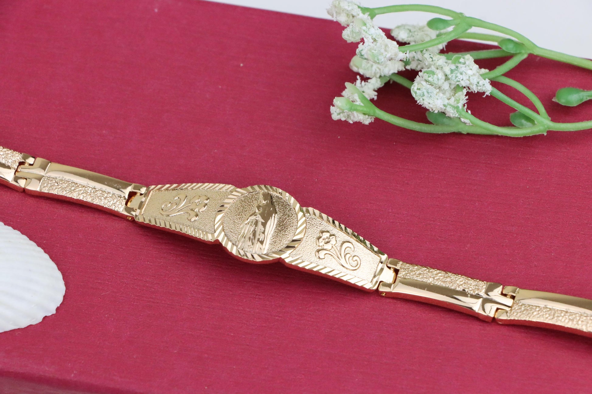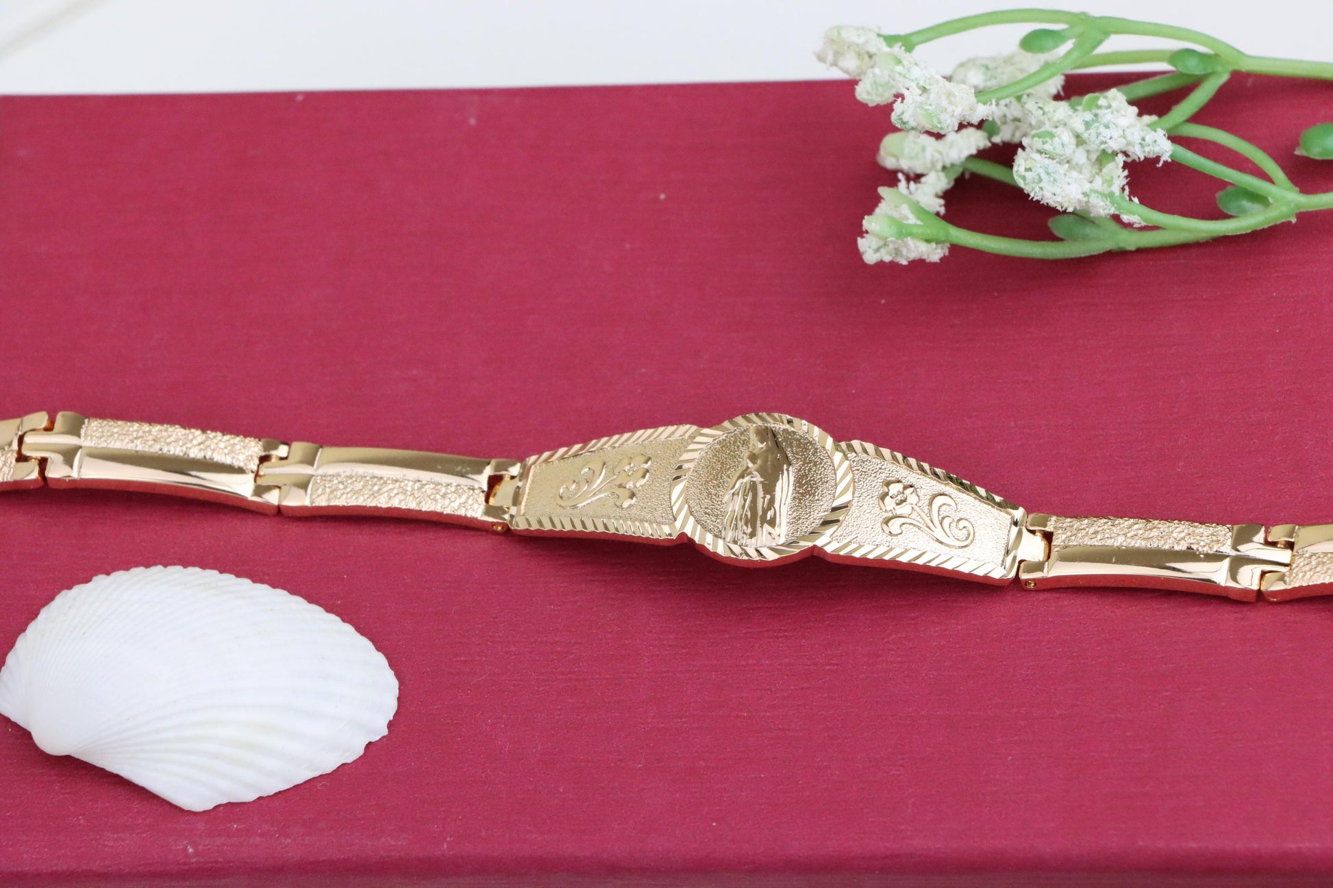 Engraved Rose Gold Bracelet with Floral and Oval Medallion Design, XPBL1114 (2112-3)