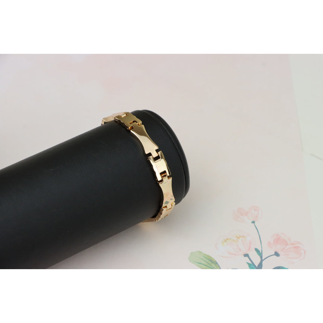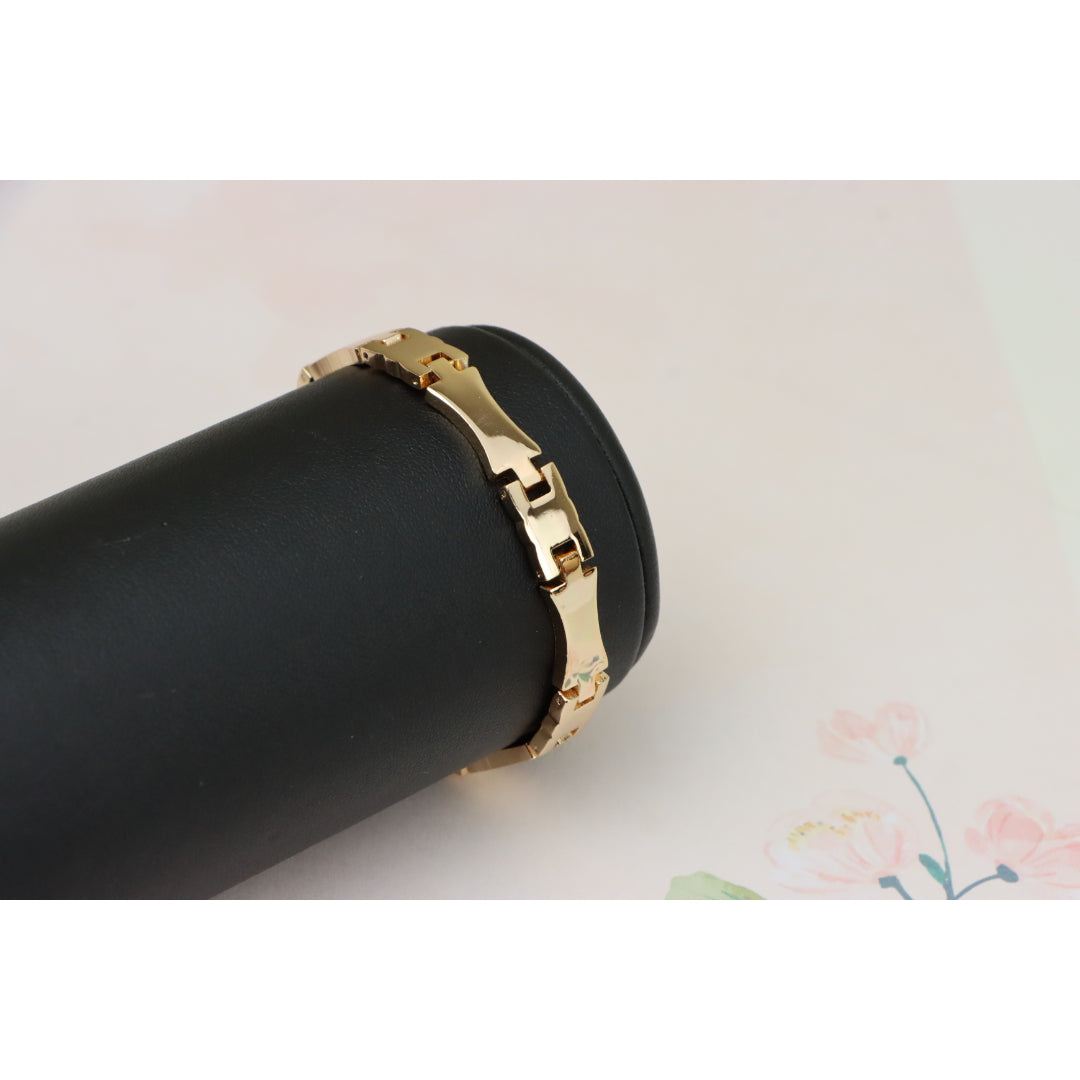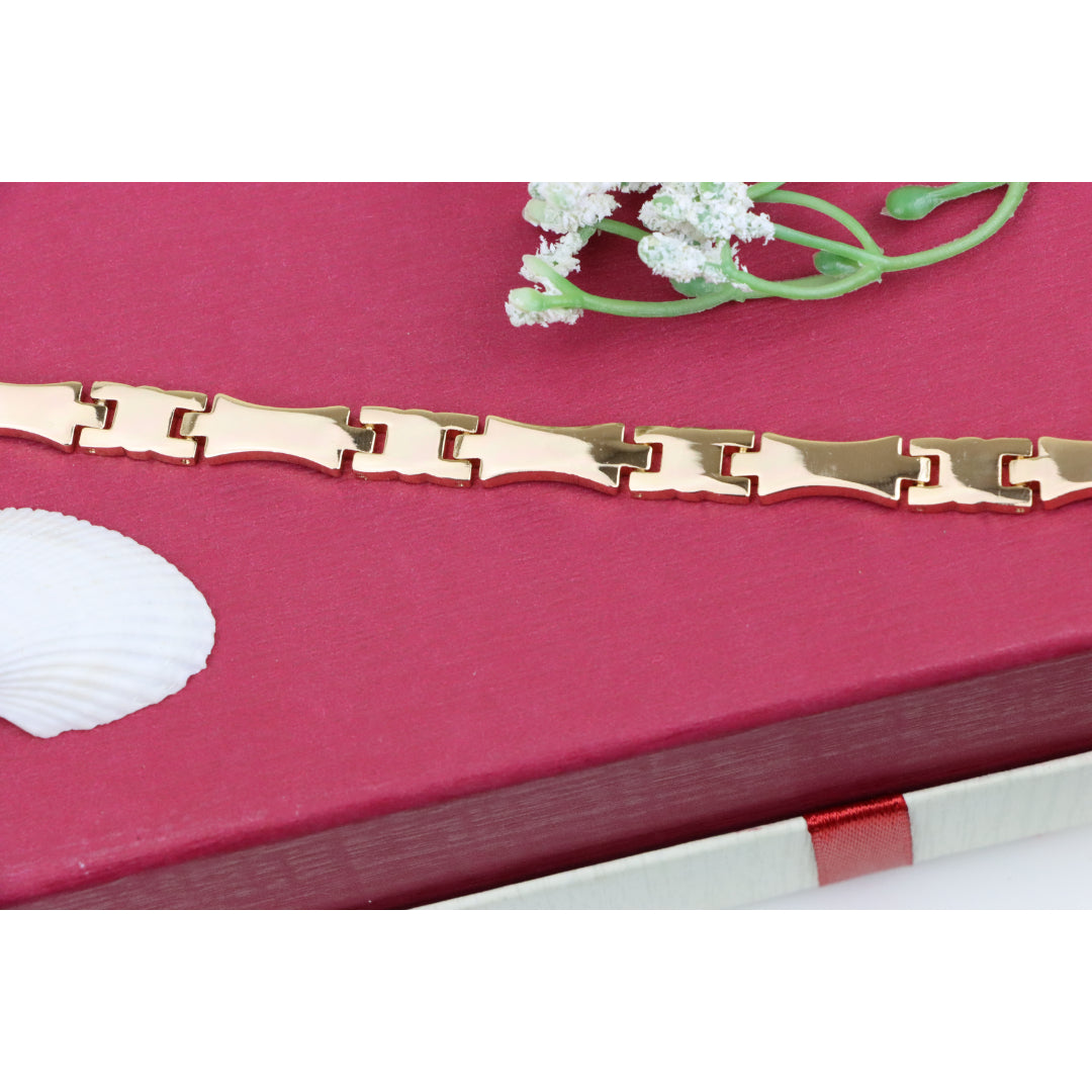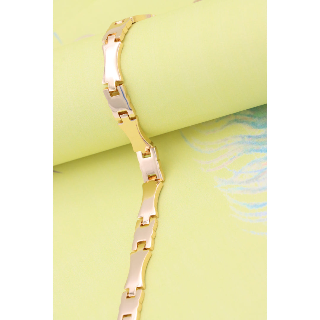 Elegant rose gold bracelet crafted from high-quality brass and finished with a luxurious gold plating. The contemporary curved link style makes it perfect for daily elegance or evening charm.