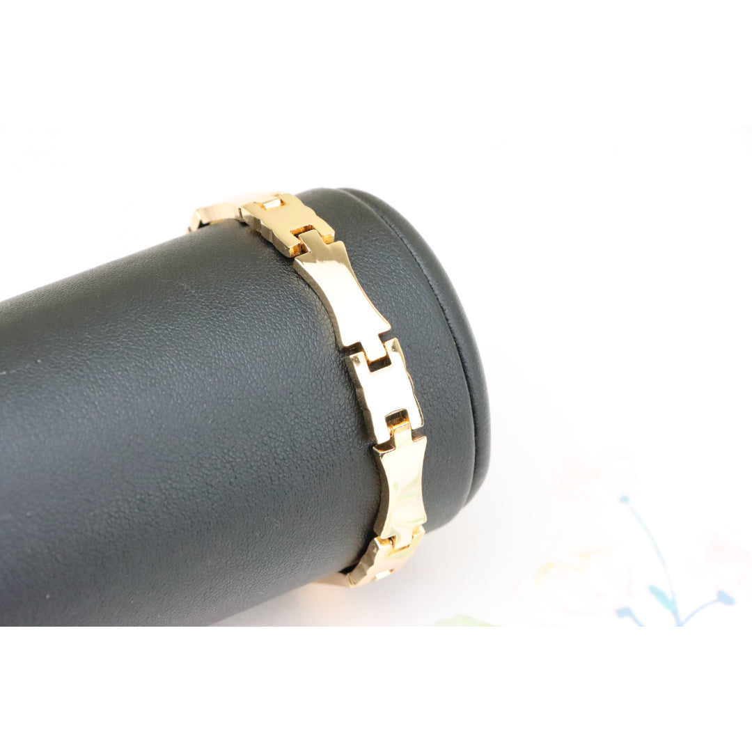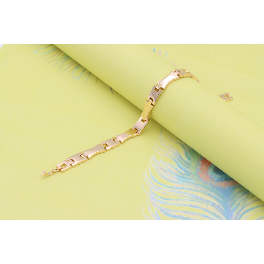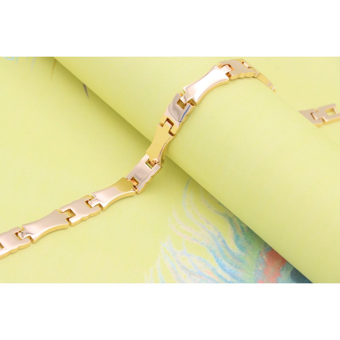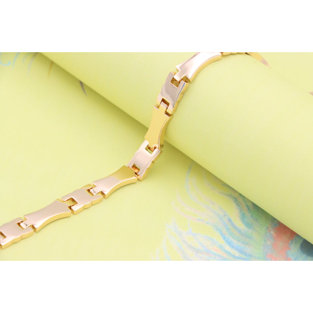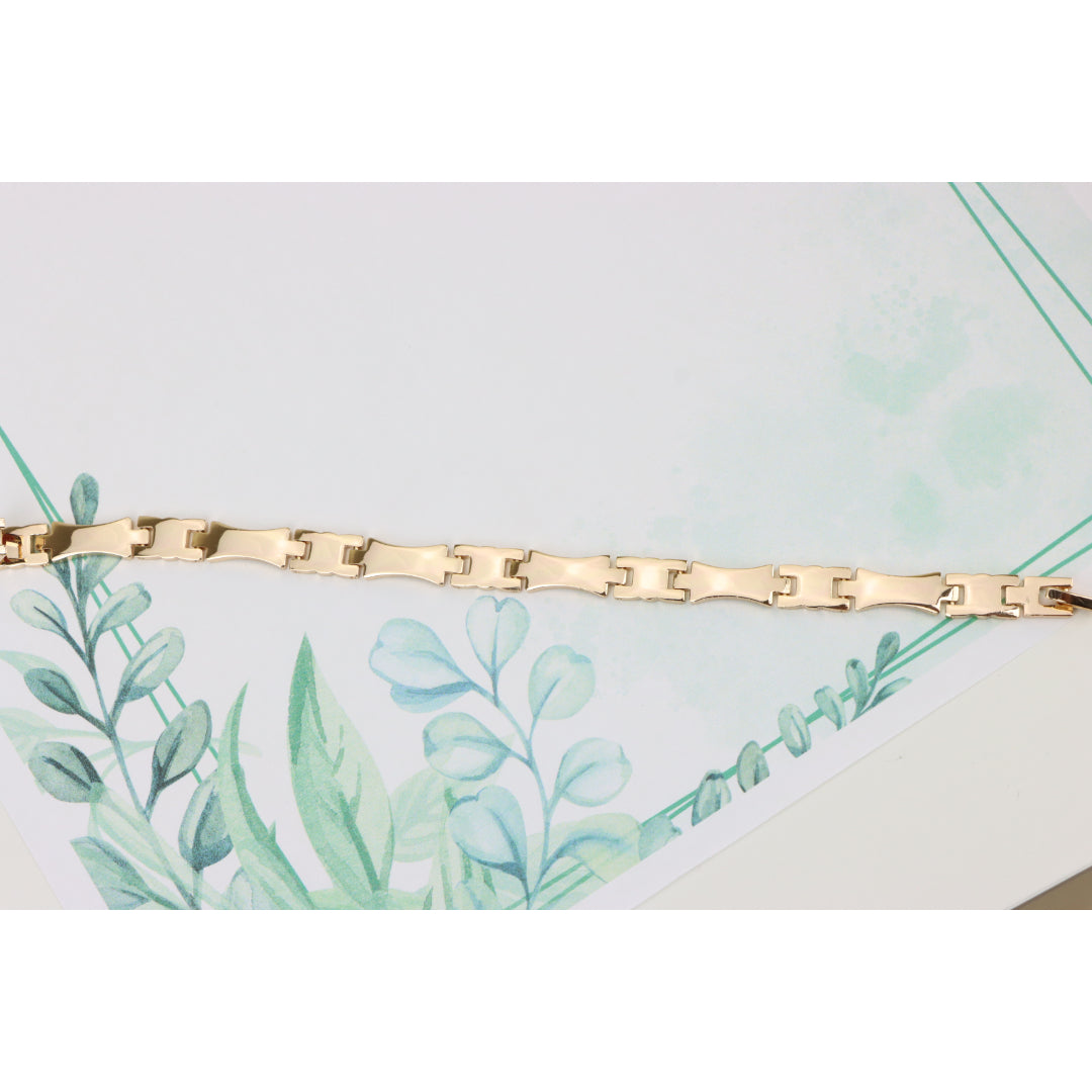 Elegant rose gold bracelet crafted from high-quality brass and finished with a luxurious gold plating. The contemporary curved link style makes it perfect for daily elegance or evening charm.