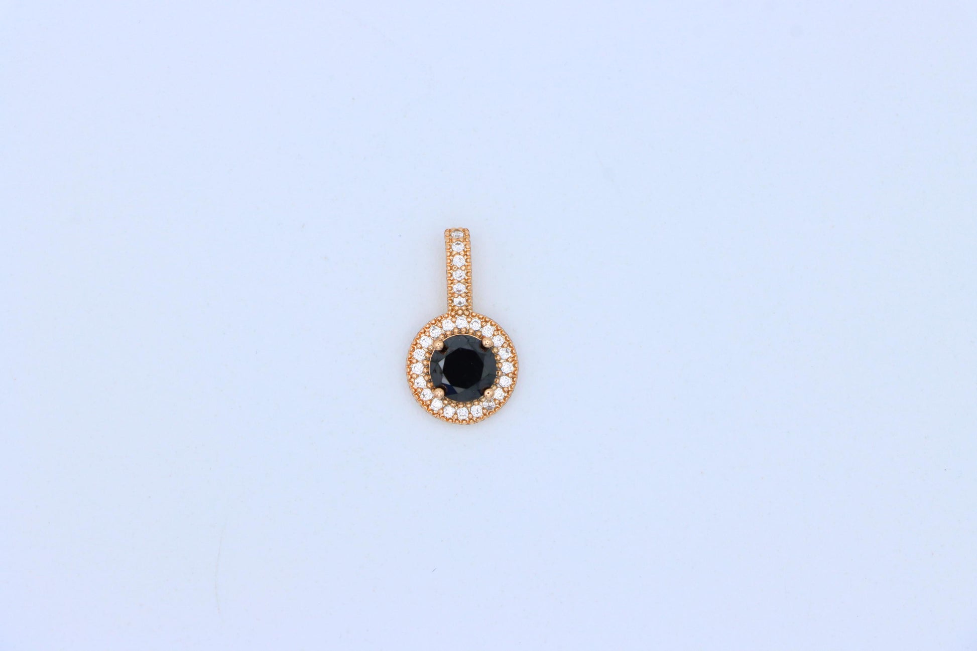 Gold Plated Black Round Pendant with Crystal Halo for Women, XPPT1740 (2151-4)