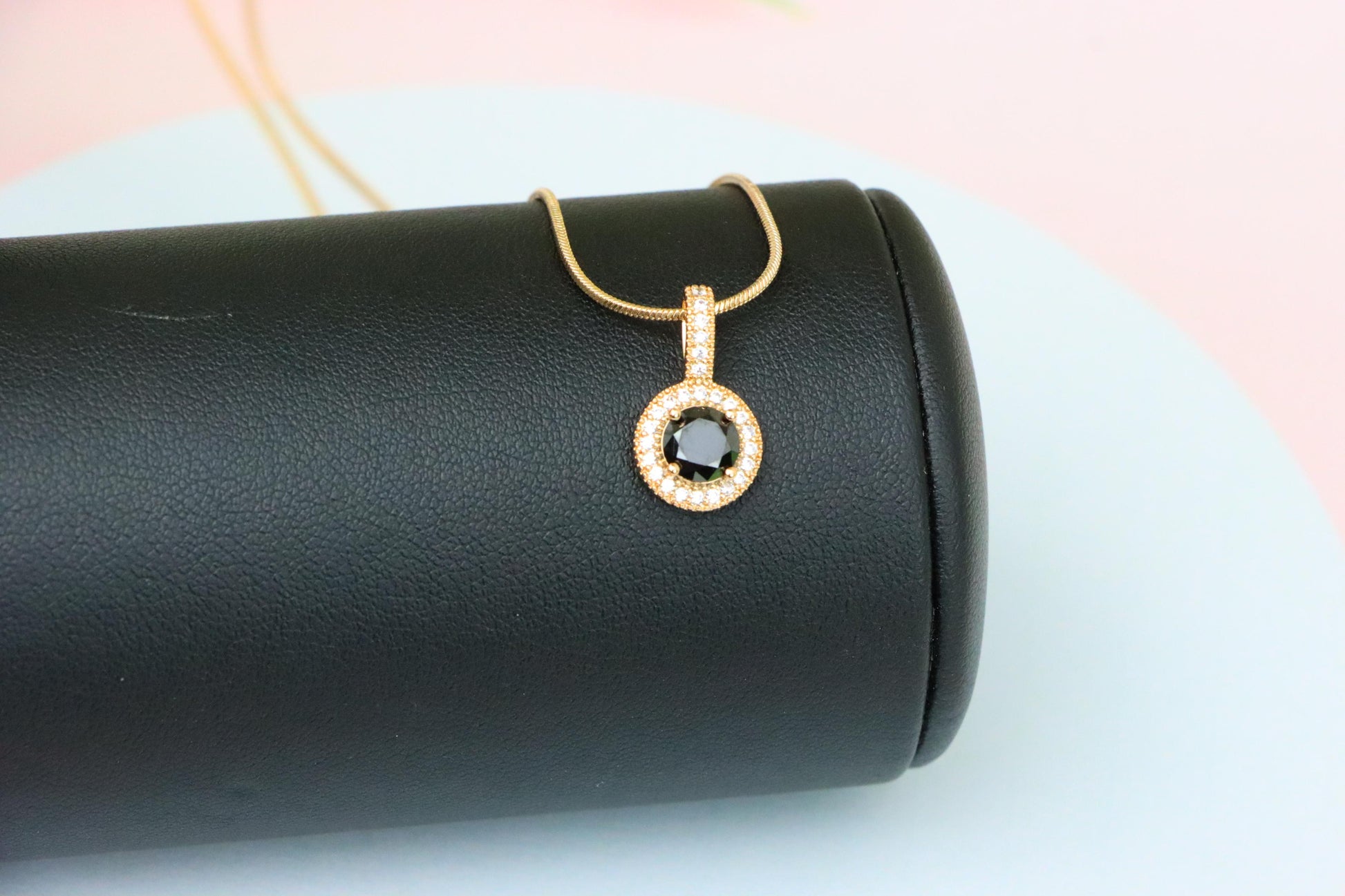 Gold Plated Black Round Pendant with Crystal Halo for Women, XPPT1740