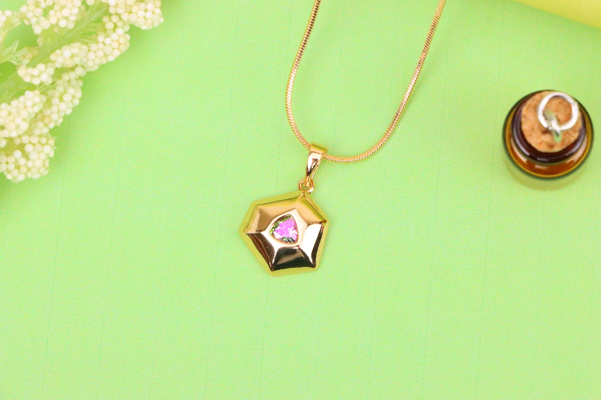 Gold-Plated Hexagon Pendant with Iridescent Rainbow Center Stone, XPPT1750