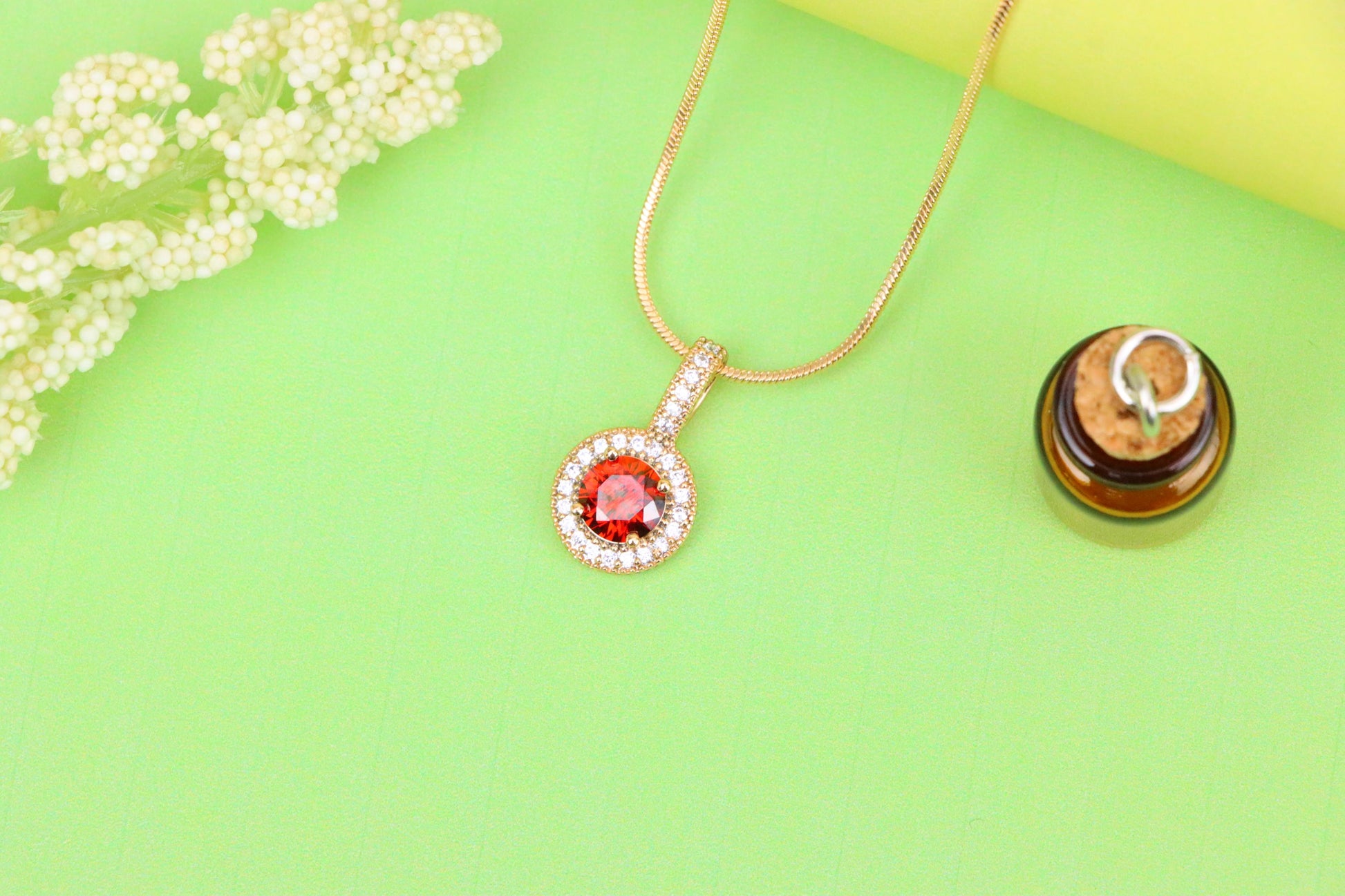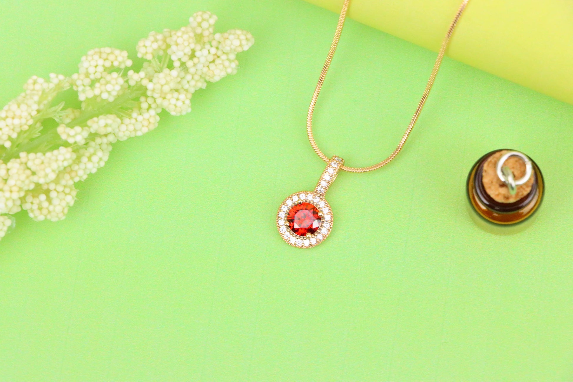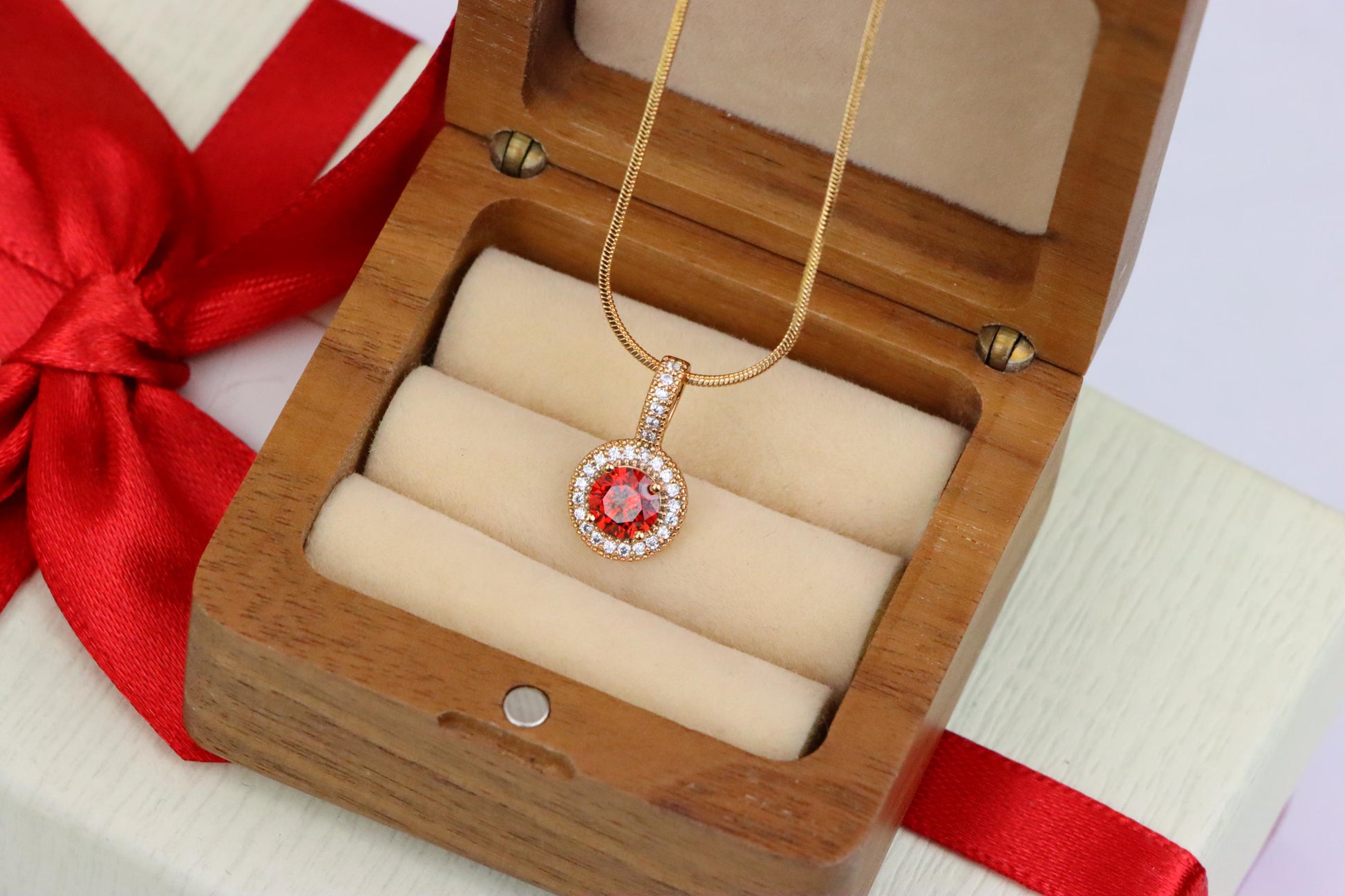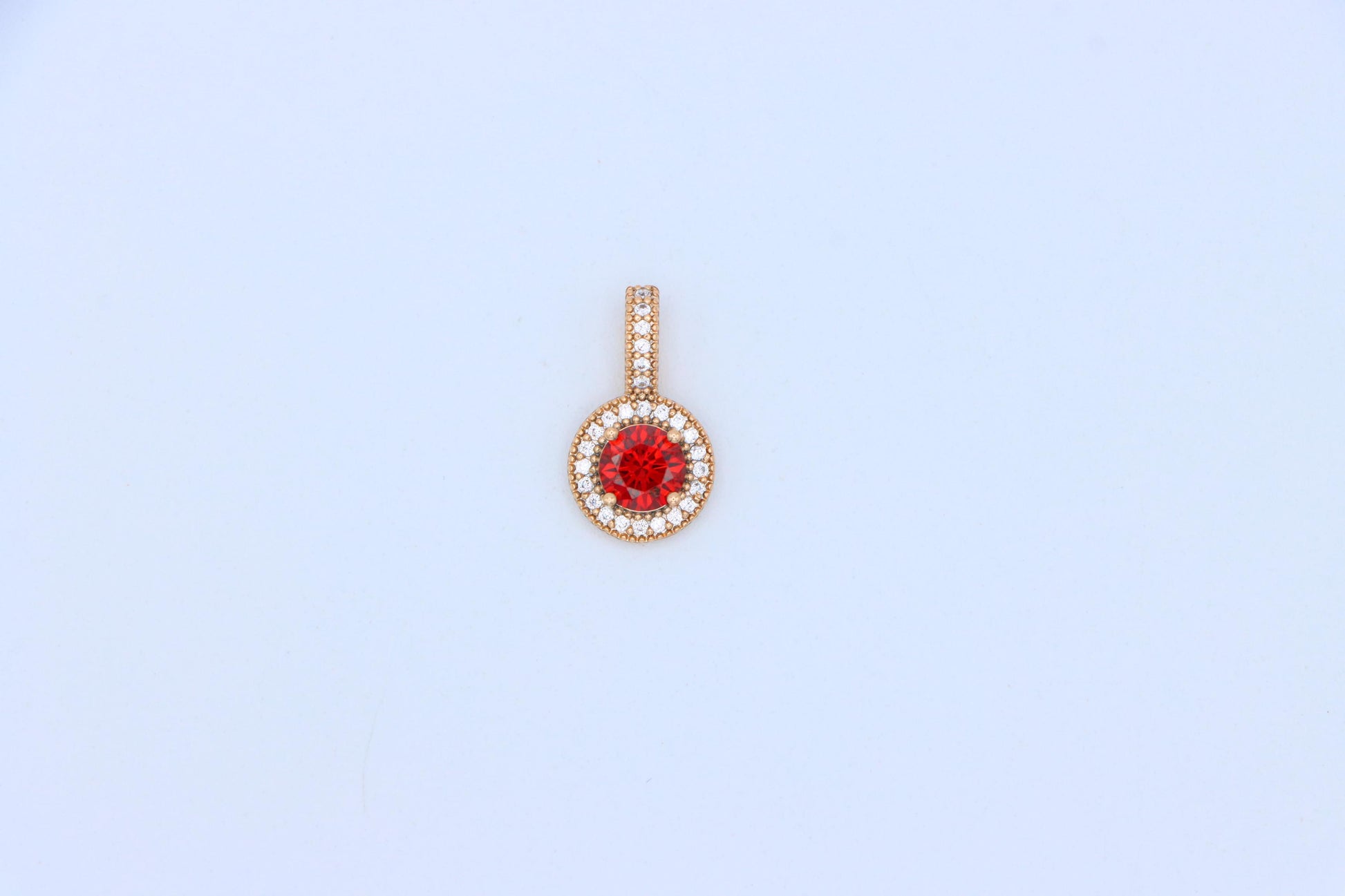 Gold Plated Round Red Stone Pendant with Halo CZ Accent Design, XPPT1742