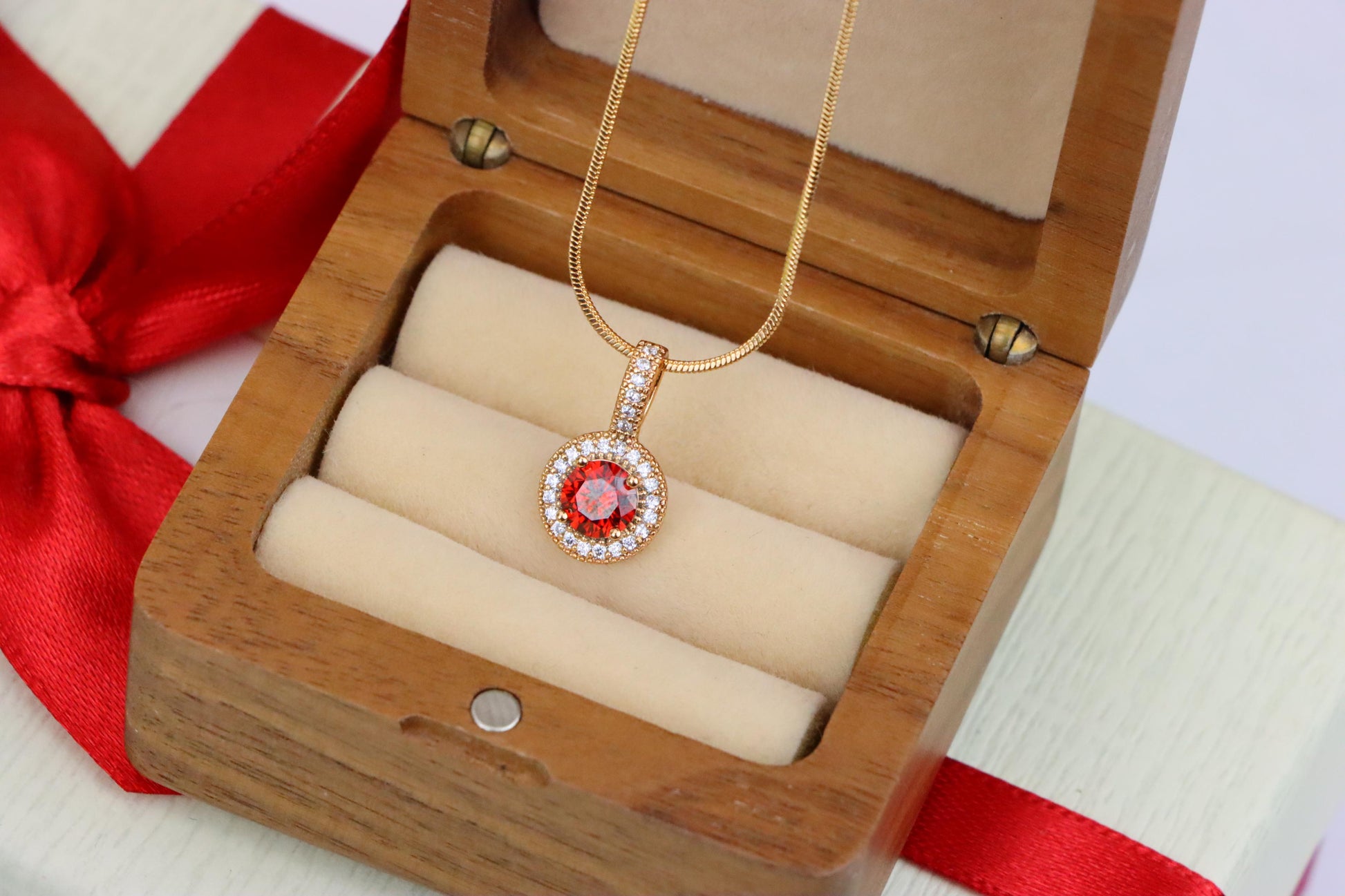 ✔️ Brilliant red center stone adds bold elegance to your look