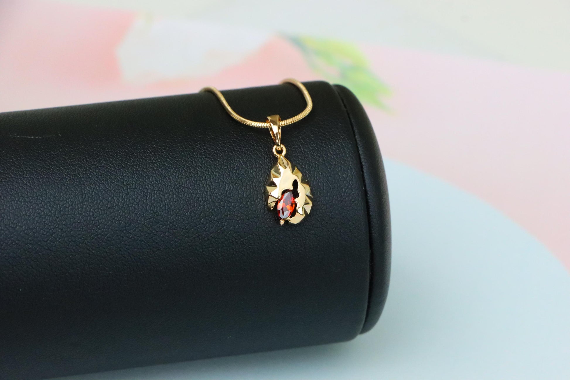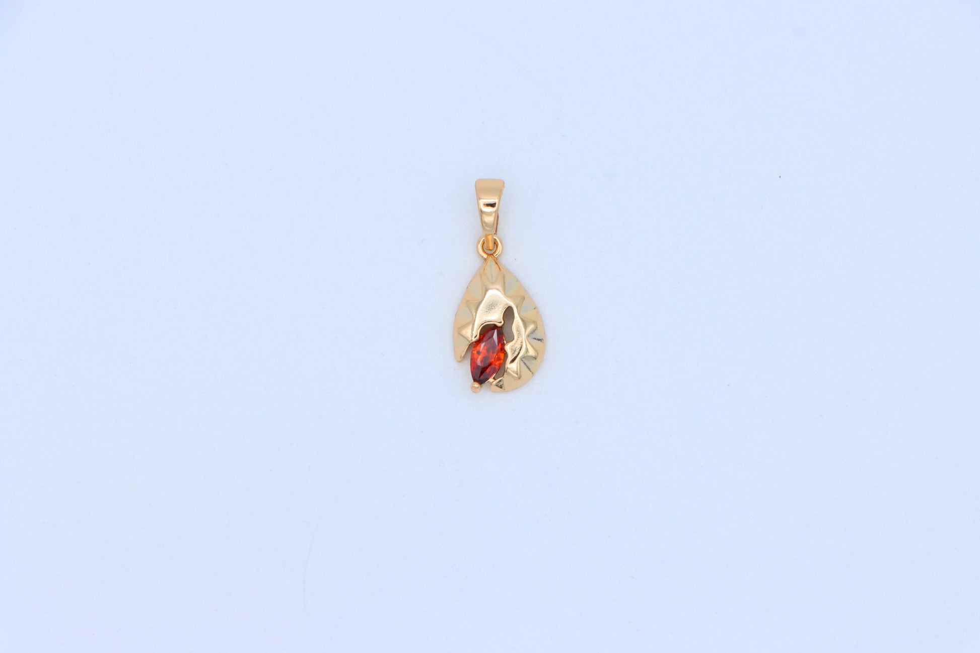 Gold Teardrop Pendant with Marquise Red Stone and Textured Design, XPPT1722 (2150-9)