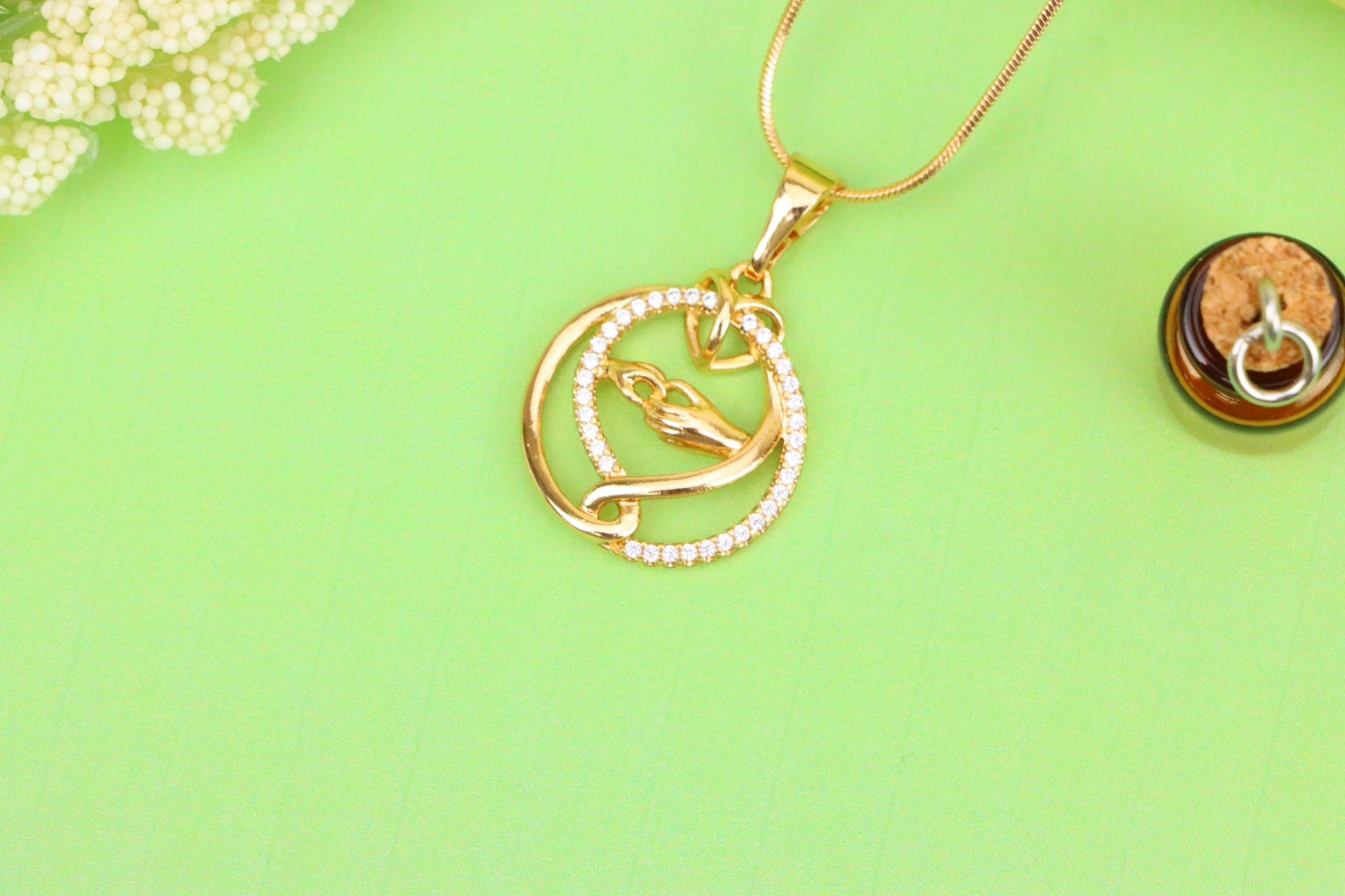 Graceful Hand & Heart Rose Gold Pendant – Sparkling Circle Design, XPPT1554