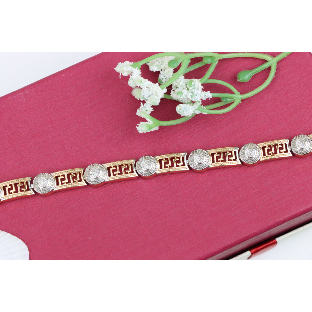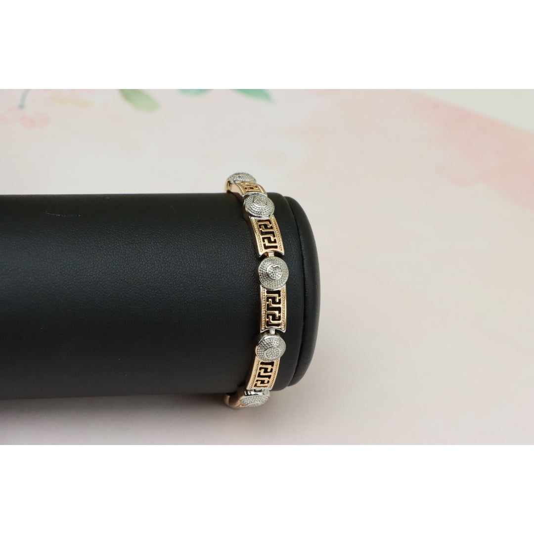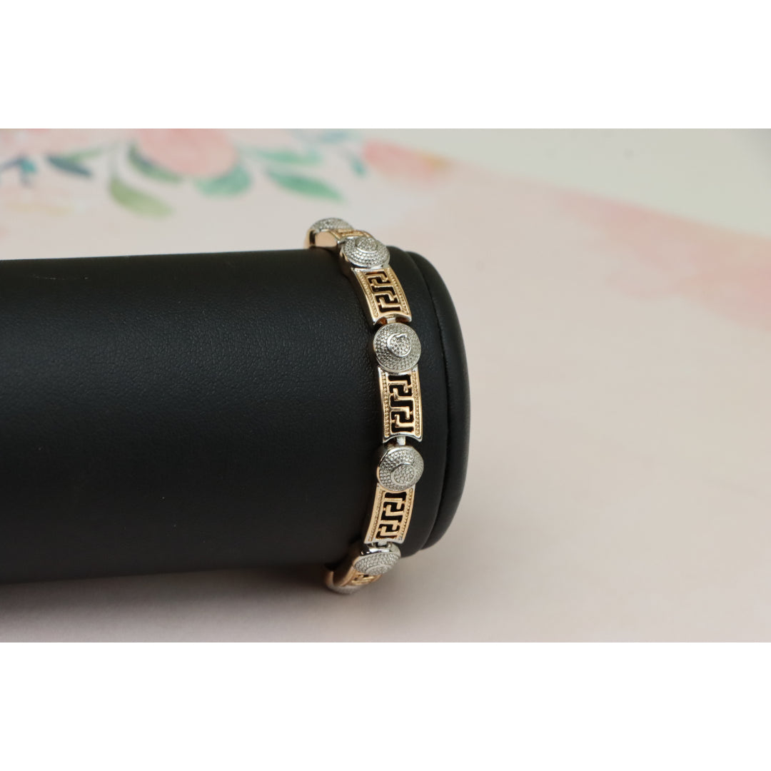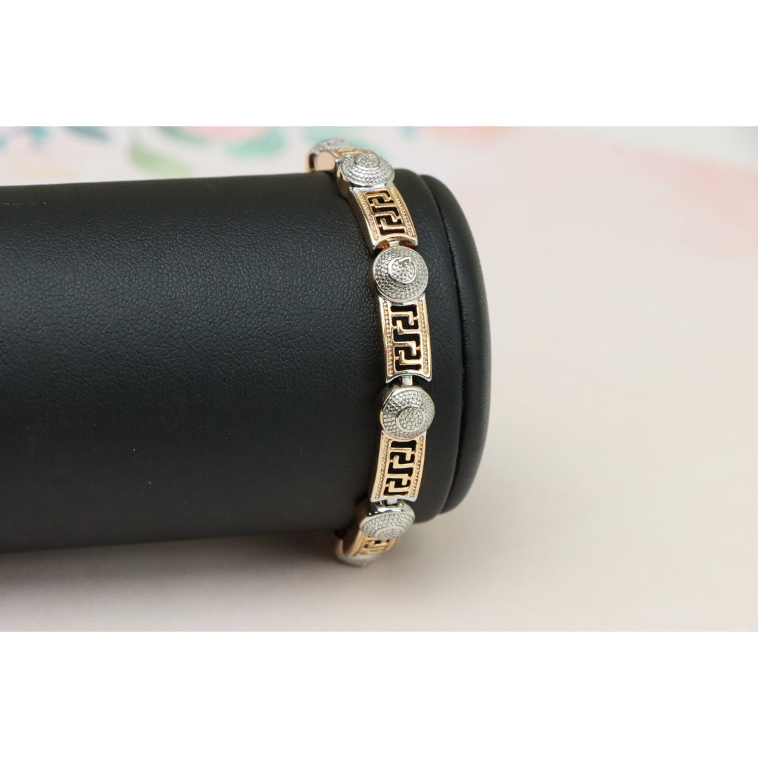 Greek Key Rose Gold Bracelet with Silver Disc Accents, XPBL0792 (2080-1)
