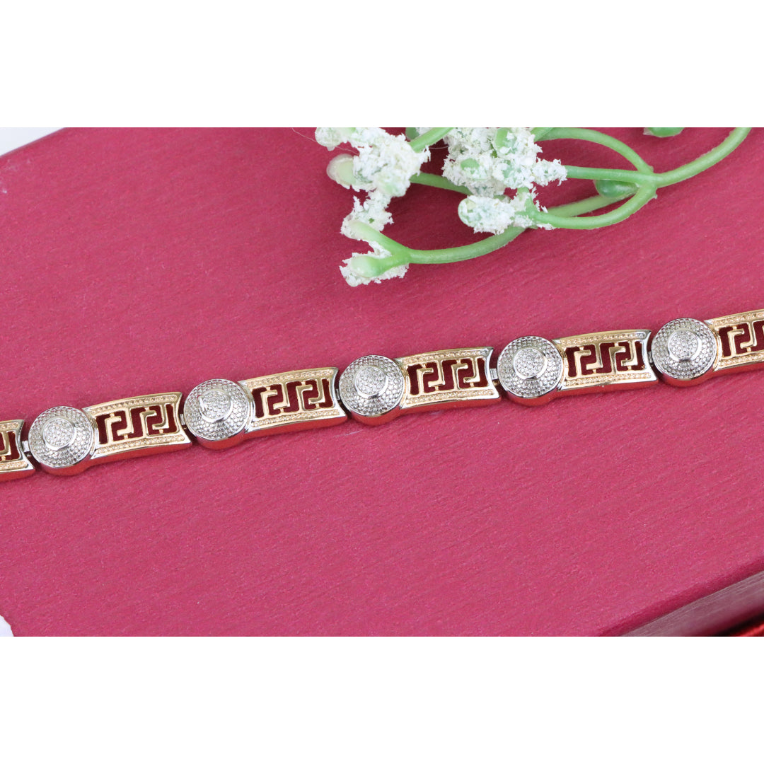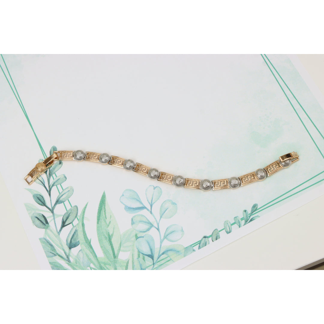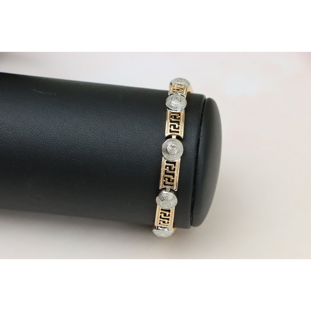 Greek Key Rose Gold Bracelet with Silver Disc Accents, XPBL0792 (2080-1)