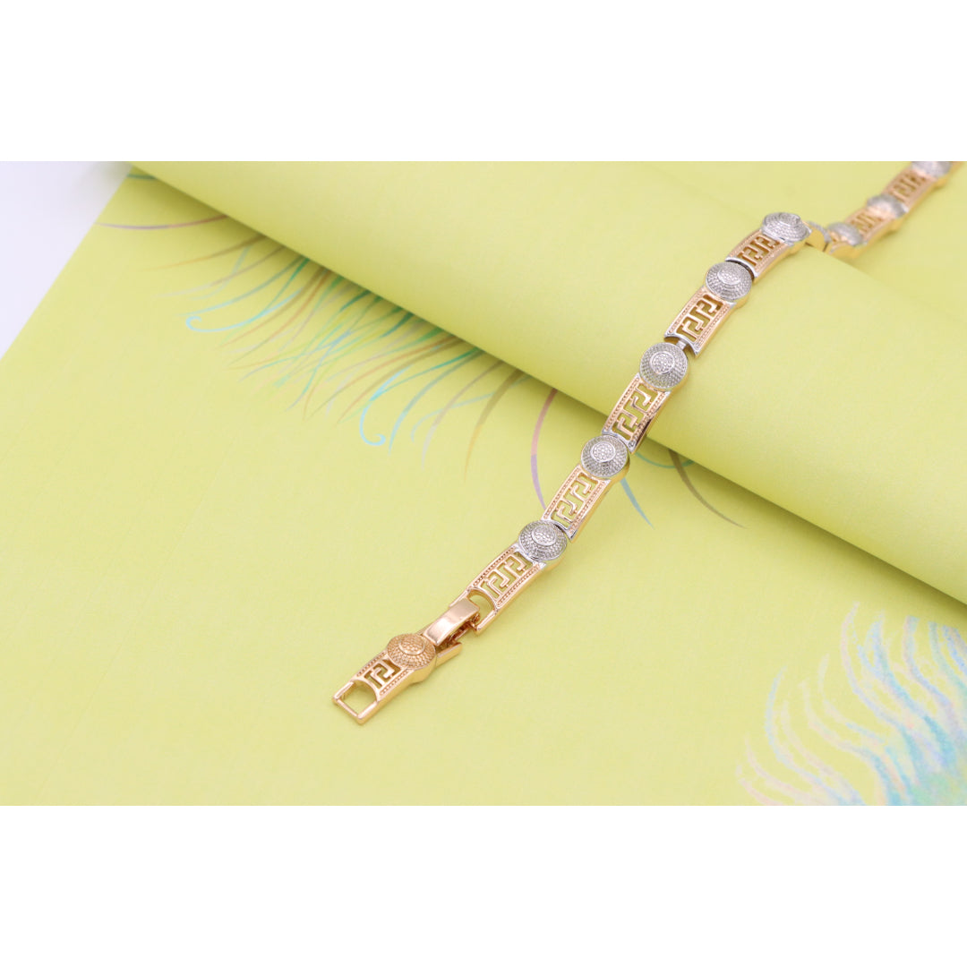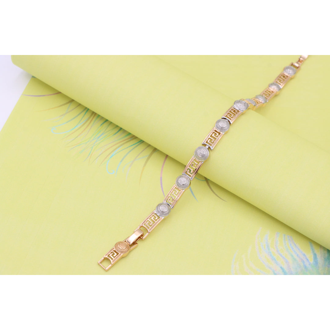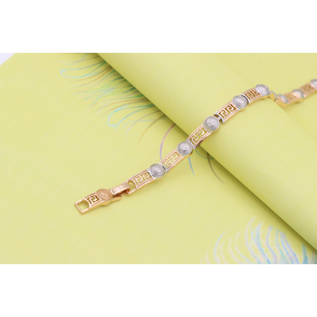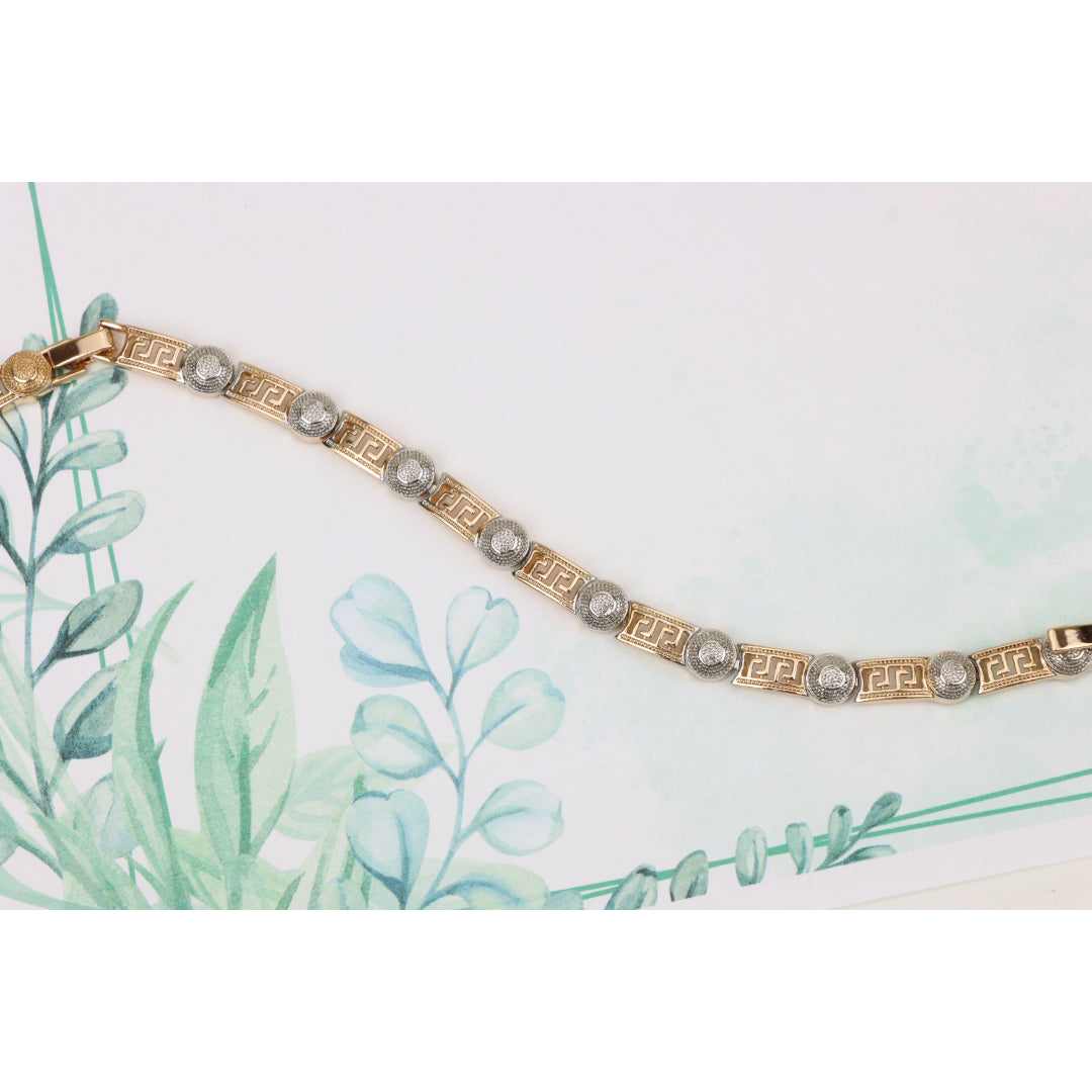 Greek Key Rose Gold Bracelet with Silver Disc Accents, XPBL0792 (2080-1)
