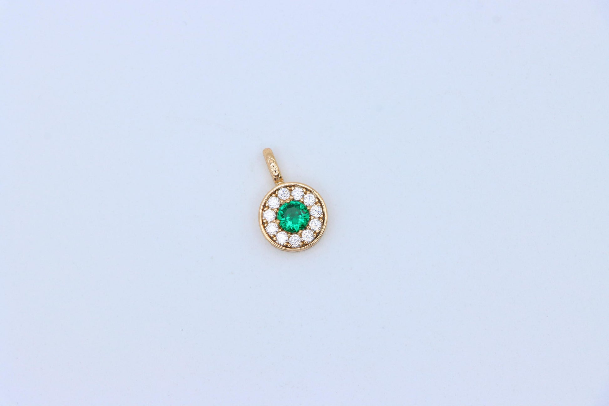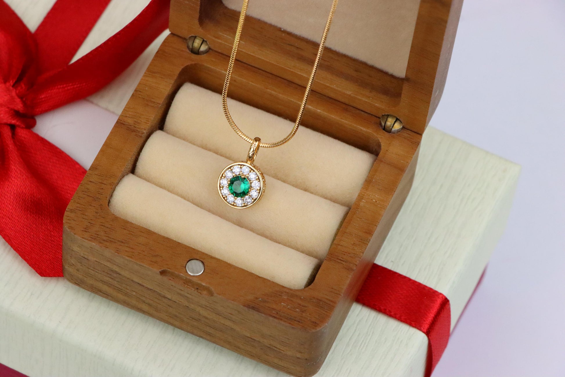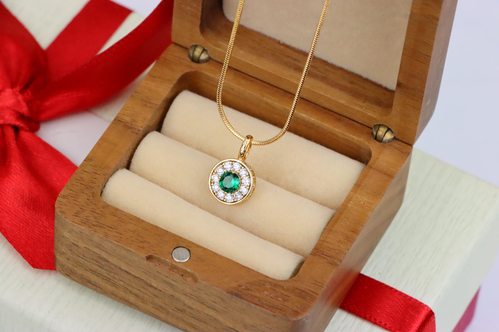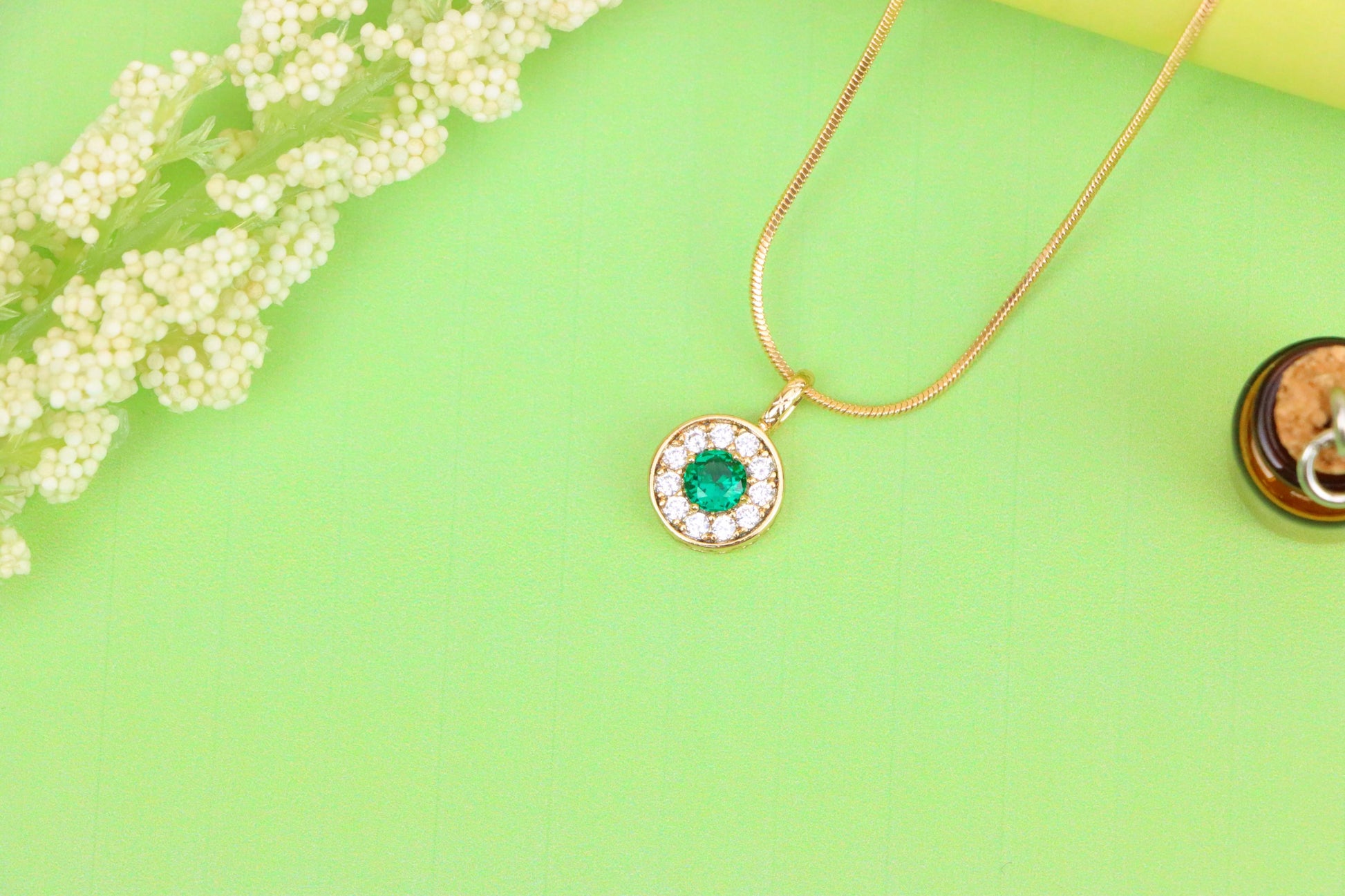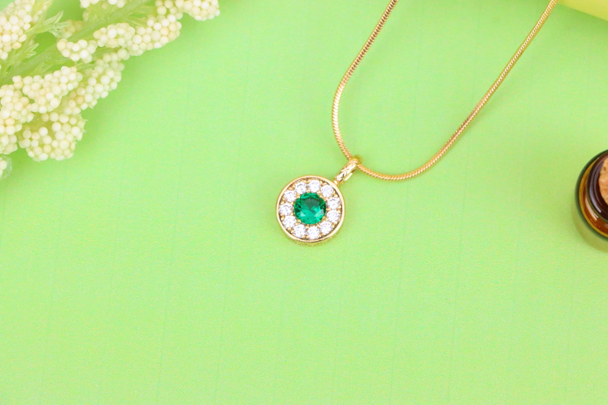 Green Crystal Halo Pendant in Rose Gold – Round Design, XPPT1596