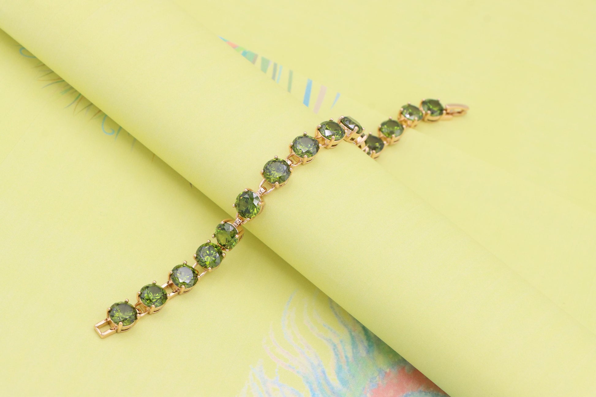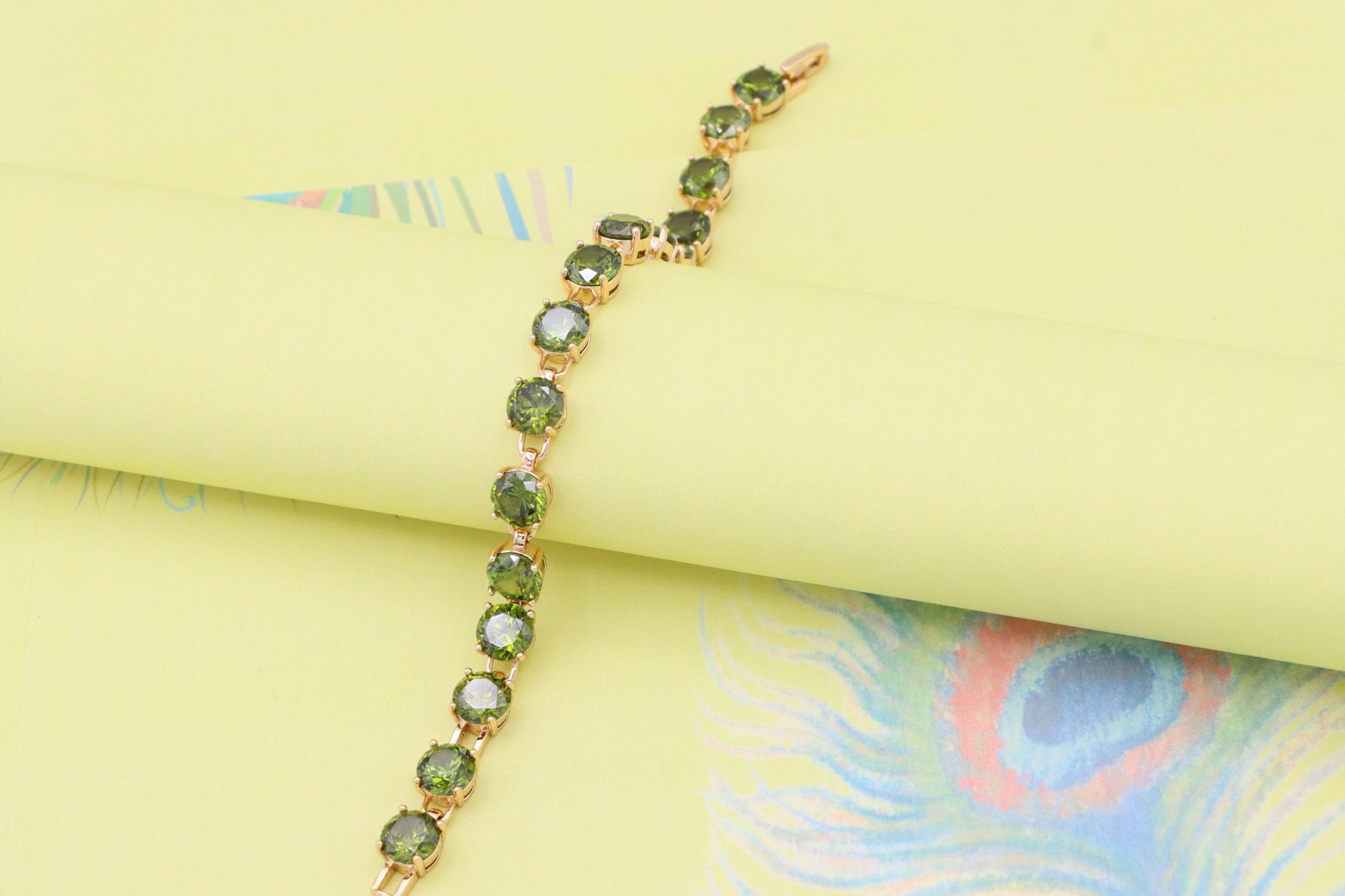 Green Crystal Rose Gold Bracelet with Round Stones, XPBL1028
